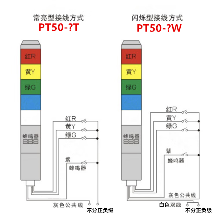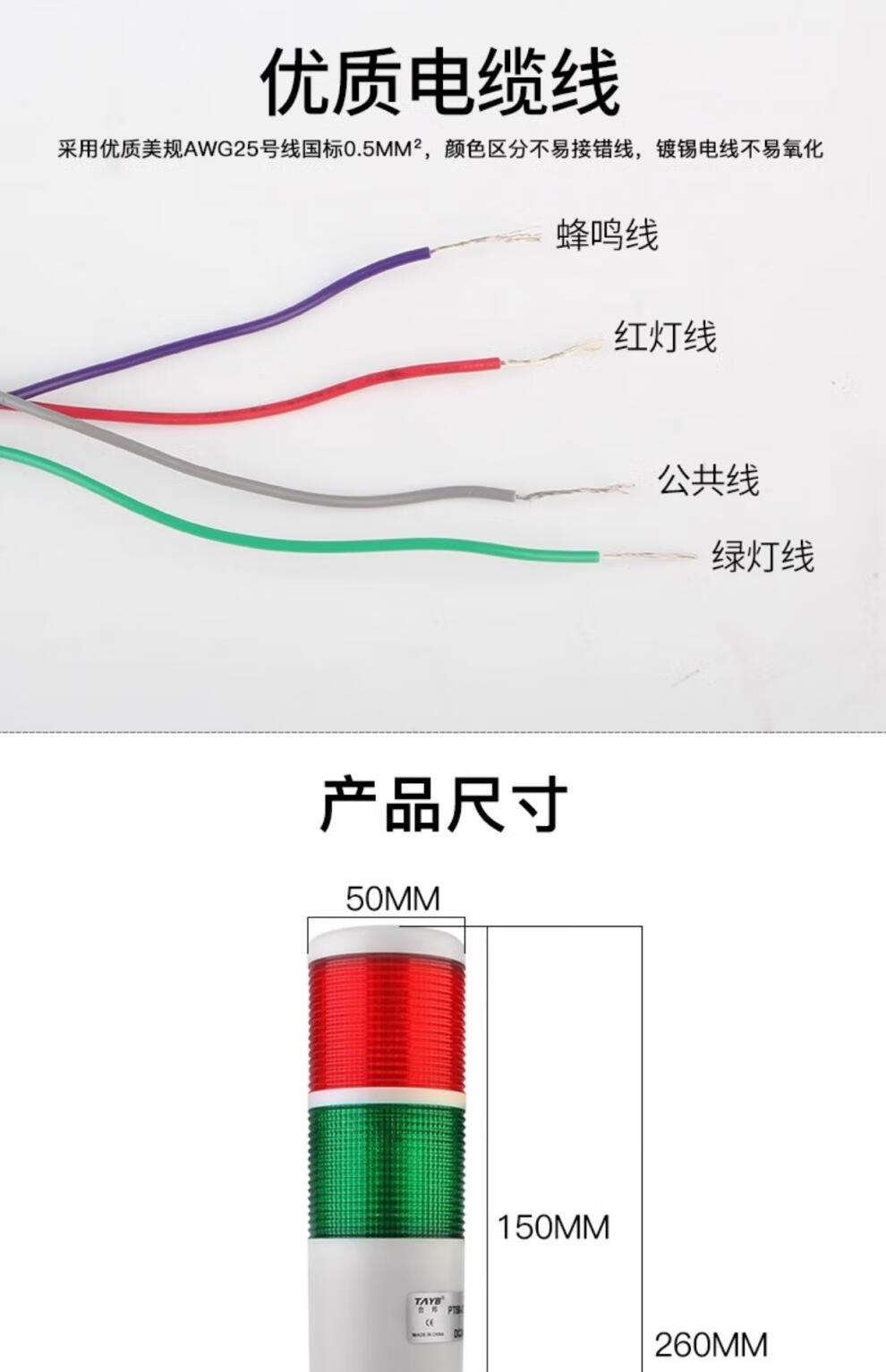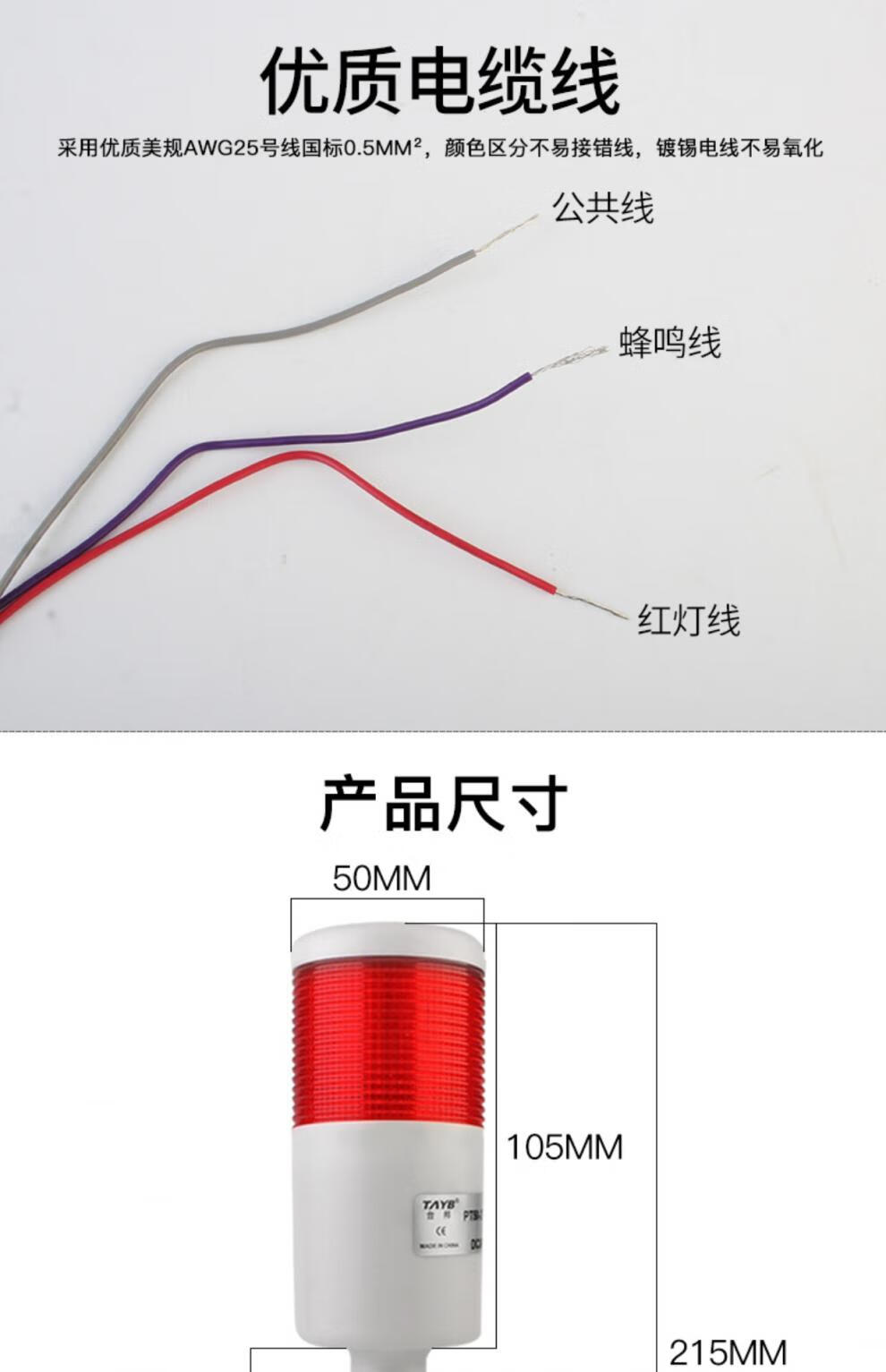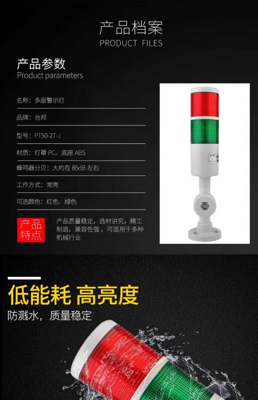 Taibang warning light single double three-color LED multi-layer signal 2T1T machine tool tower light folding 220V24 PT50-3T-J 24V (three-color always on with sound)