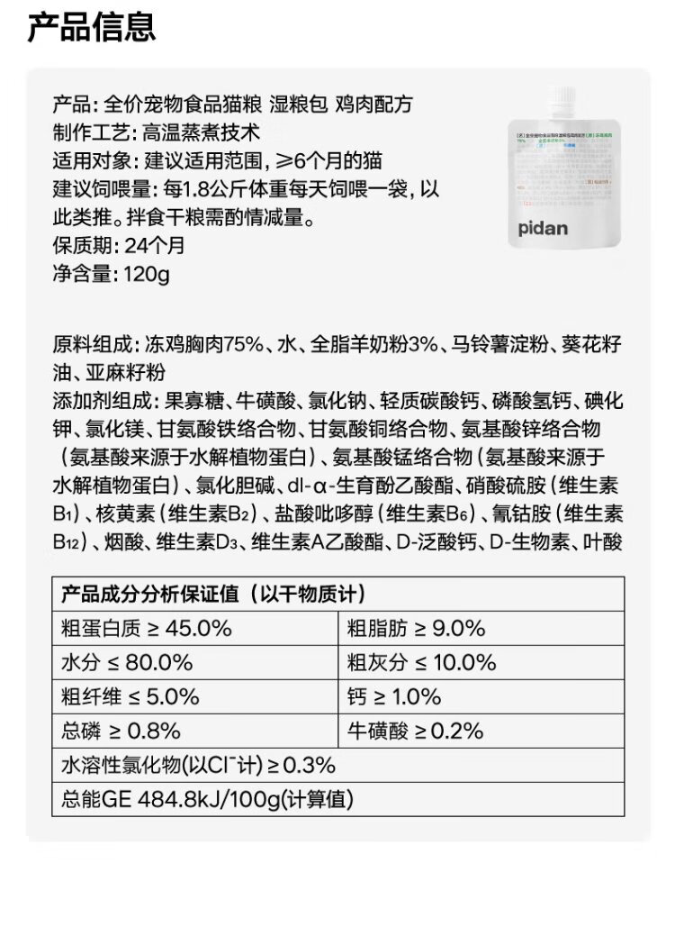 Pidan wet food pack, full price cat food 120g staple food meal pack, meat paste, meat paste, universal for cats and kittens, chicken flavor 2 packs