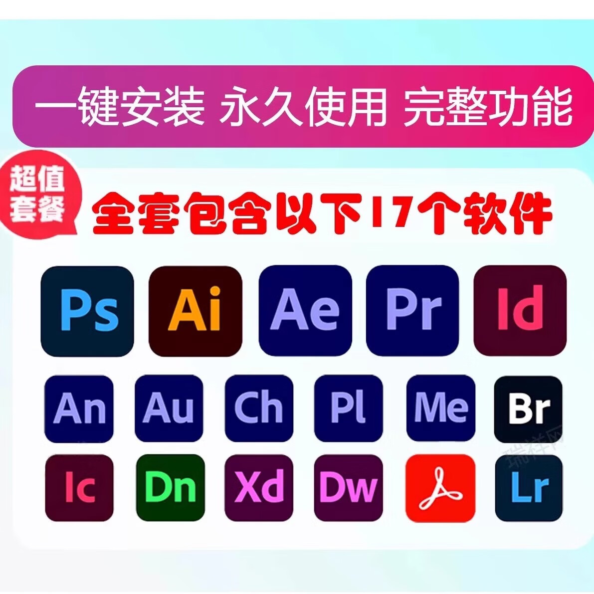 PS software 2025AI/AE/PR/ID/LR installation package 2024 download photoshop family bucket Win/Mac ME Mac Apple system remote installation choose 1 no fee if unsuccessful Windows system 2017-2025