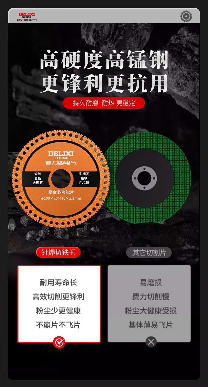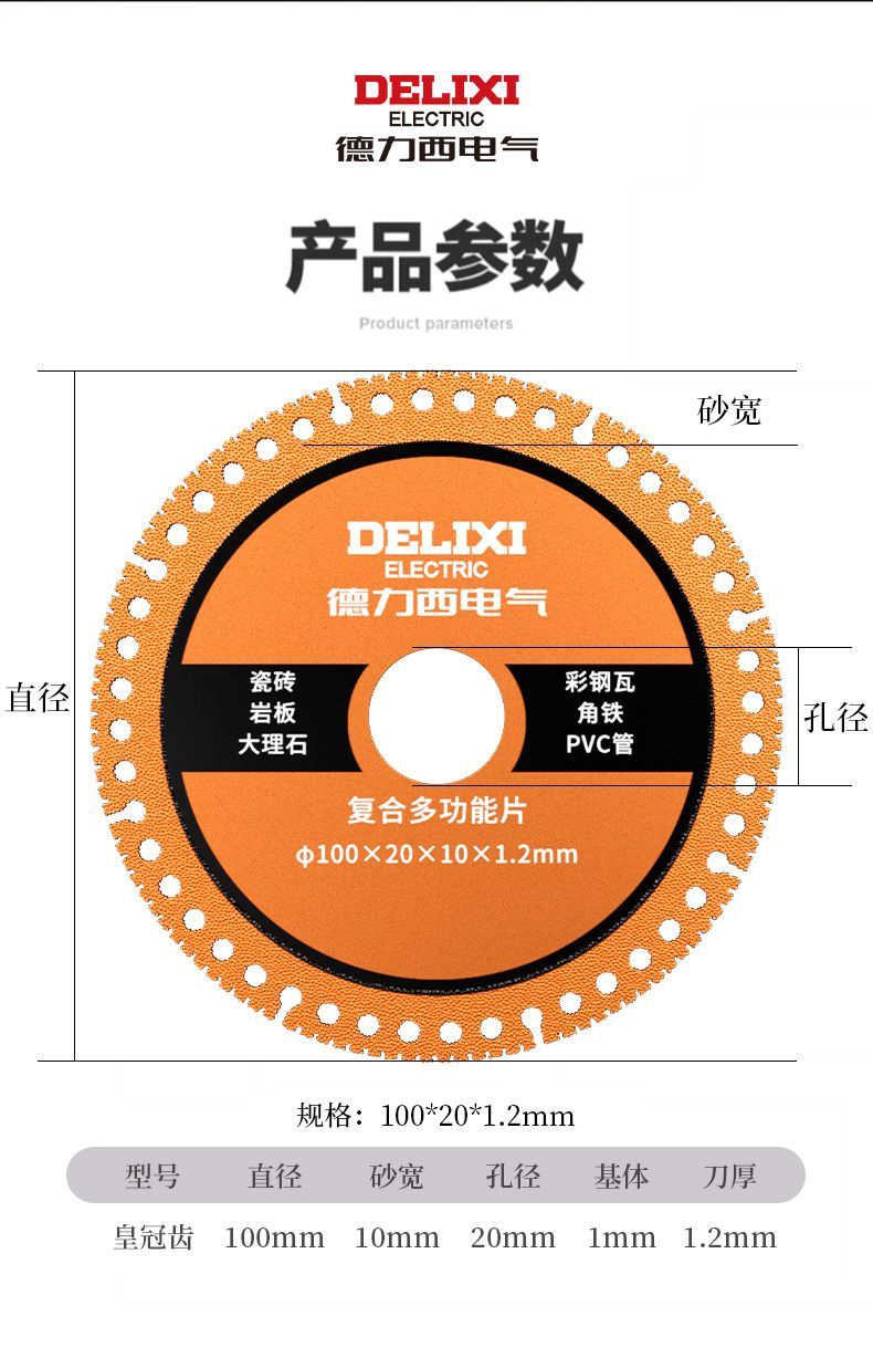Delixi Electric Multifunctional Cutting Blade Angle Grinder Composite Blade Stainless Steel Metal Angle Iron Diamond Cutting Saw Blade Sharp and Wear-Resistant Industrial Grade Multifunctional Cutting Blade 2 Pack