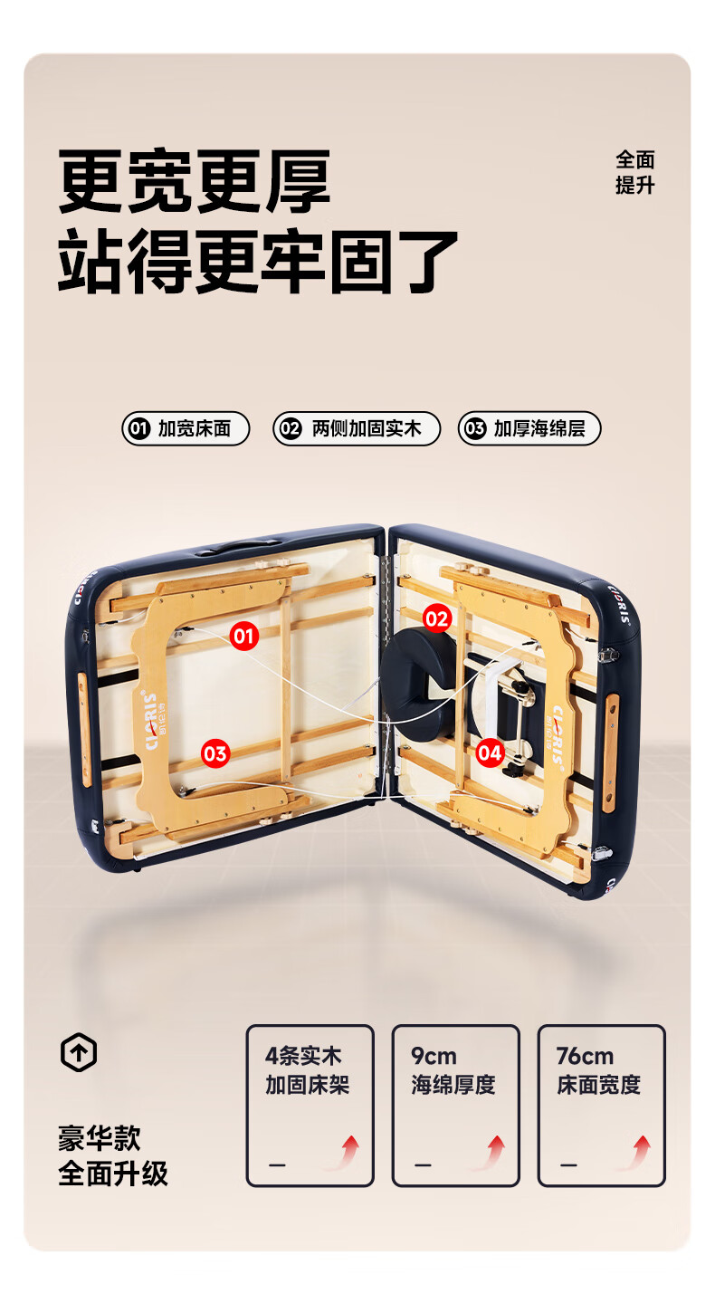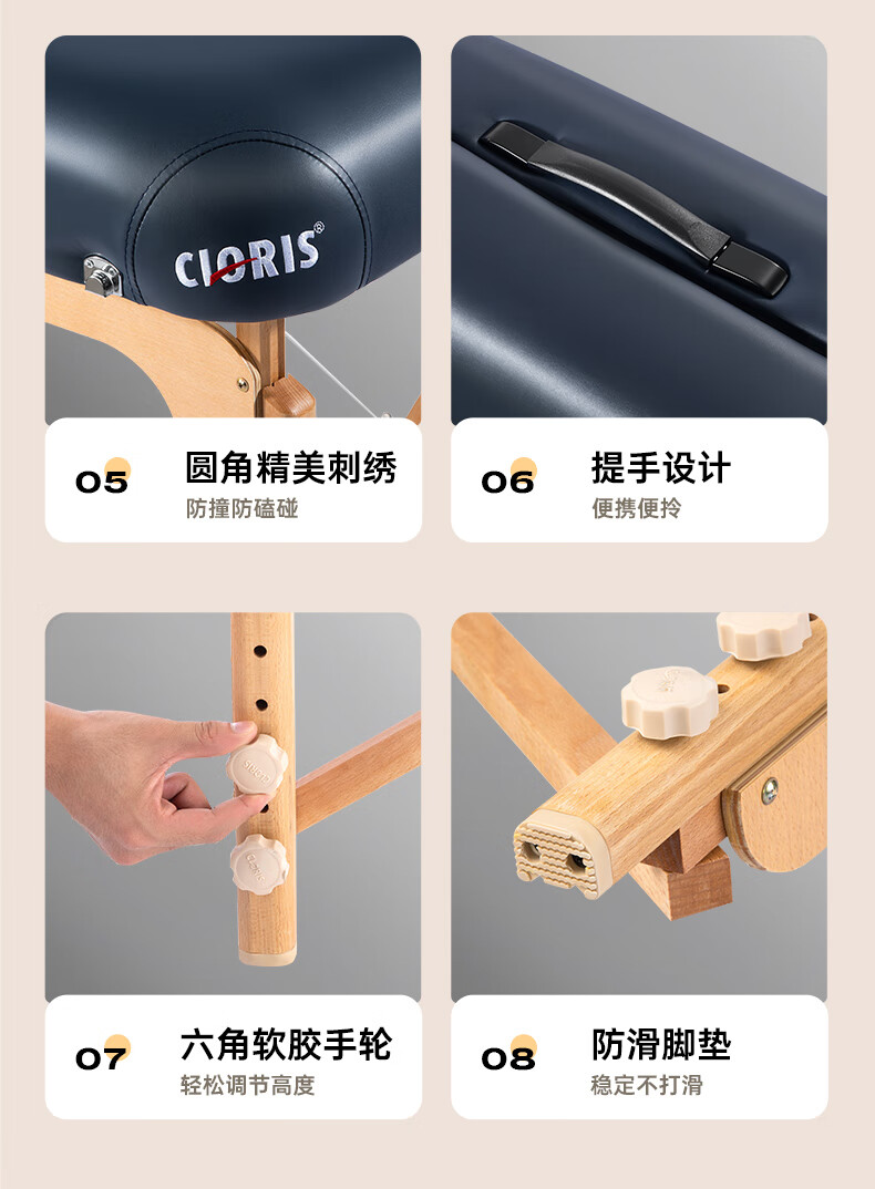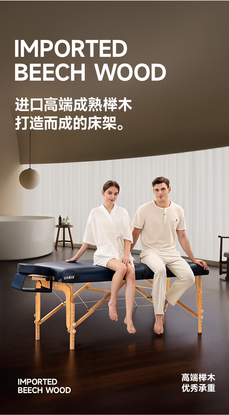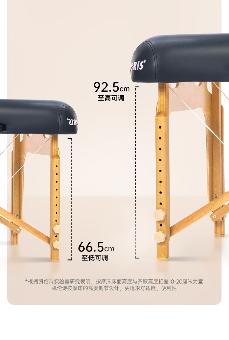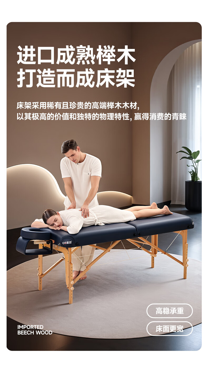 CLORIS high-end massage bed physiotherapy massage bed folding beauty therapy embroidered solid wood portable portable home foldable B558+H201 (stool back) package