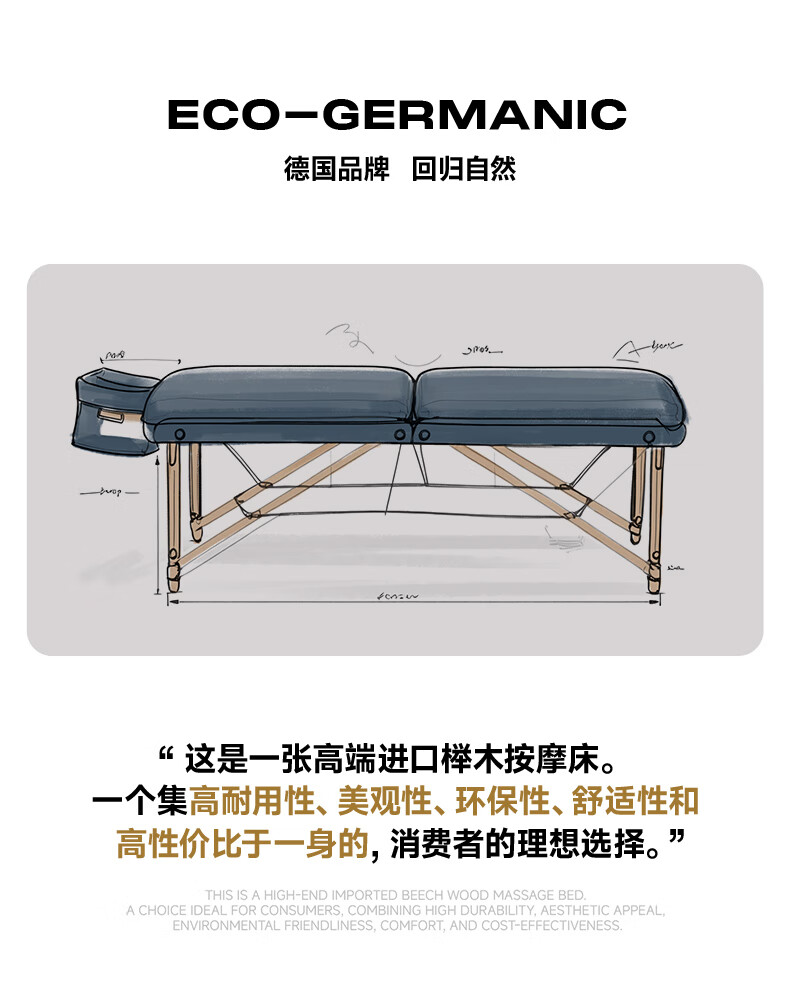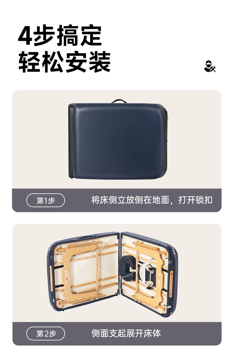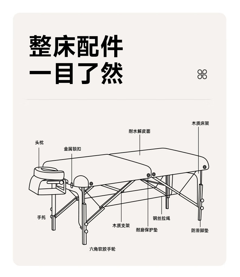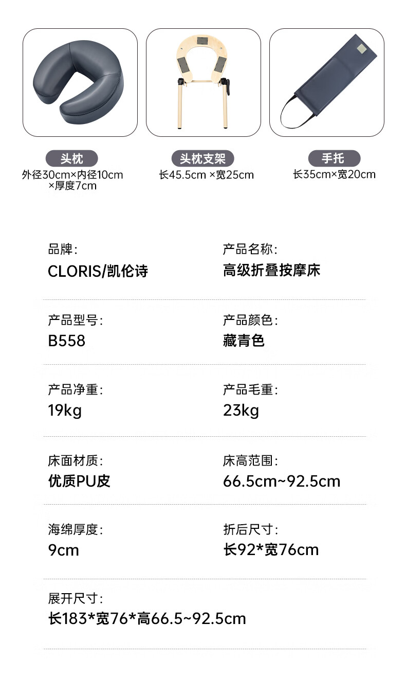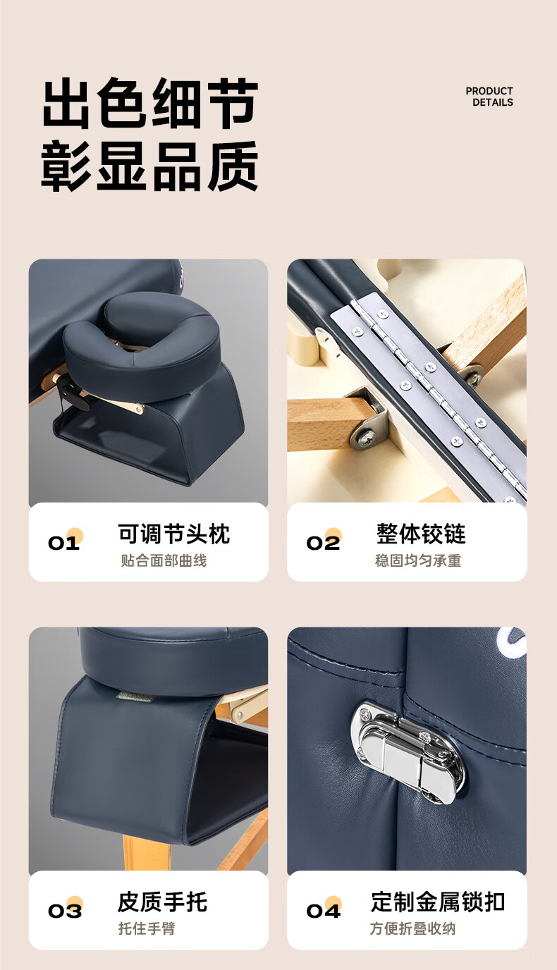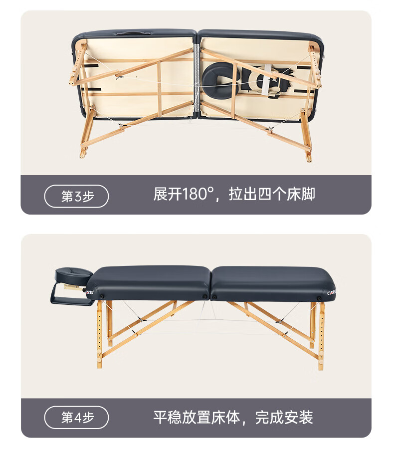 CLORIS high-end massage bed physiotherapy massage bed folding beauty therapy embroidered solid wood portable portable home foldable B558+H201 (stool back) package