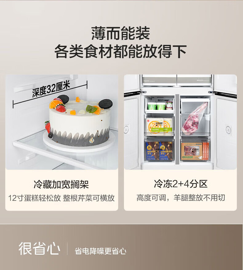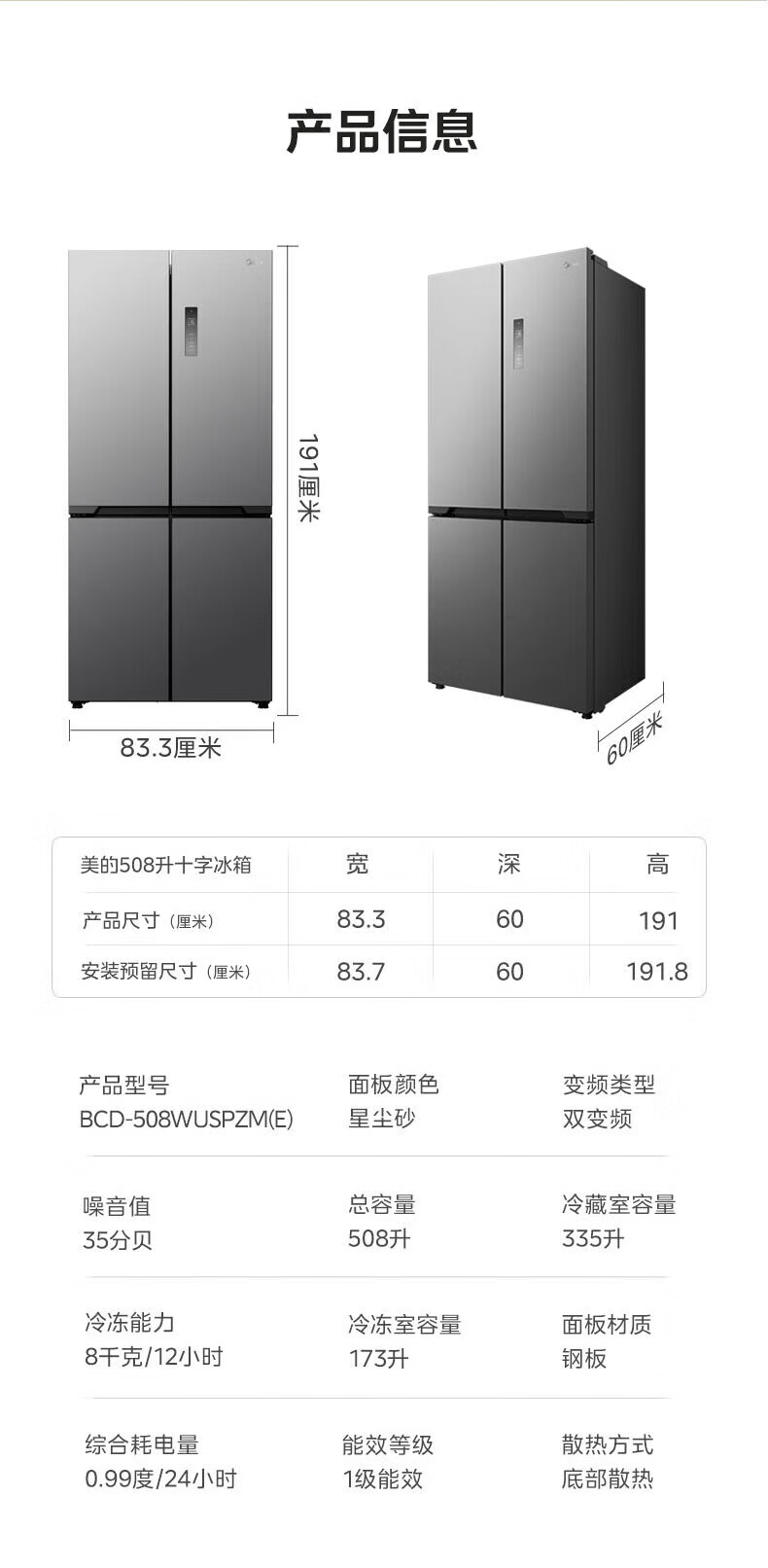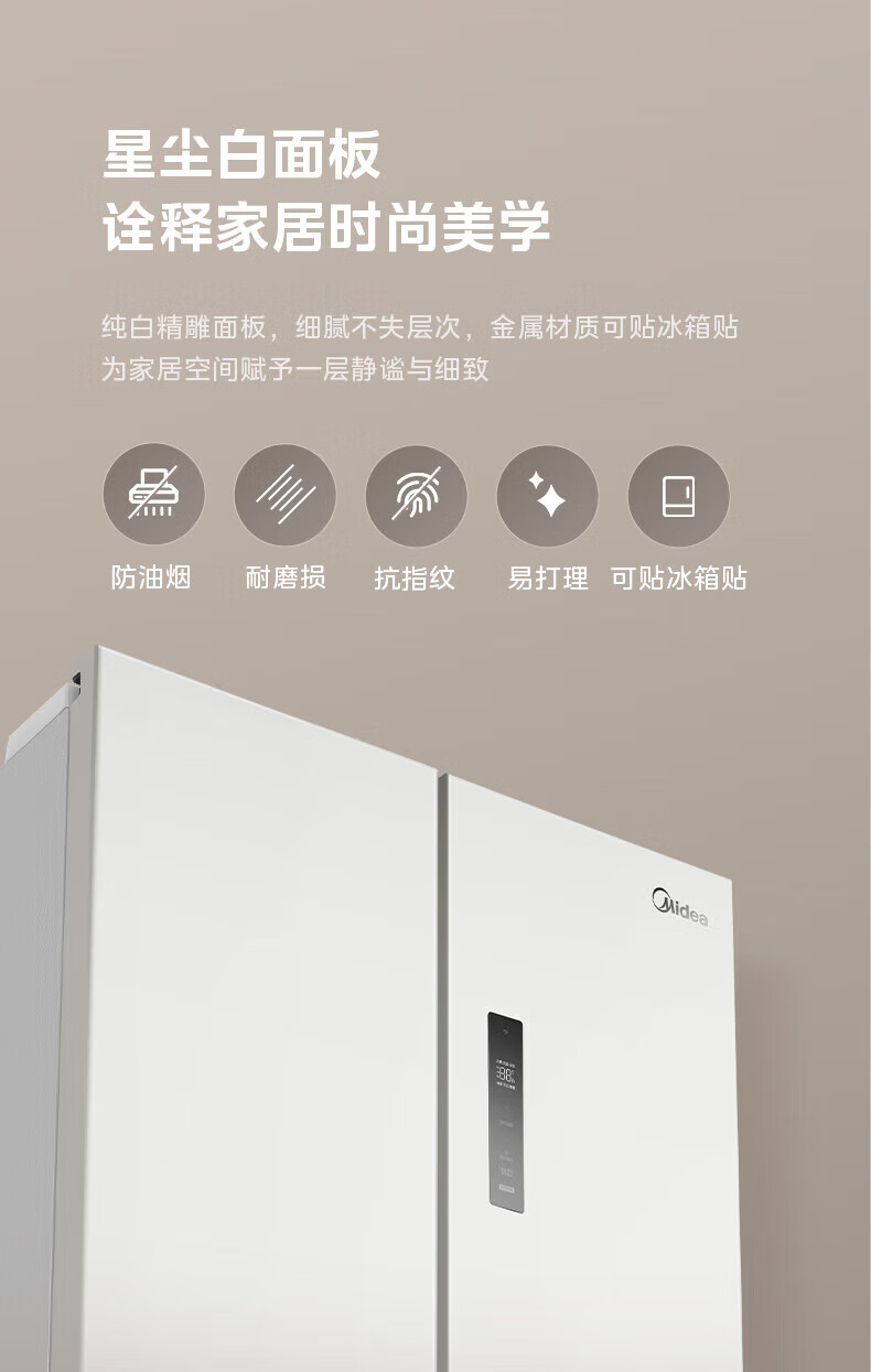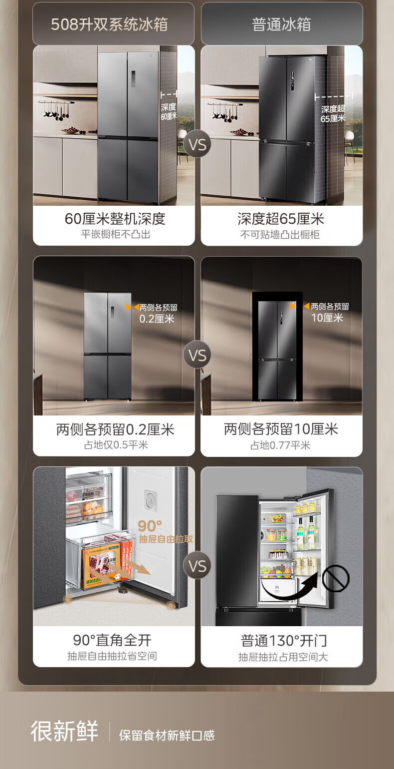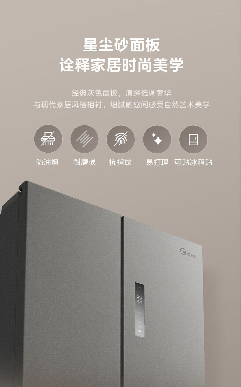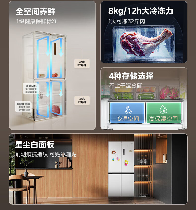 Midea Zhenxiang series M60 dual system 508 liter cross-open four-door household refrigerator ultra-thin flat-mounted double cycle large capacity frost-free bottom cooling BCD-508WUSPZM(E) zero-embedded dual system BCD-508WUSPZM(E) gray