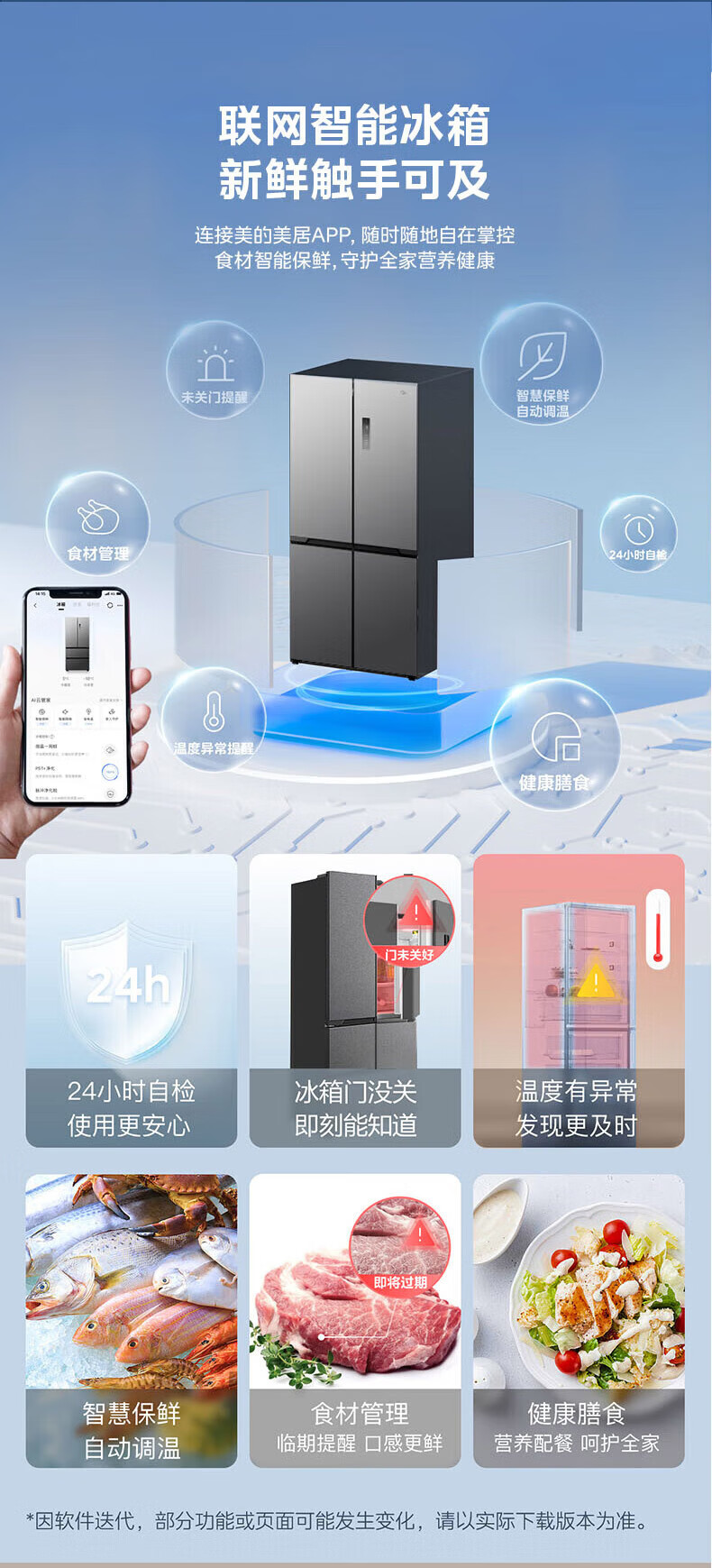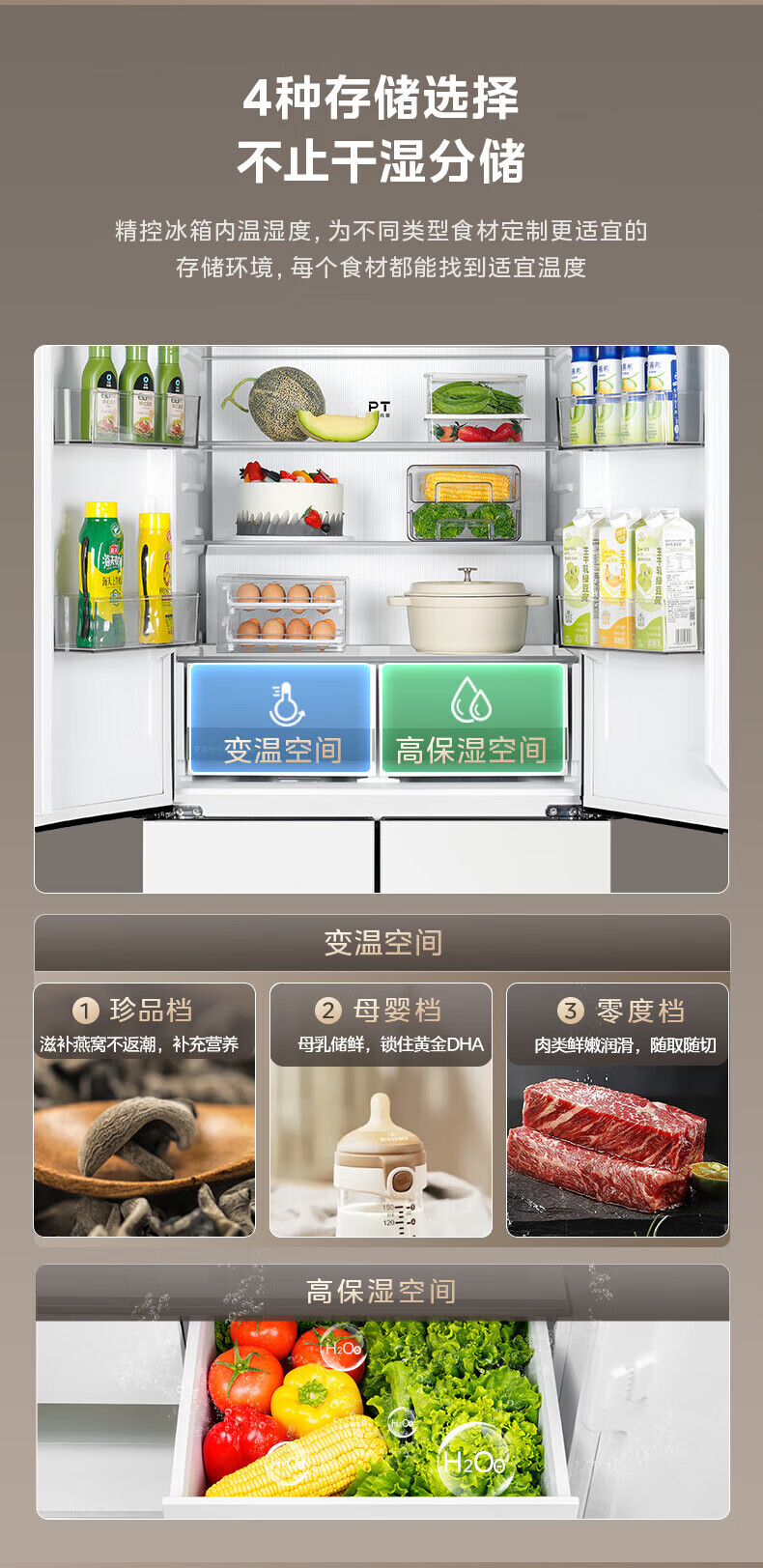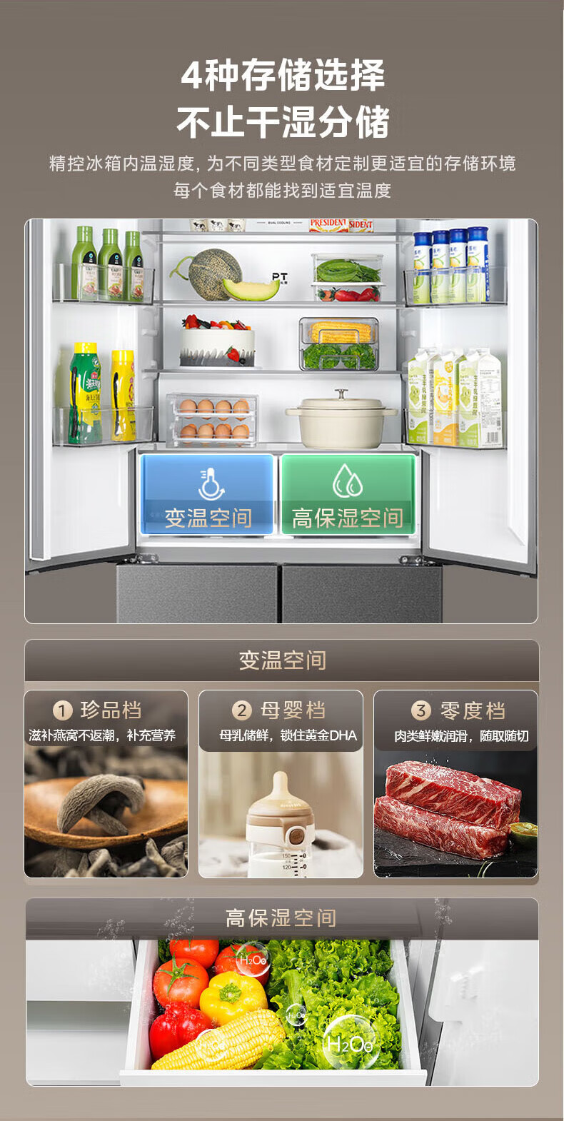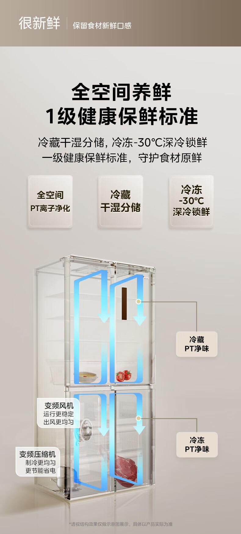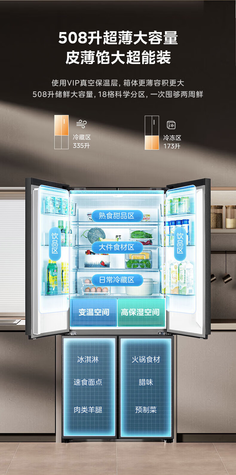 Midea Zhenxiang series M60 dual system 508 liter cross-open four-door household refrigerator ultra-thin flat-mounted double cycle large capacity frost-free bottom cooling BCD-508WUSPZM(E) zero-embedded dual system BCD-508WUSPZM(E) gray