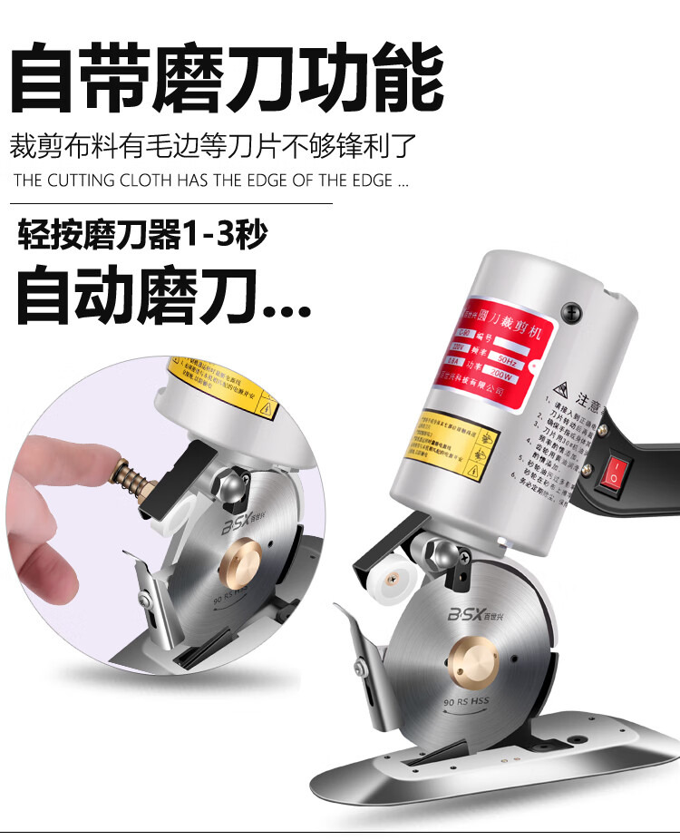 Shantou Lincun electric round knife cutting machine, clothing electric scissors, 90-type leather, cloth and paper hand-held cloth cutting machine, the machine is equipped with 1.8m electric wire, alloy steel blade