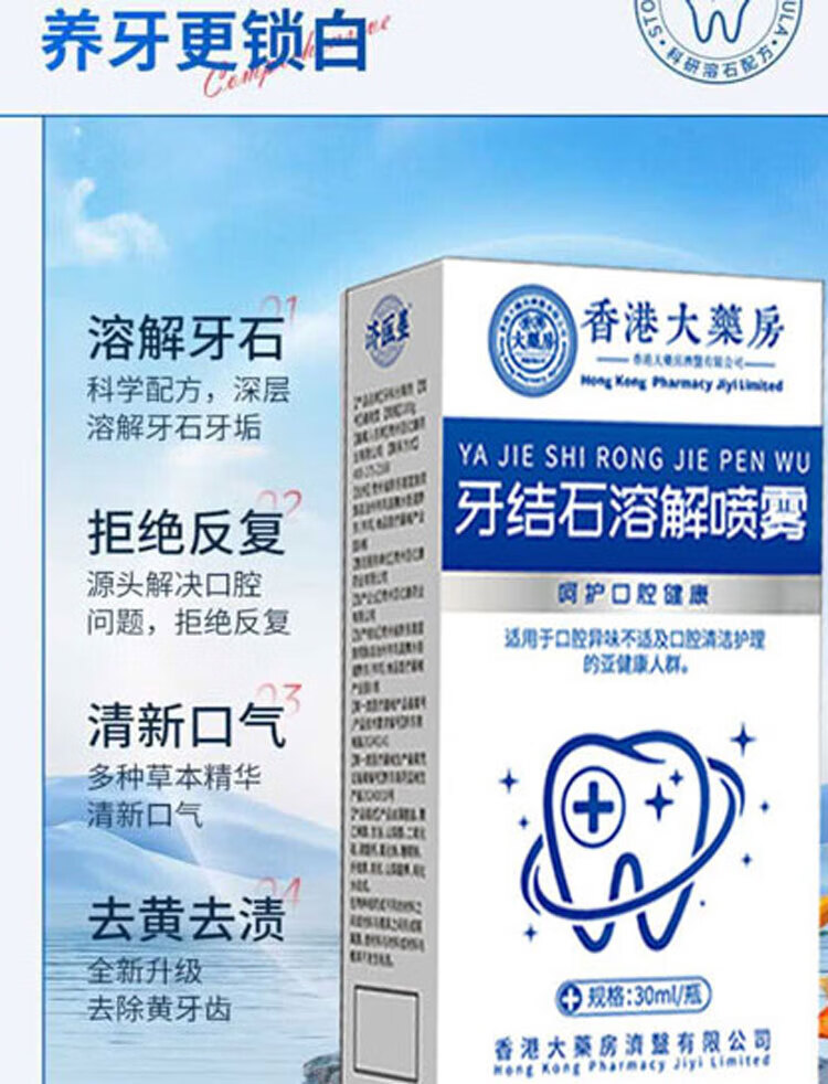 Hong Kong Pharmacy Dental Calculus Dissolving Liquid Teeth Cleaning and Yellowing Calculus Remover Tartar Calculus Removal Powerful Mouthwash 1 Bottle Quickly Improves Tartar