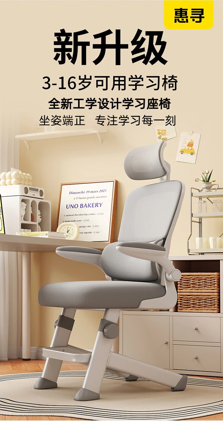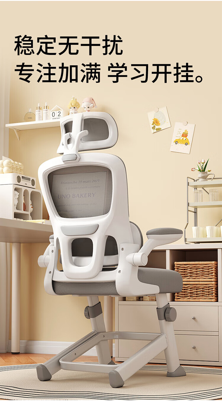 Huixun Jingdong's own brand computer chair study chair engineering chair lift office chair desk chair back chair elegant gray suspended lumbar support + lift adjustment