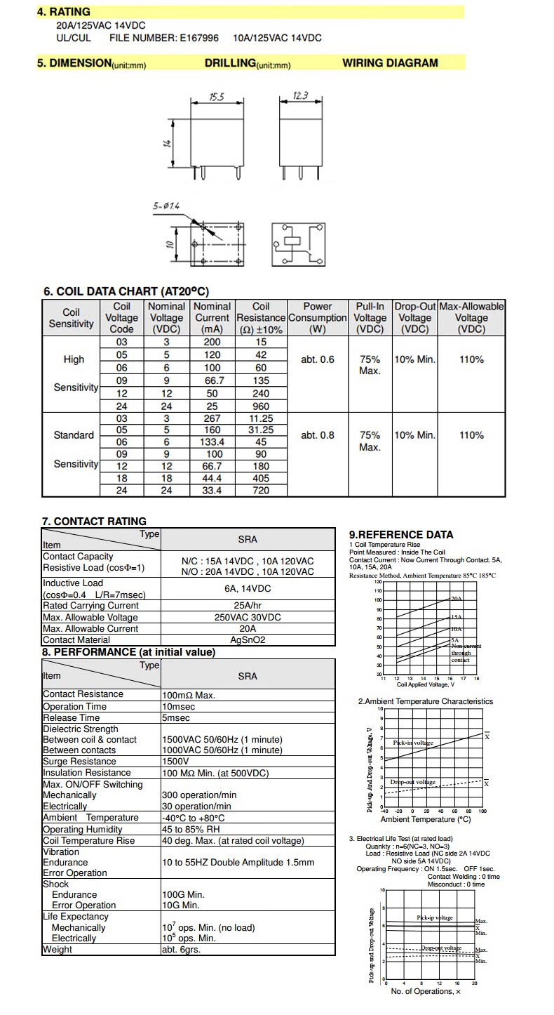 Relay 4 pins 5 pins SRA-05V 12V 24VDC-AL-CL 20A125V T74 5 pins (one set of conversion) 5V
