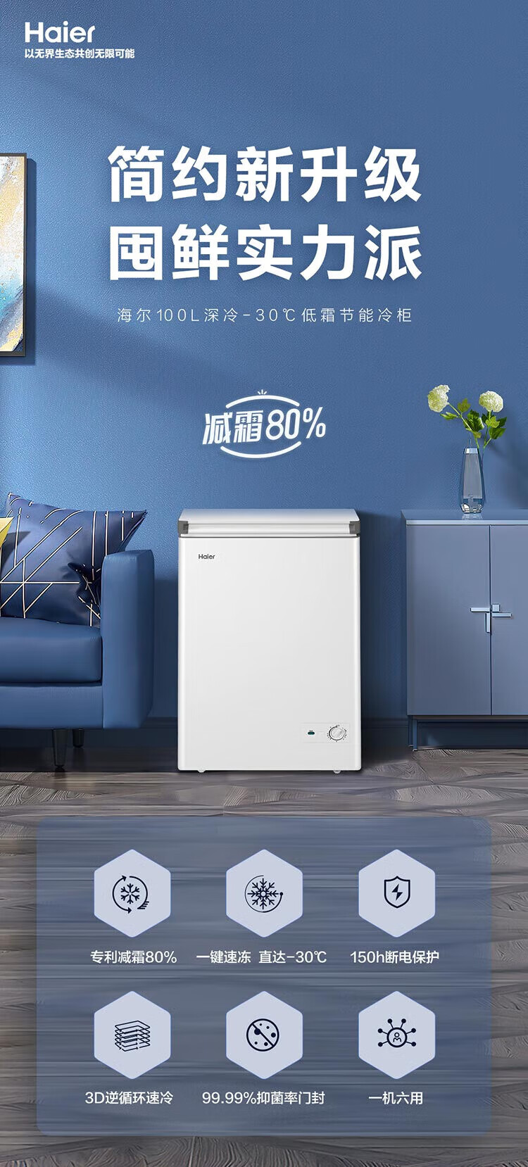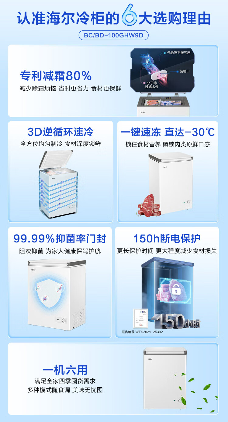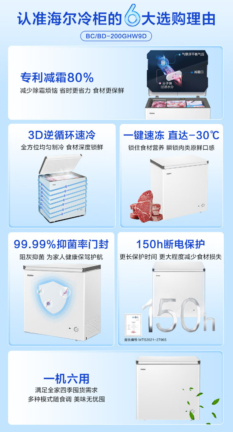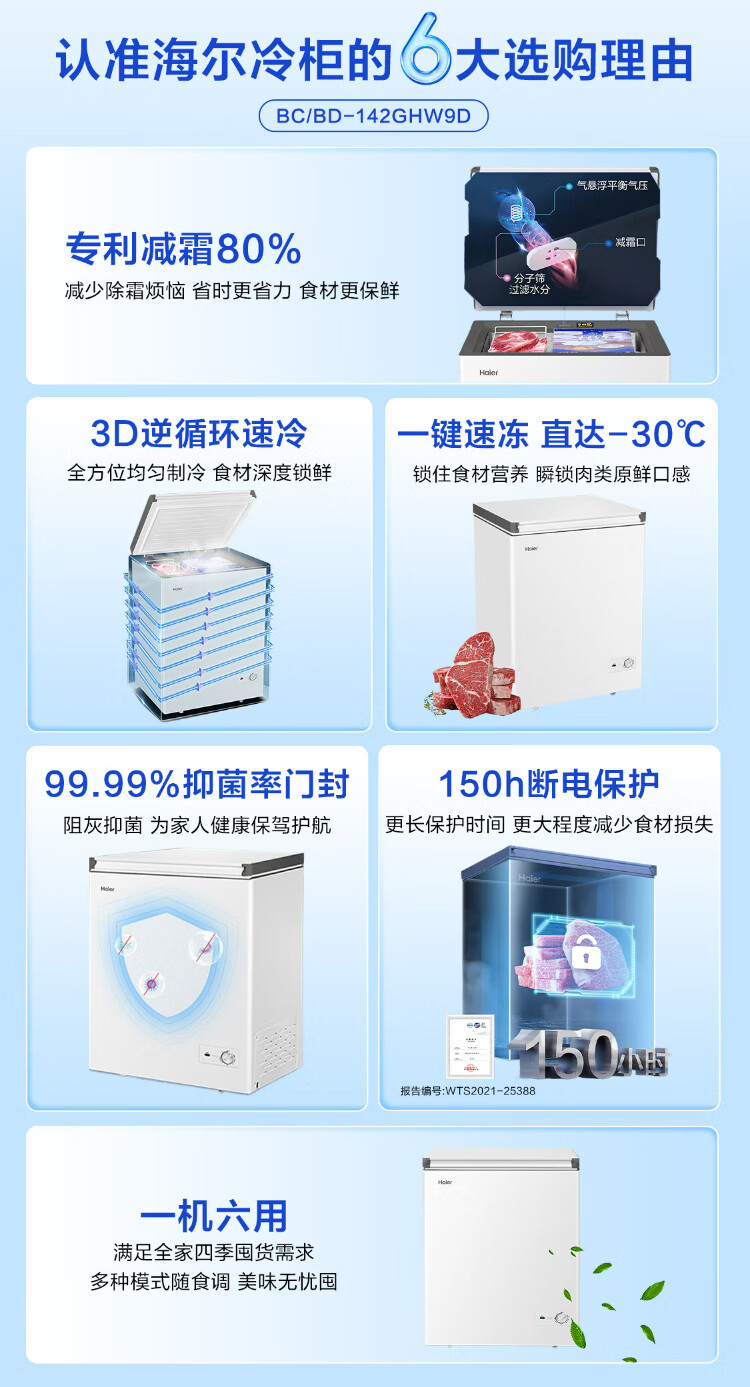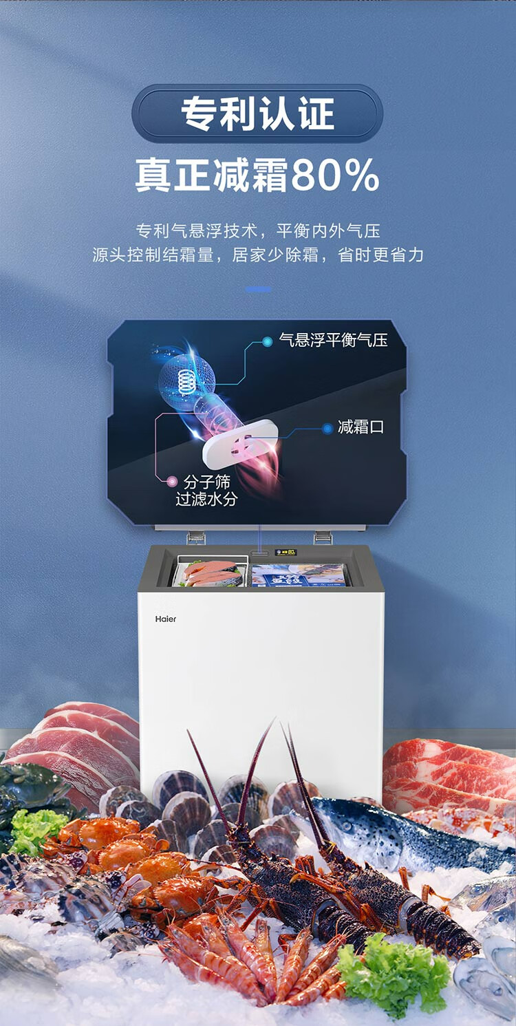 Haier 100/142/200 Upgraded Level 1 Energy Efficiency Low Frost Home Freezer Refrigerator Freezer Small Freezer Home Commercial Breast Milk Rental Small Refrigerator Freezer Trade-In 80% Frost Reduction BC/BD-142GHW9D 142L