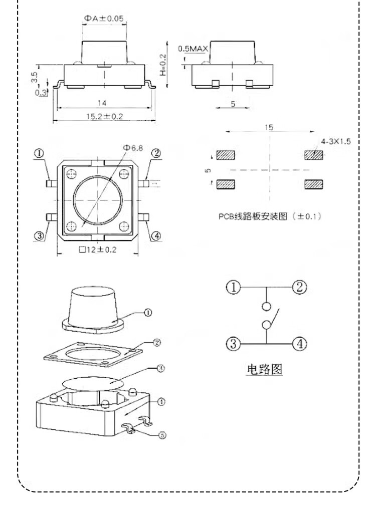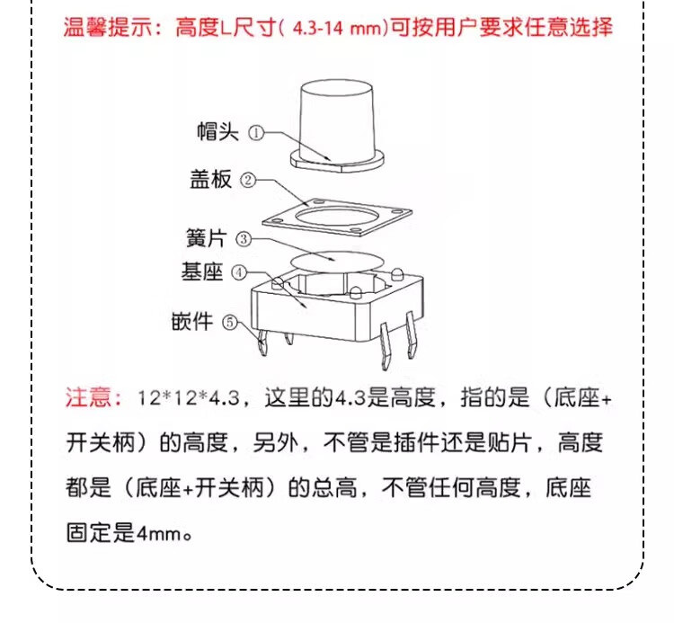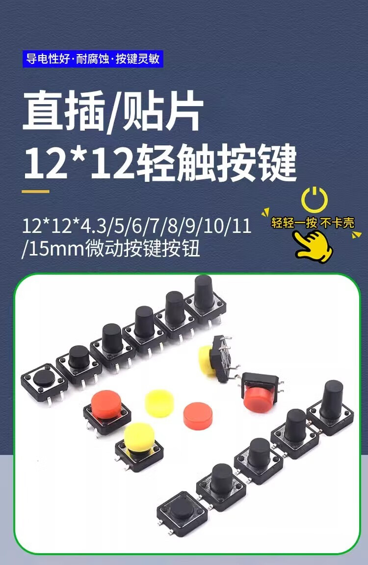 Tact switch 12*12*4.3/5/6/7/8/9/10/11/15mm micro button button direct plug patch direct plug 12*12*5 (20 pieces)