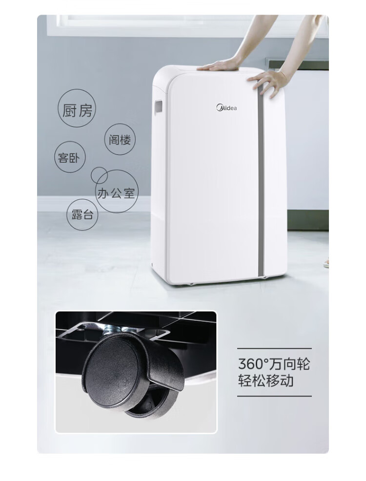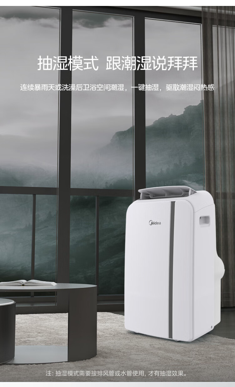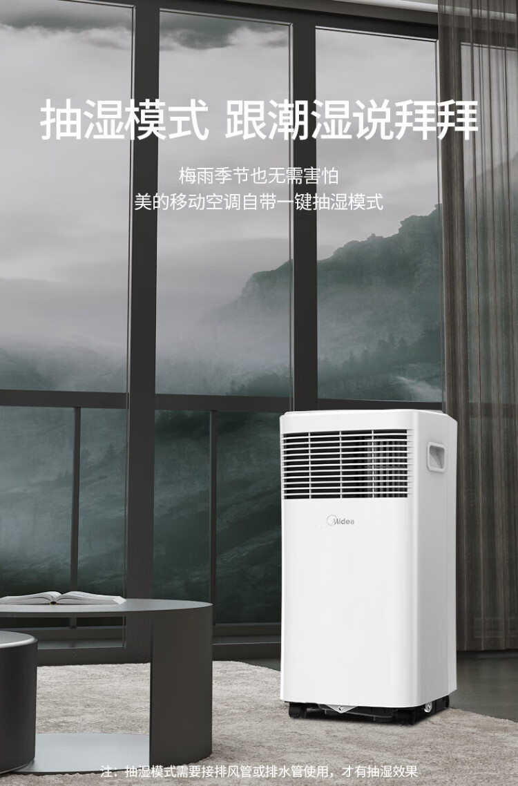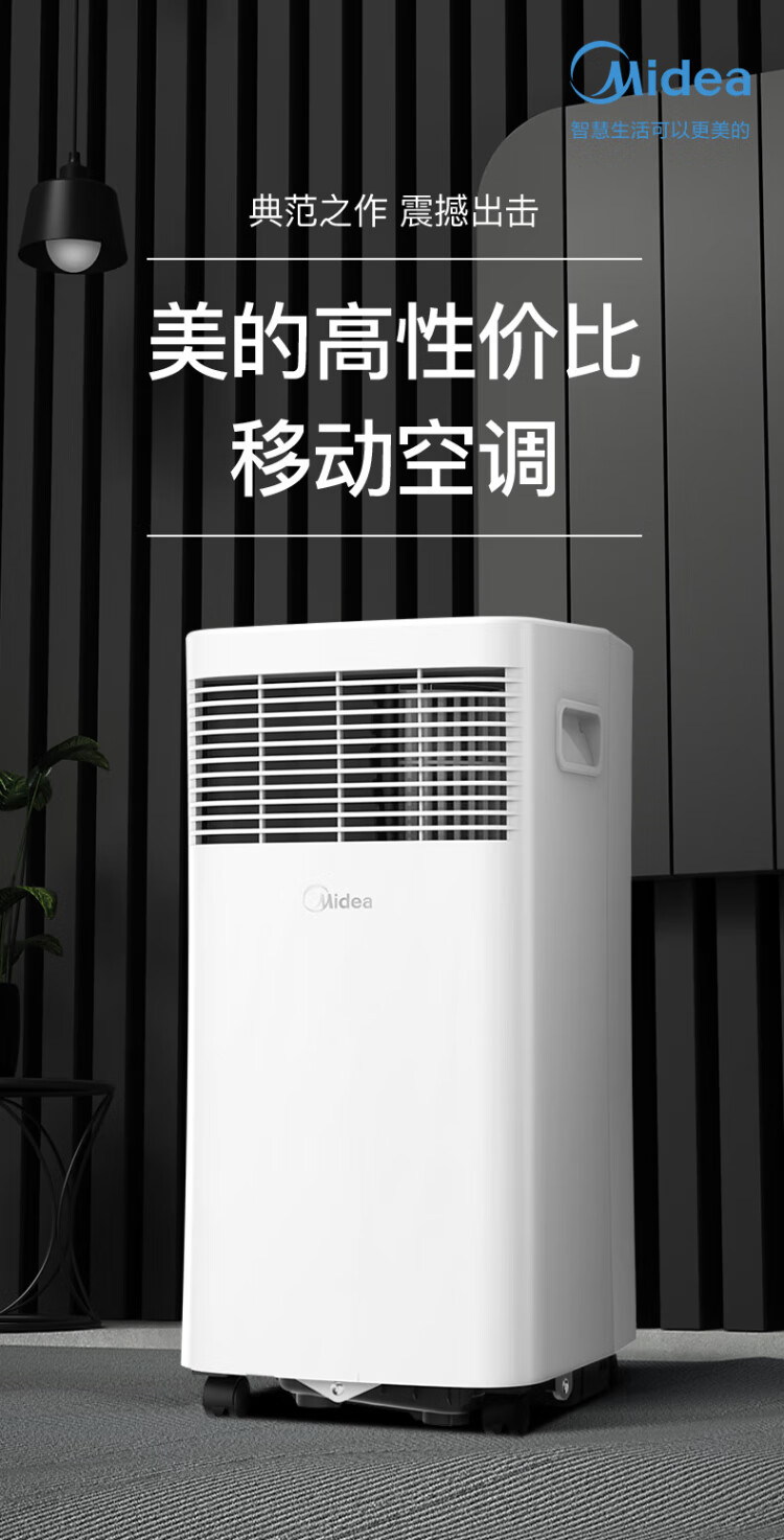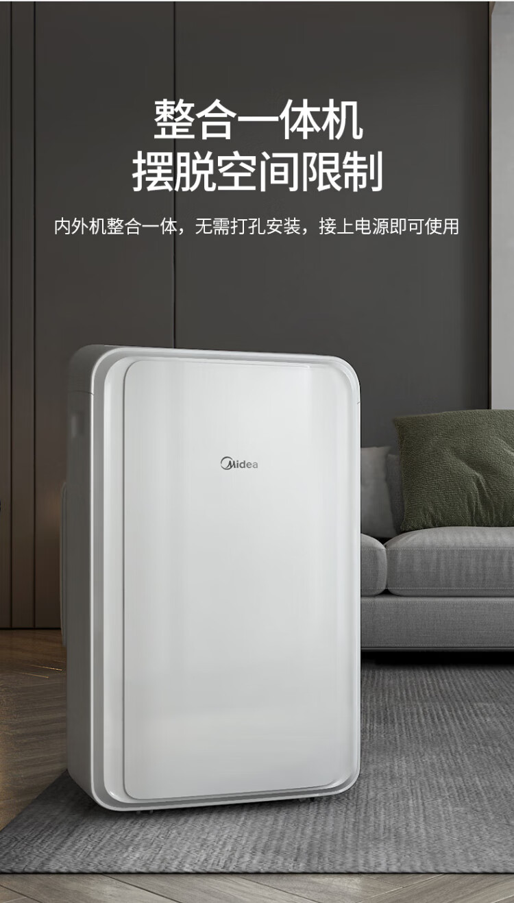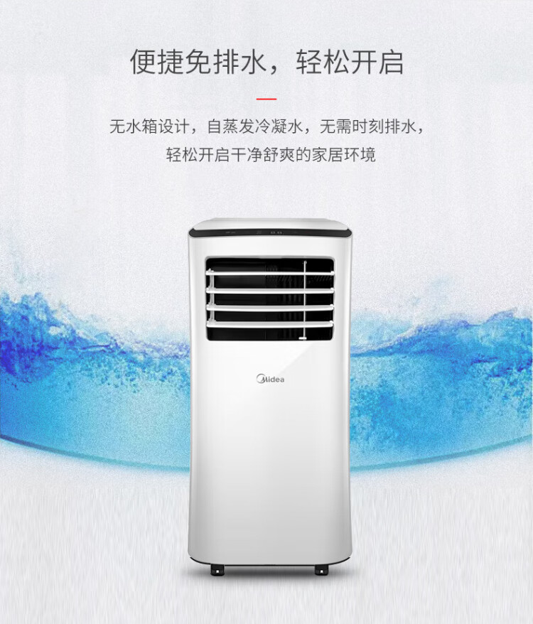 Midea mobile air conditioner all-in-one unit, single cooling, no external unit, no installation and no drainage, movable home kitchen, dormitory rental room air conditioner, convenient vertical air conditioner, 1 HP, single cooling, double pipe upgrade, suitable for 5-8