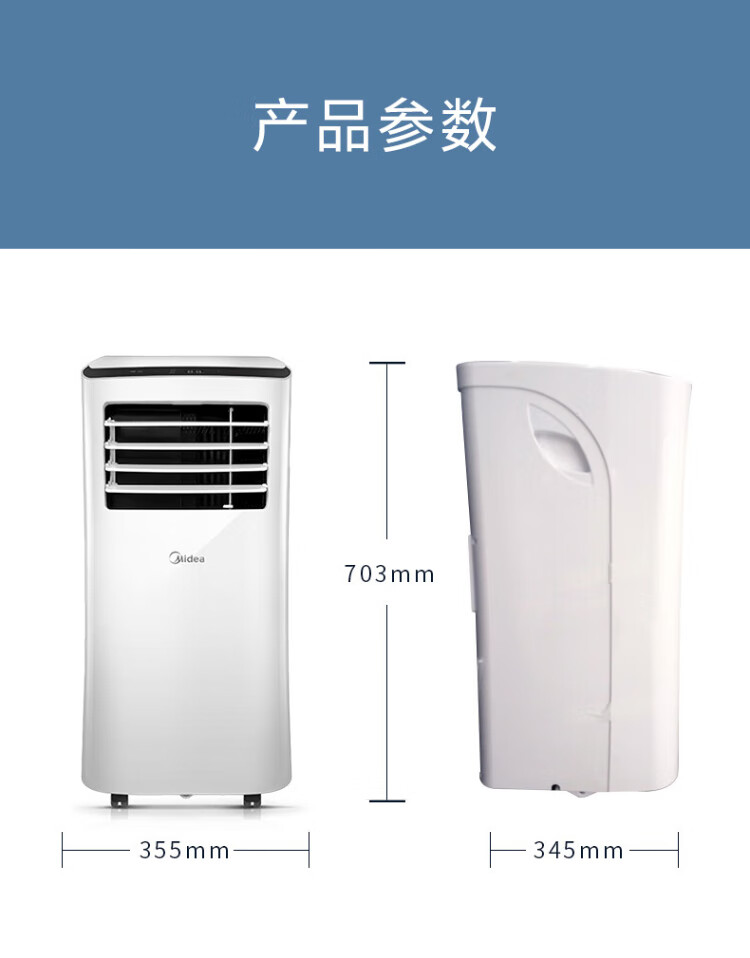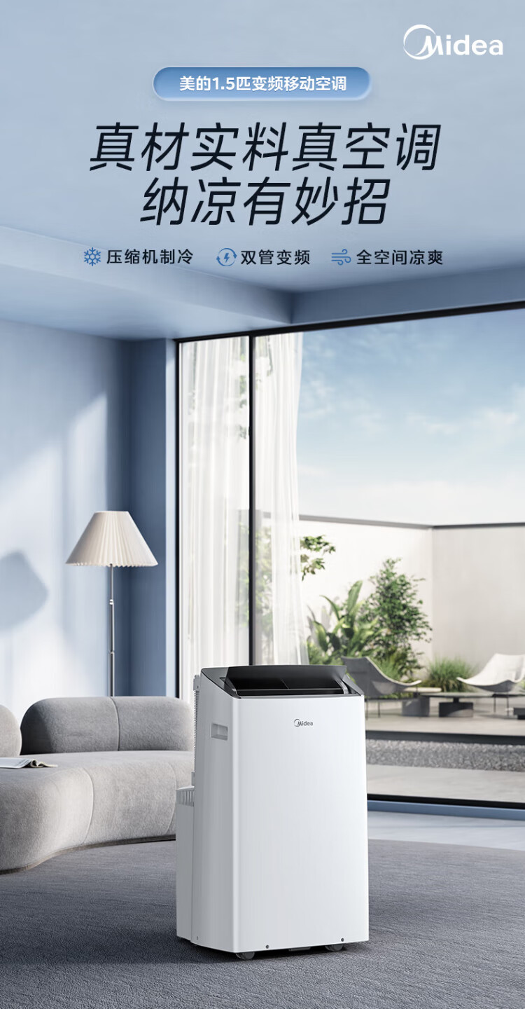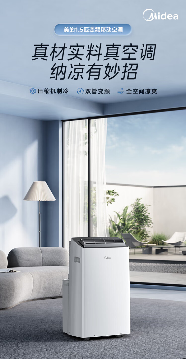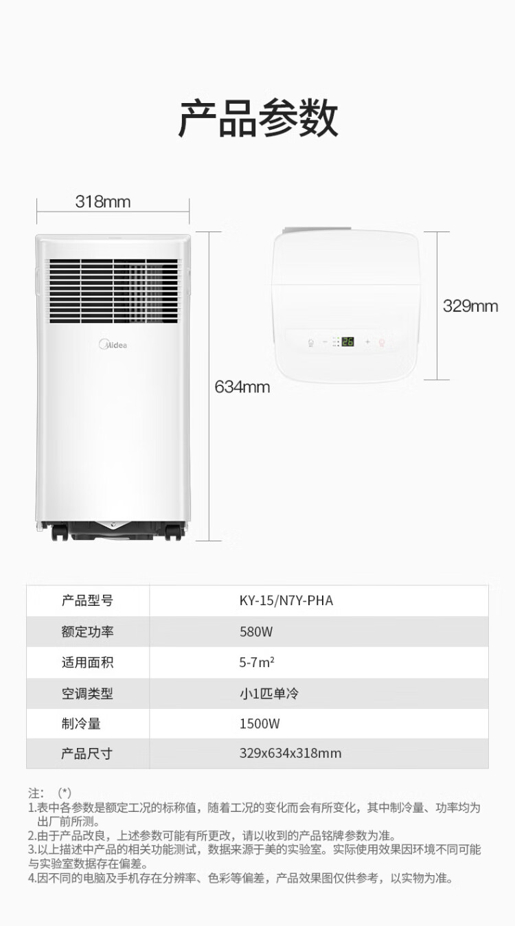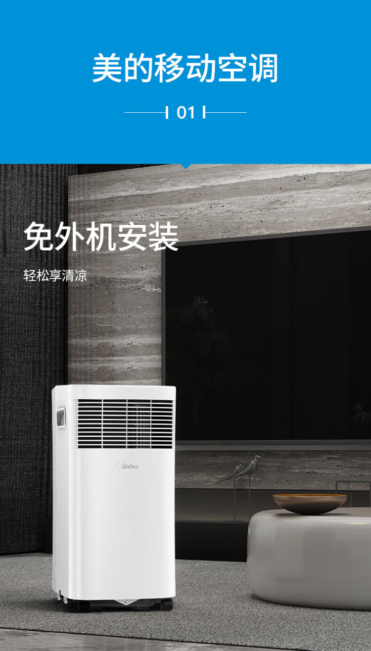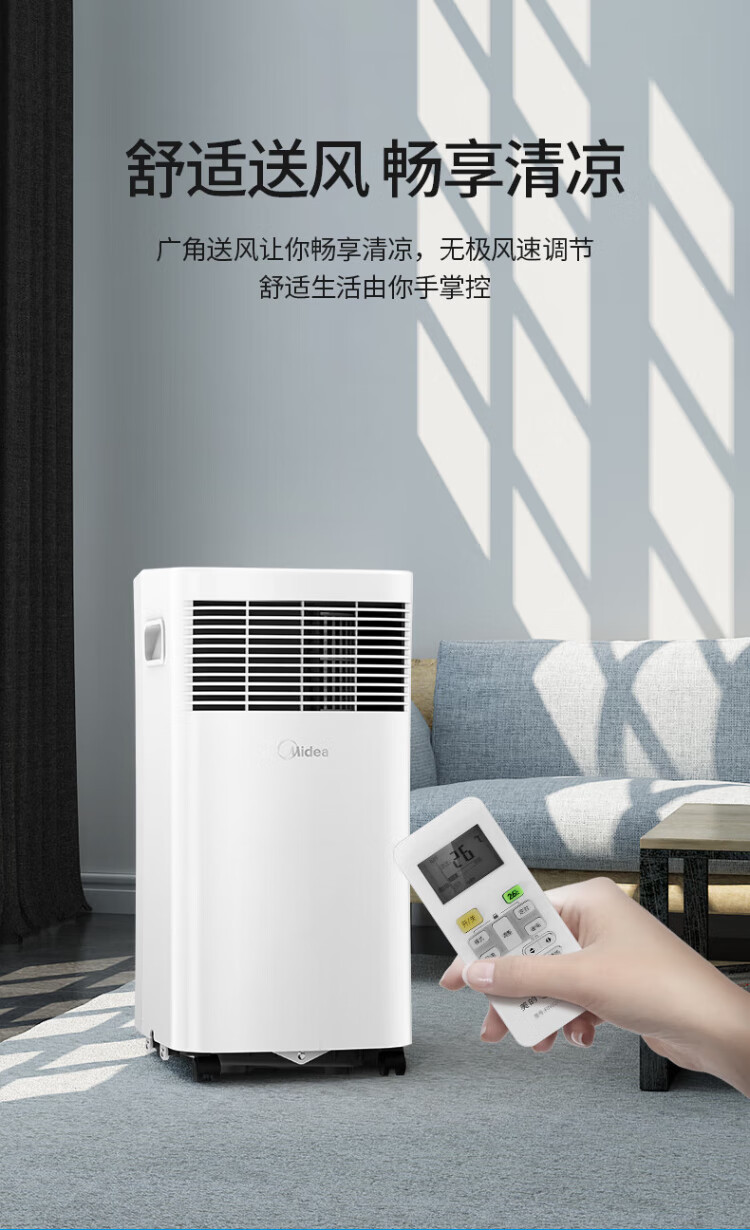Midea mobile air conditioner all-in-one unit, single cooling, no external unit, no installation and no drainage, movable home kitchen, dormitory rental room air conditioner, convenient vertical air conditioner, 1 HP, single cooling, double pipe upgrade, suitable for 5-8