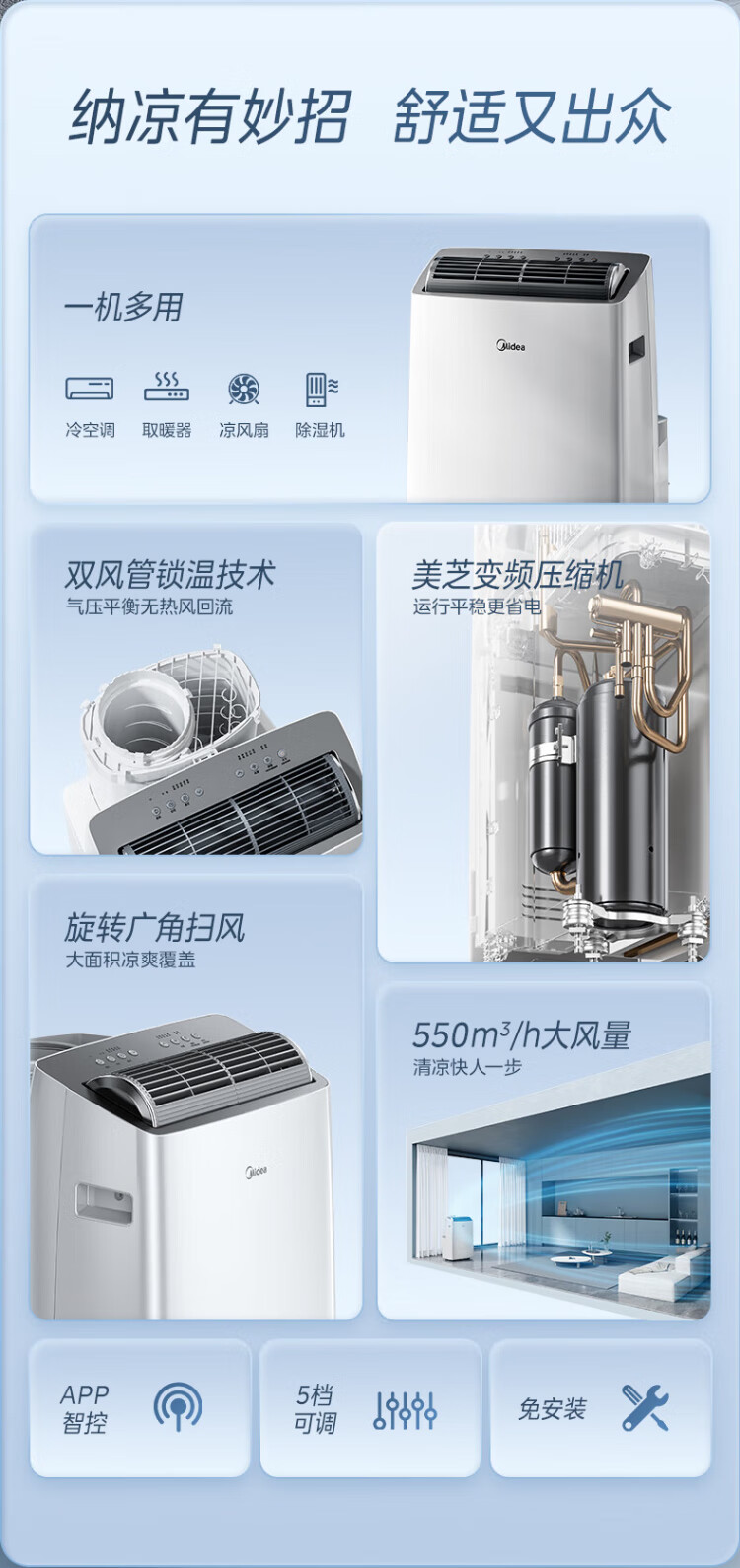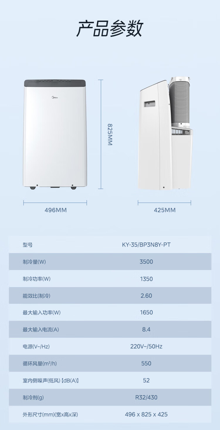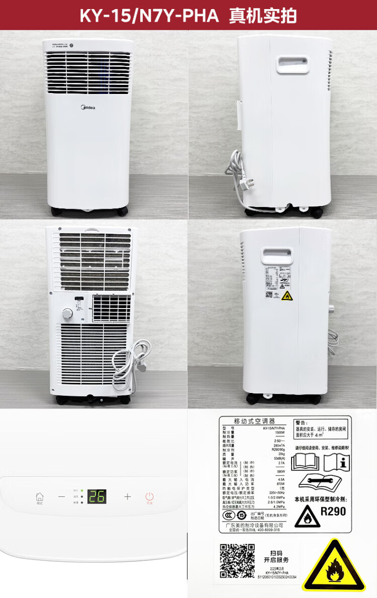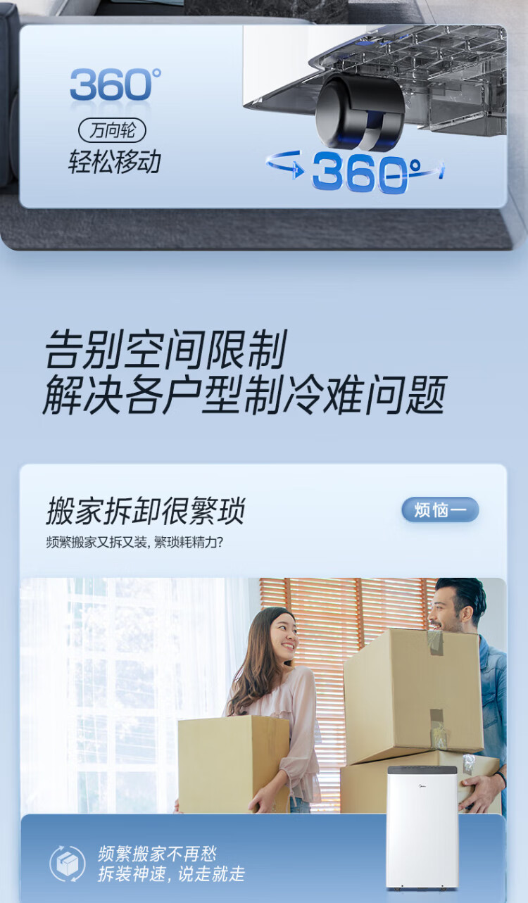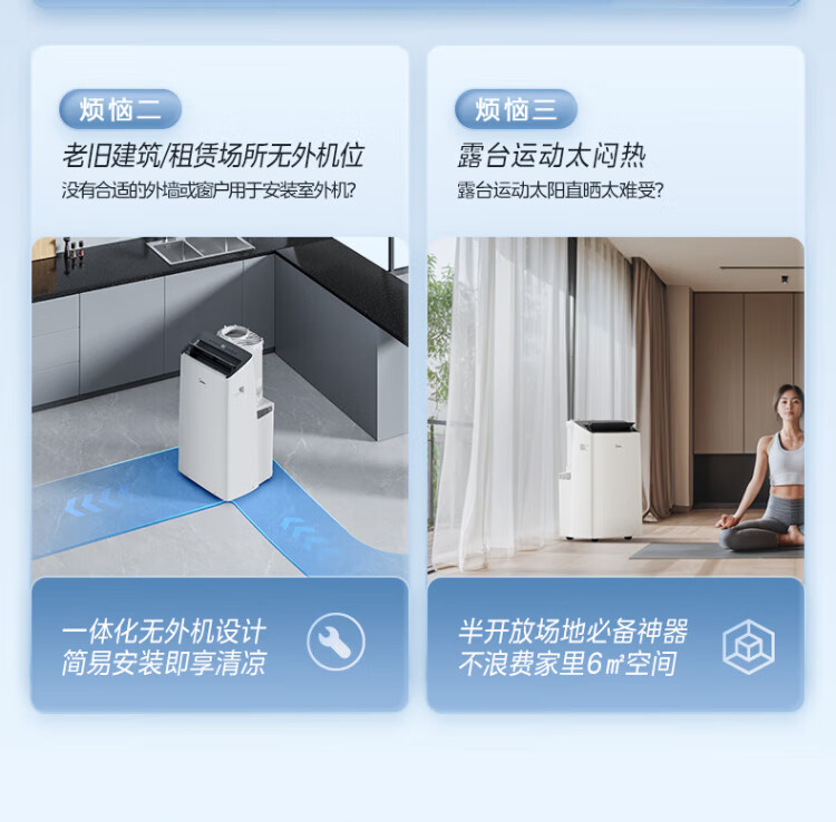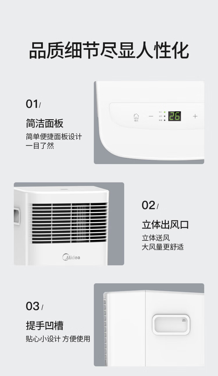 Midea mobile air conditioner all-in-one unit, single cooling, no external unit, no installation and no drainage, movable home kitchen, dormitory rental room air conditioner, convenient vertical air conditioner, 1 HP, single cooling, double pipe upgrade, suitable for 5-8