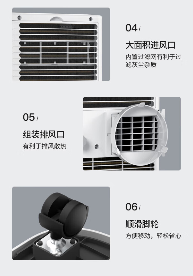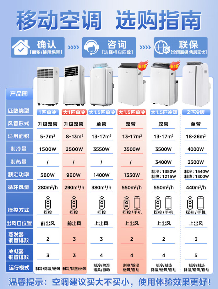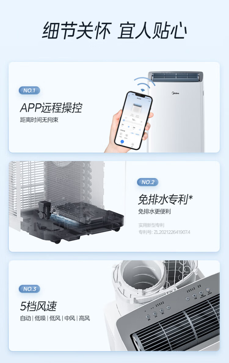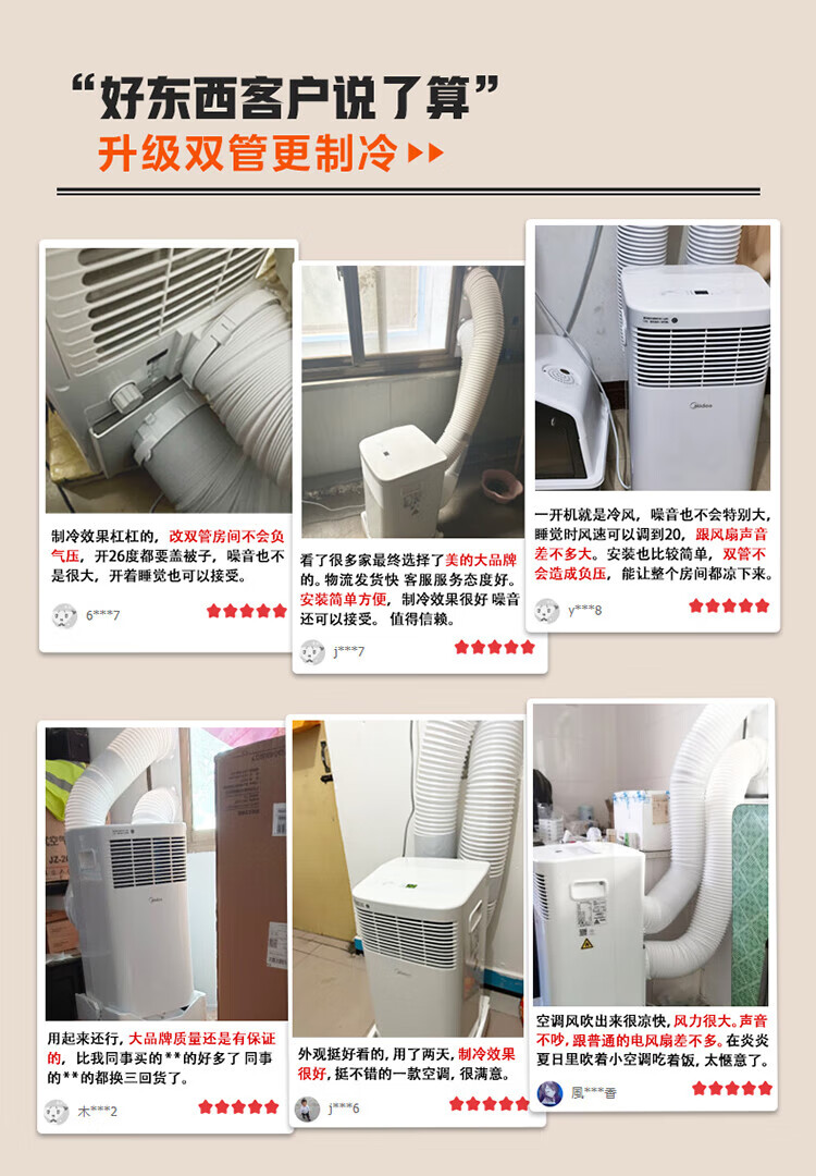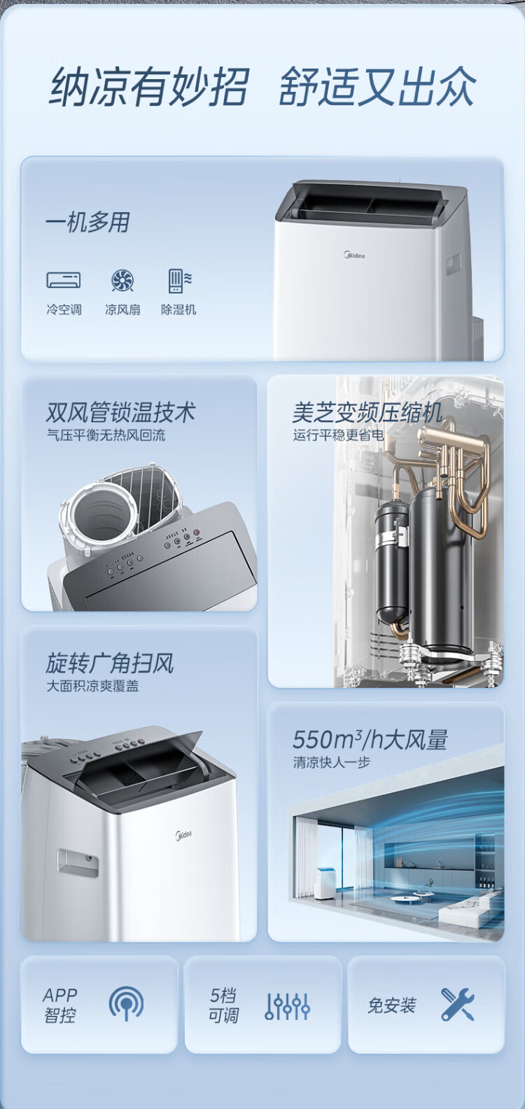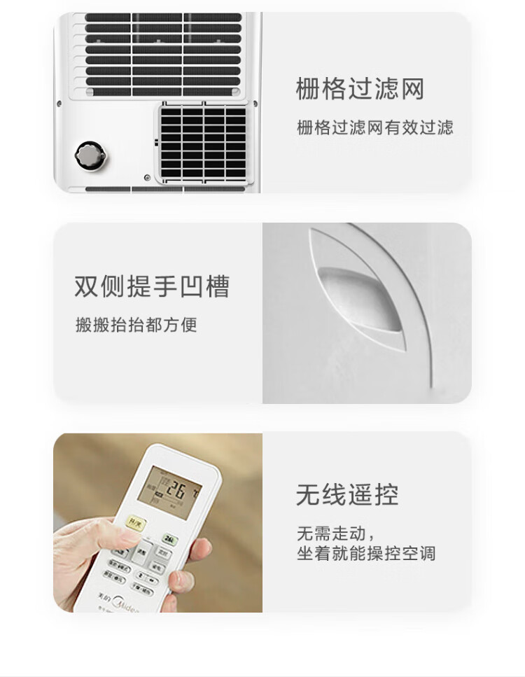 Midea mobile air conditioner all-in-one unit, single cooling, no external unit, no installation and no drainage, movable home kitchen, dormitory rental room air conditioner, convenient vertical air conditioner, 1 HP, single cooling, double pipe upgrade, suitable for 5-8