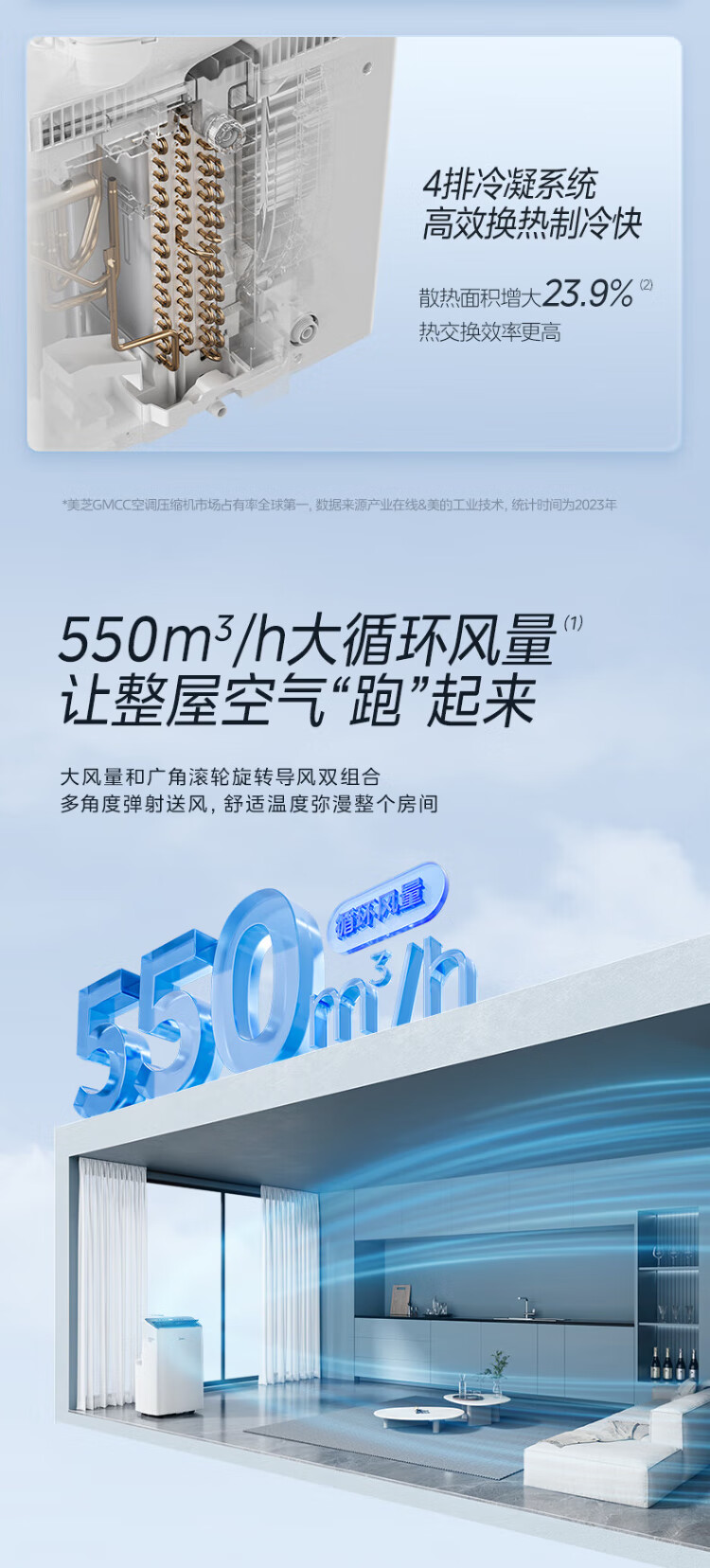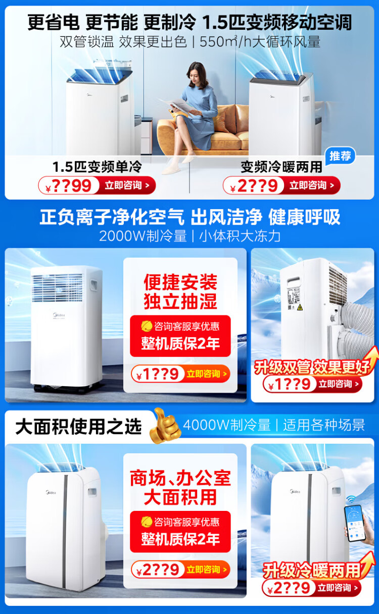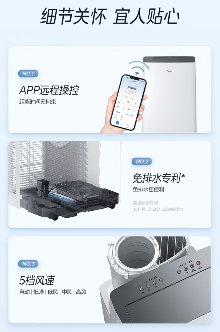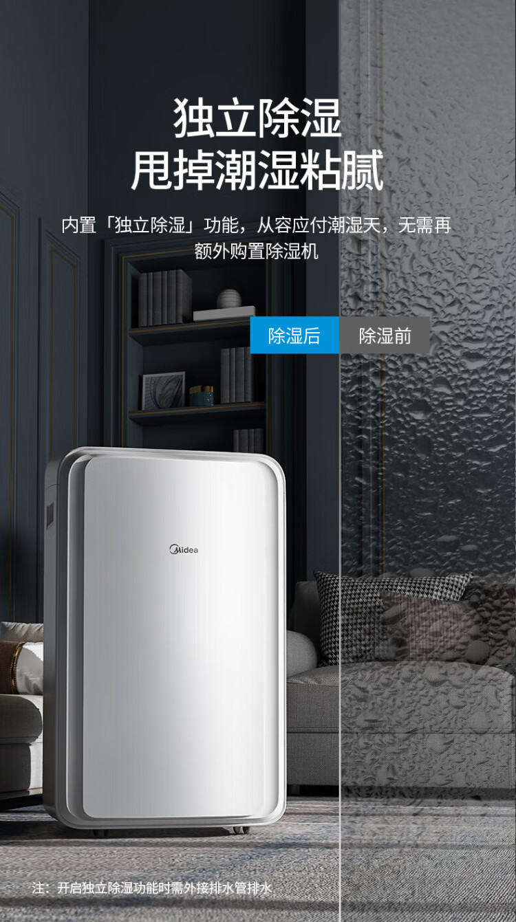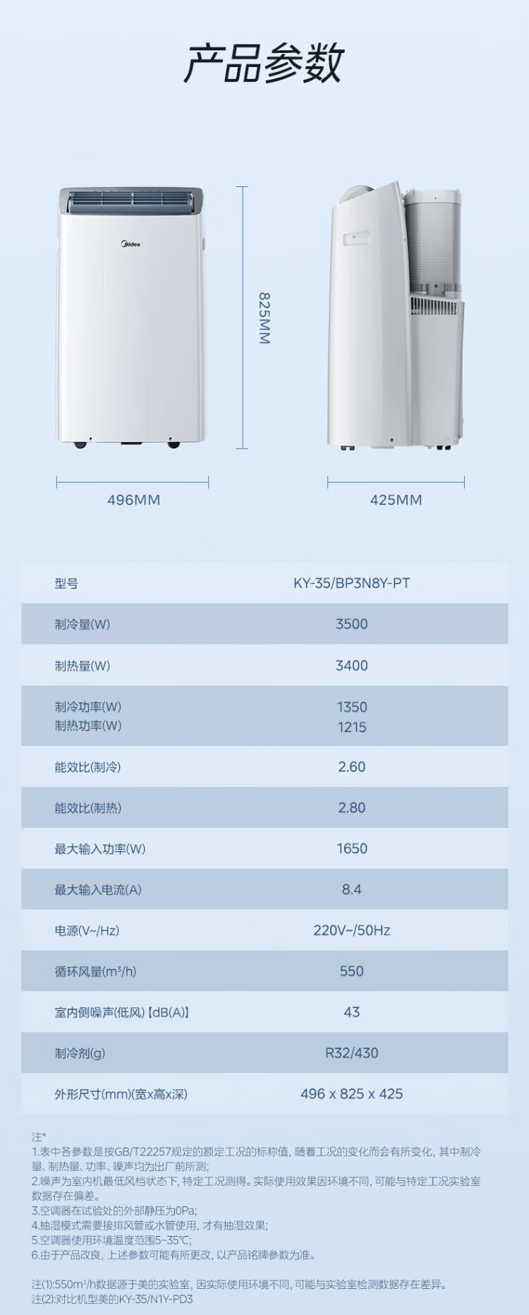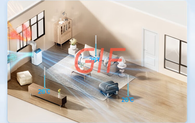 Midea mobile air conditioner all-in-one unit, single cooling, no external unit, no installation and no drainage, movable home kitchen, dormitory rental room air conditioner, convenient vertical air conditioner, 1 HP, single cooling, double pipe upgrade, suitable for 5-8