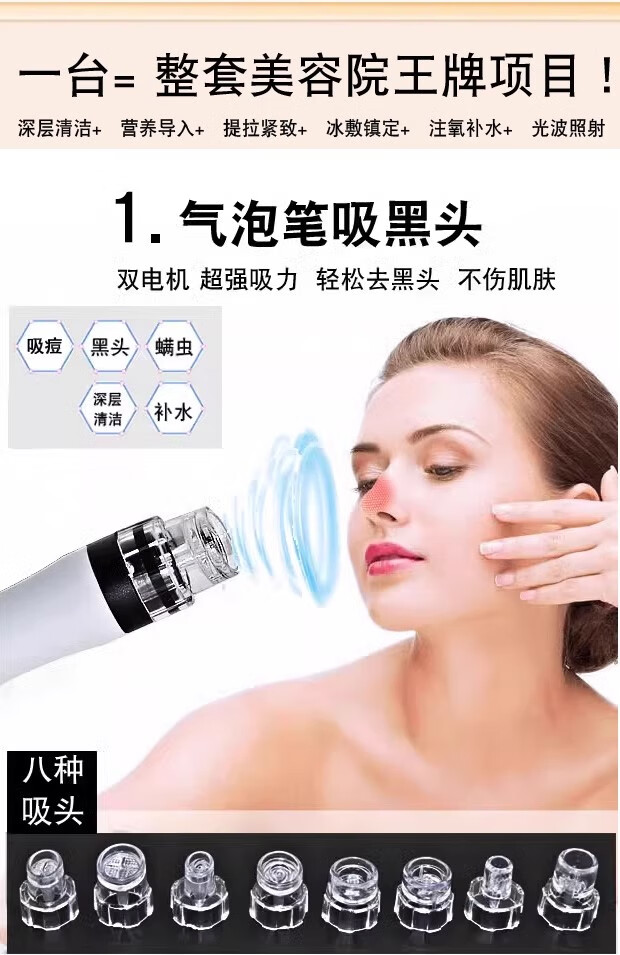 Blackhead suction instrument introduction instrument to remove blackheads, small bubble beauty instrument, oxygen injection instrument, pore cleaning, beauty salon special, large double pump, blackhead suction + ultrasonic introduction