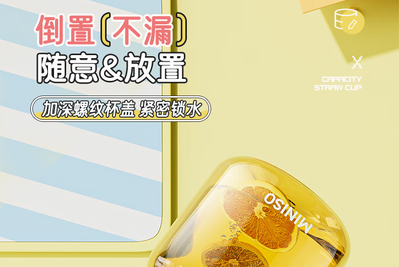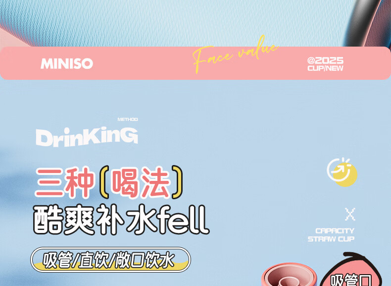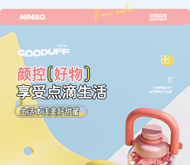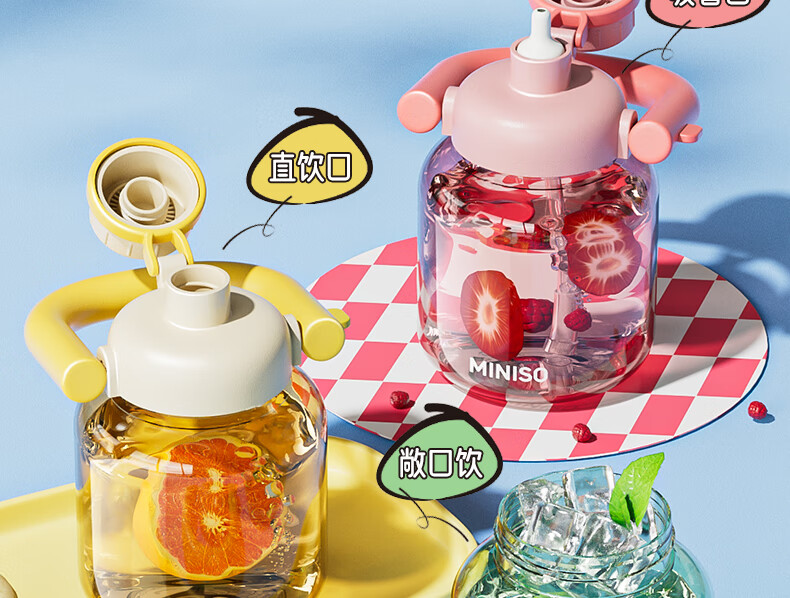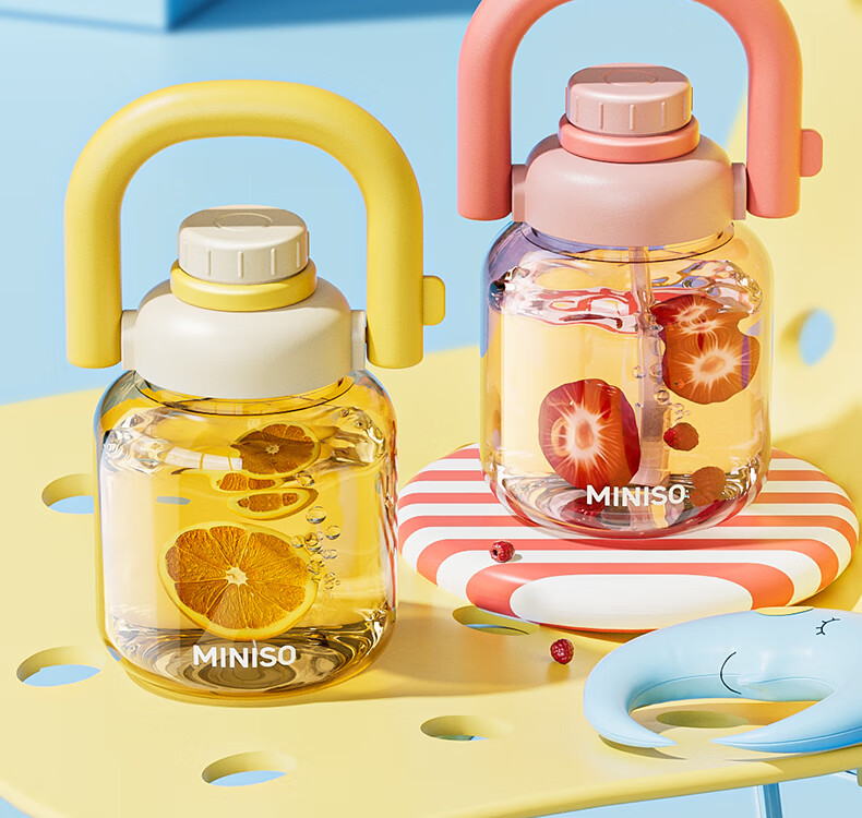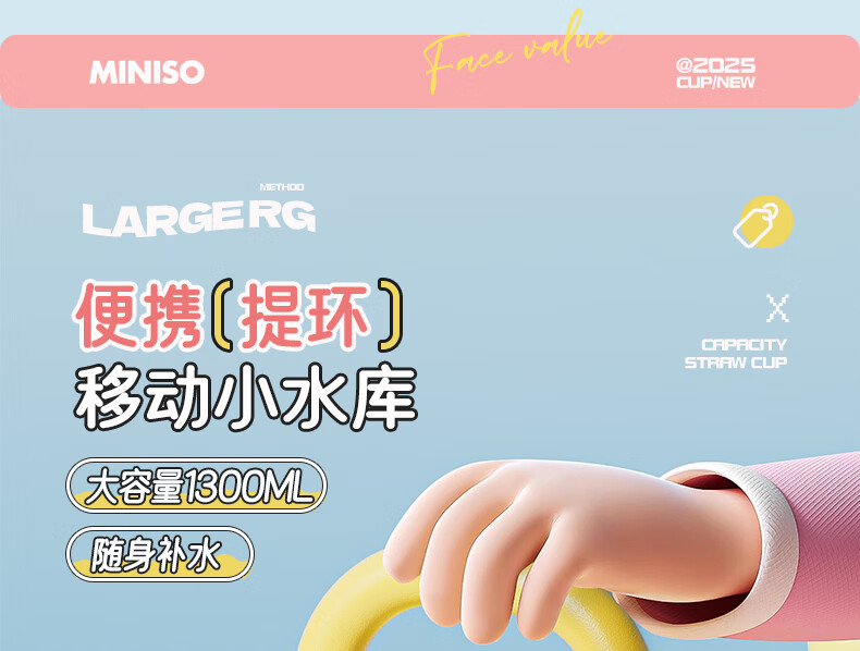 Minso high-quality large-capacity water cup for women with good looks, big-belly cup with straw, student portable plastic kettle, new model, mousse powder 1300ml PC