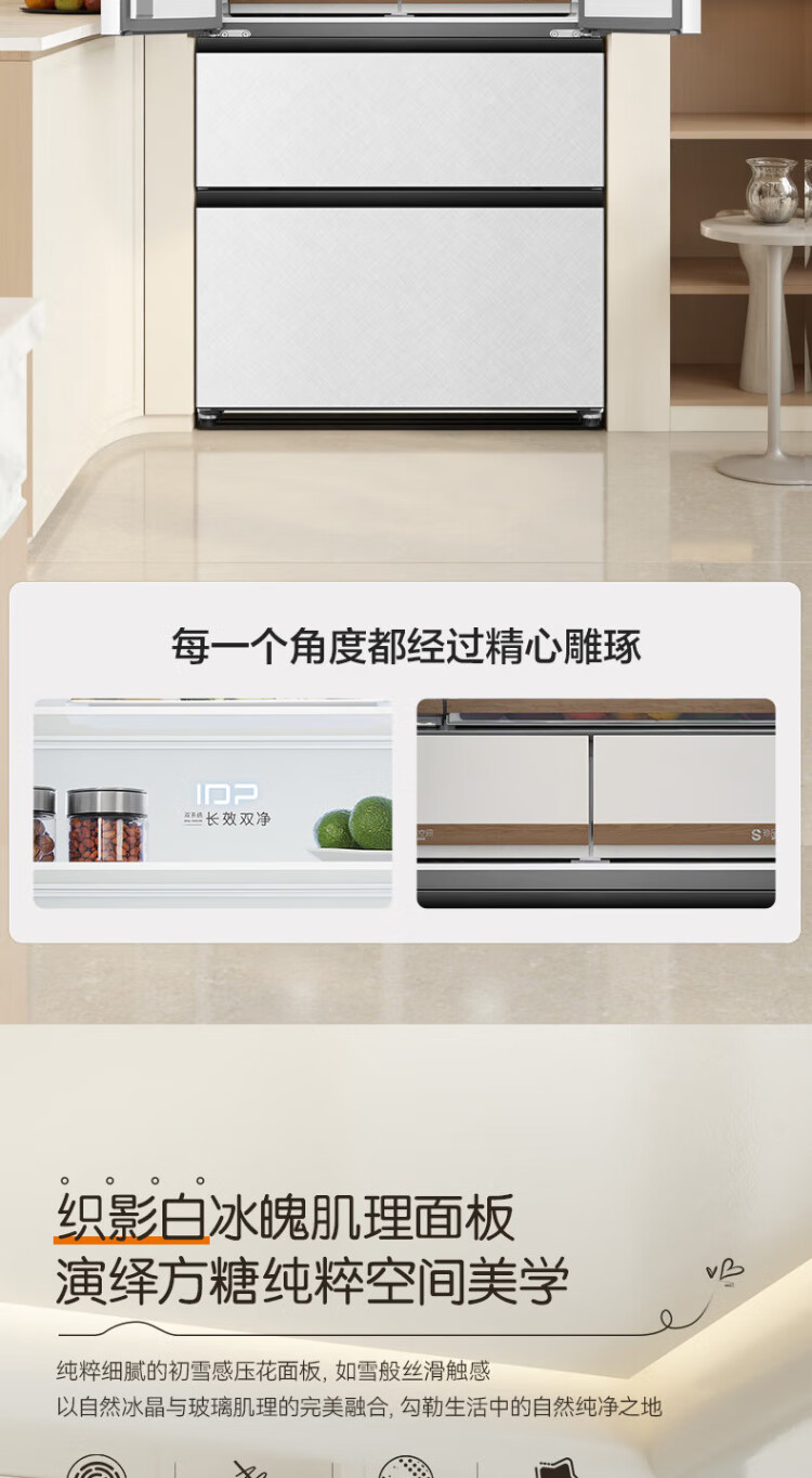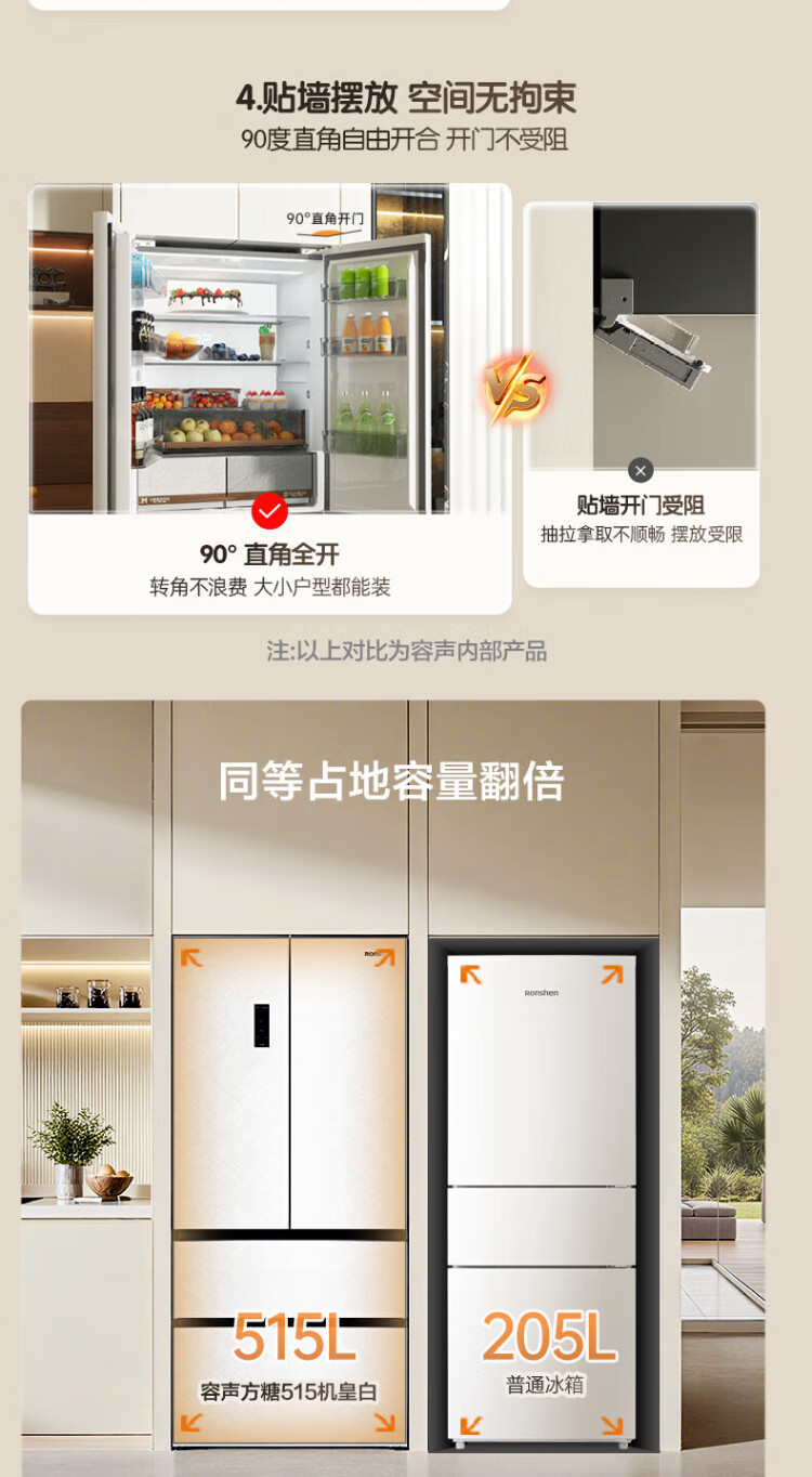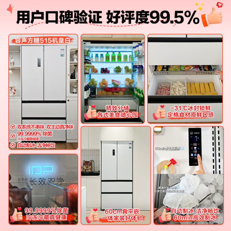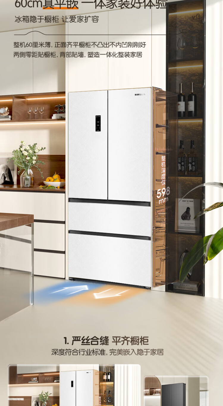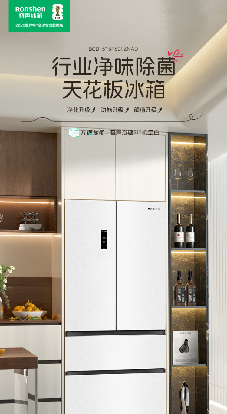 Rongsheng Cube Sugar 515L French style multi-door refrigerator dual system ultra-thin zero-embedded first-level energy efficiency automatic ice making white BCD-515P60FZNAD national subsidy World Cup BCD-515P60FZNAD white national subsidy
