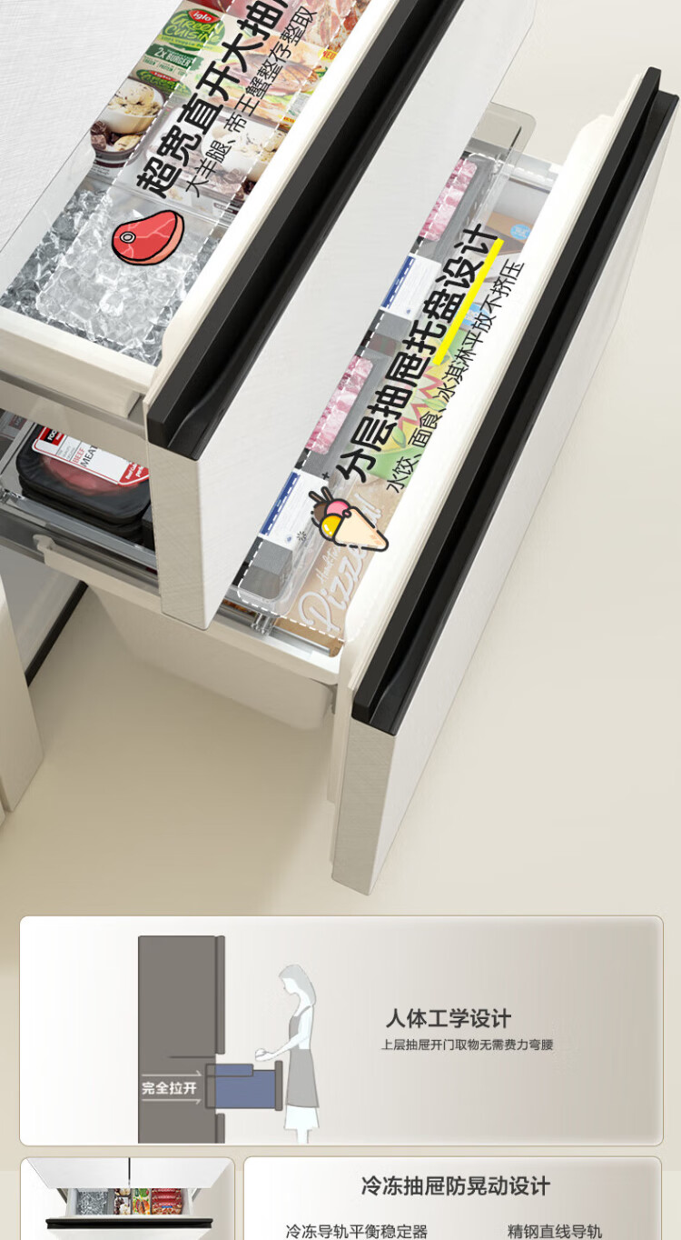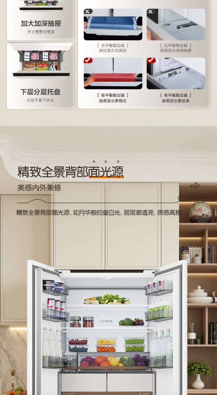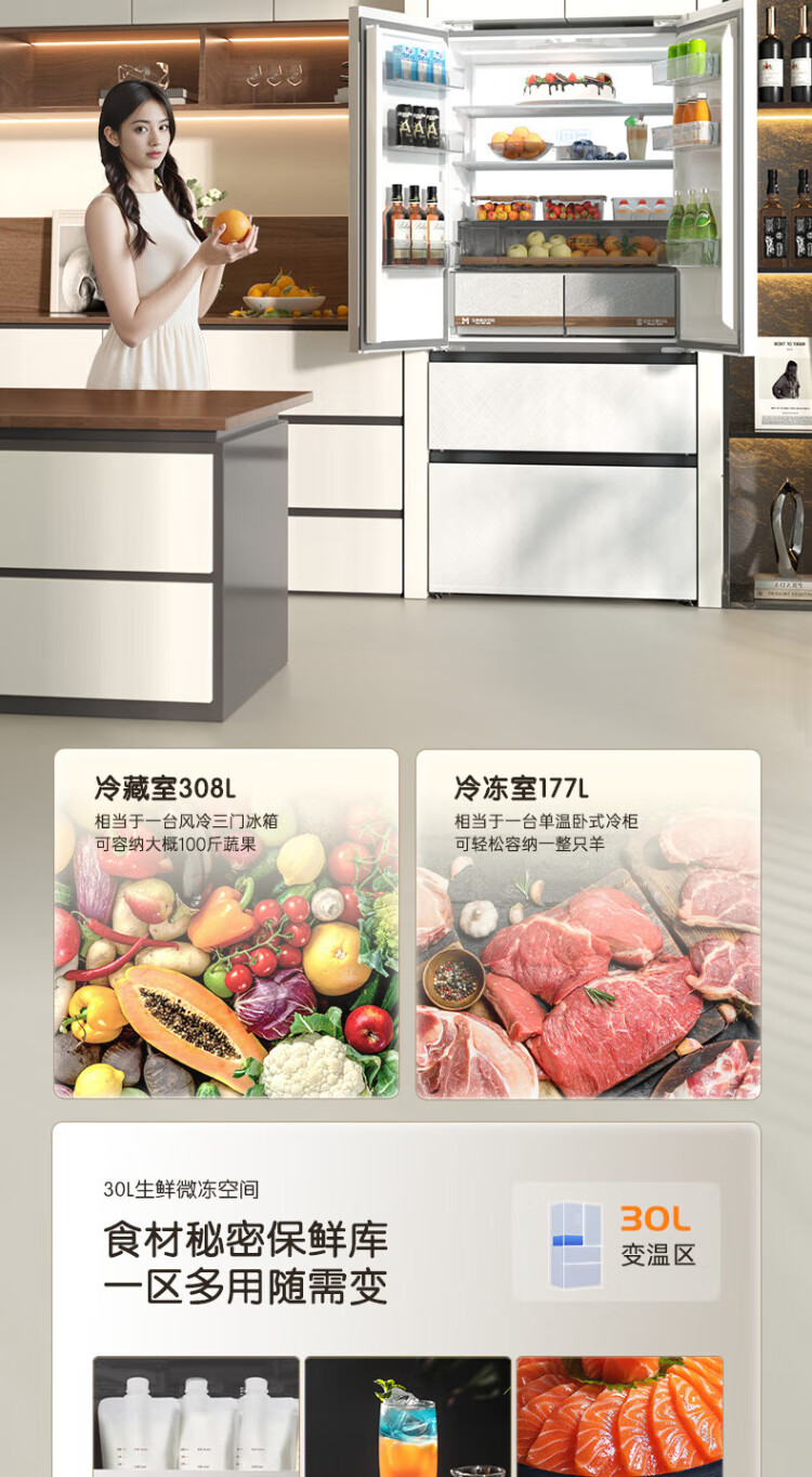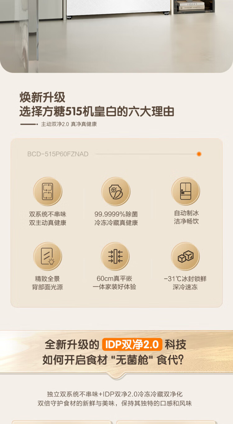 Rongsheng Cube Sugar 515L French style multi-door refrigerator dual system ultra-thin zero-embedded first-level energy efficiency automatic ice making white BCD-515P60FZNAD national subsidy World Cup BCD-515P60FZNAD white national subsidy