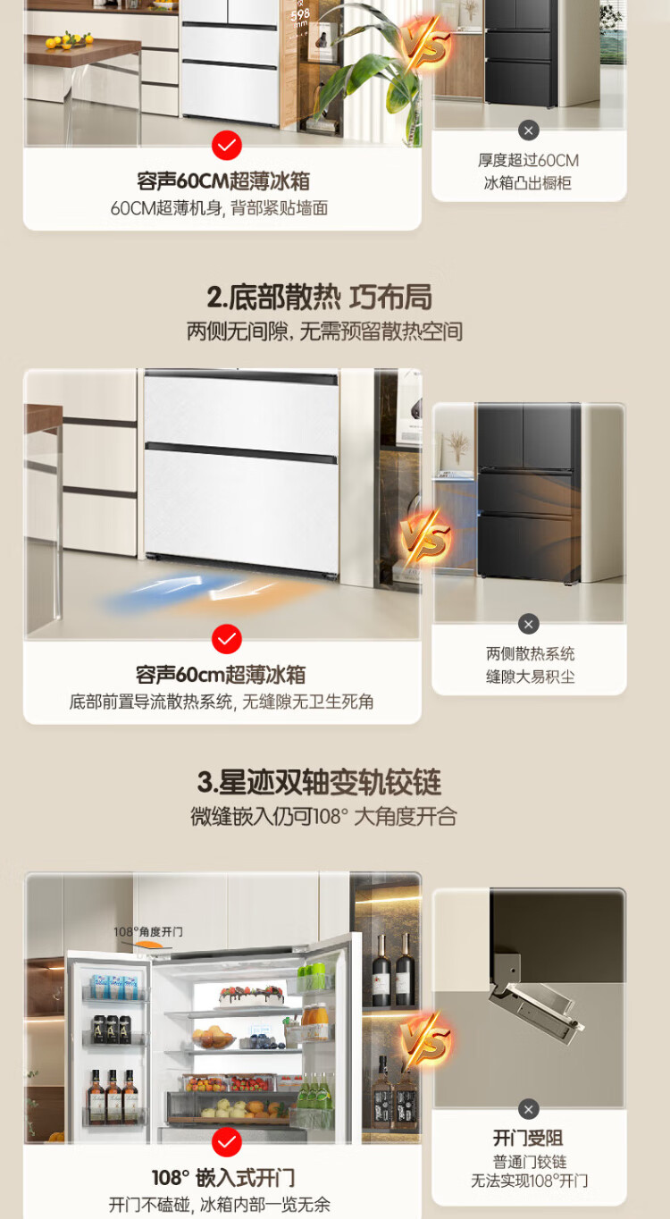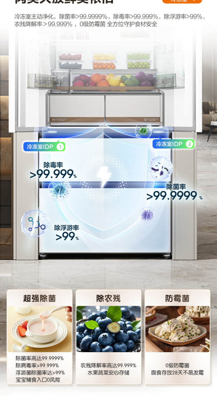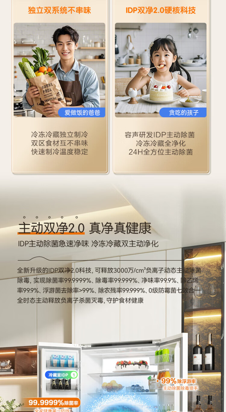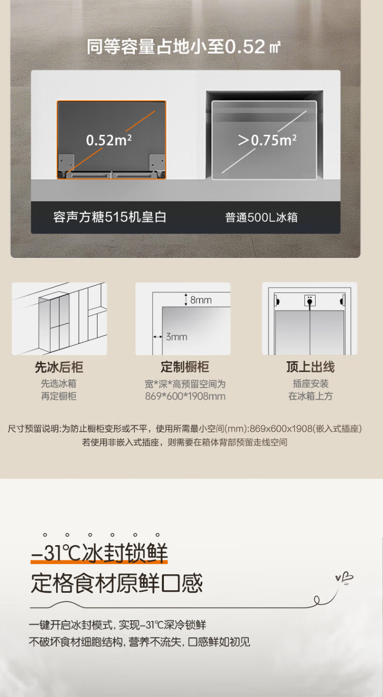 Rongsheng Cube Sugar 515L French style multi-door refrigerator dual system ultra-thin zero-embedded first-level energy efficiency automatic ice making white BCD-515P60FZNAD national subsidy World Cup BCD-515P60FZNAD white national subsidy