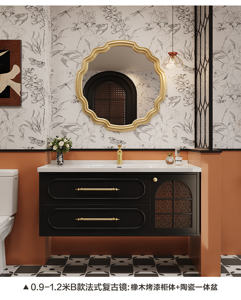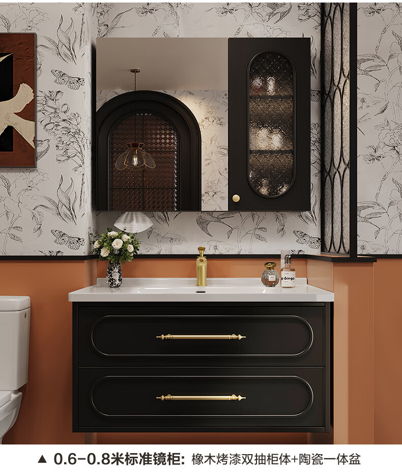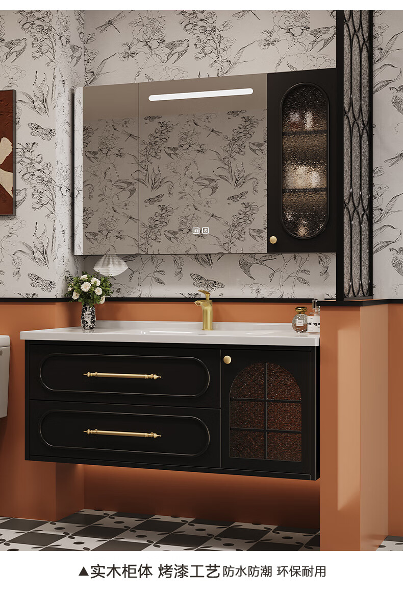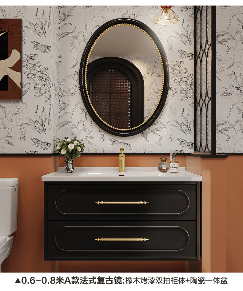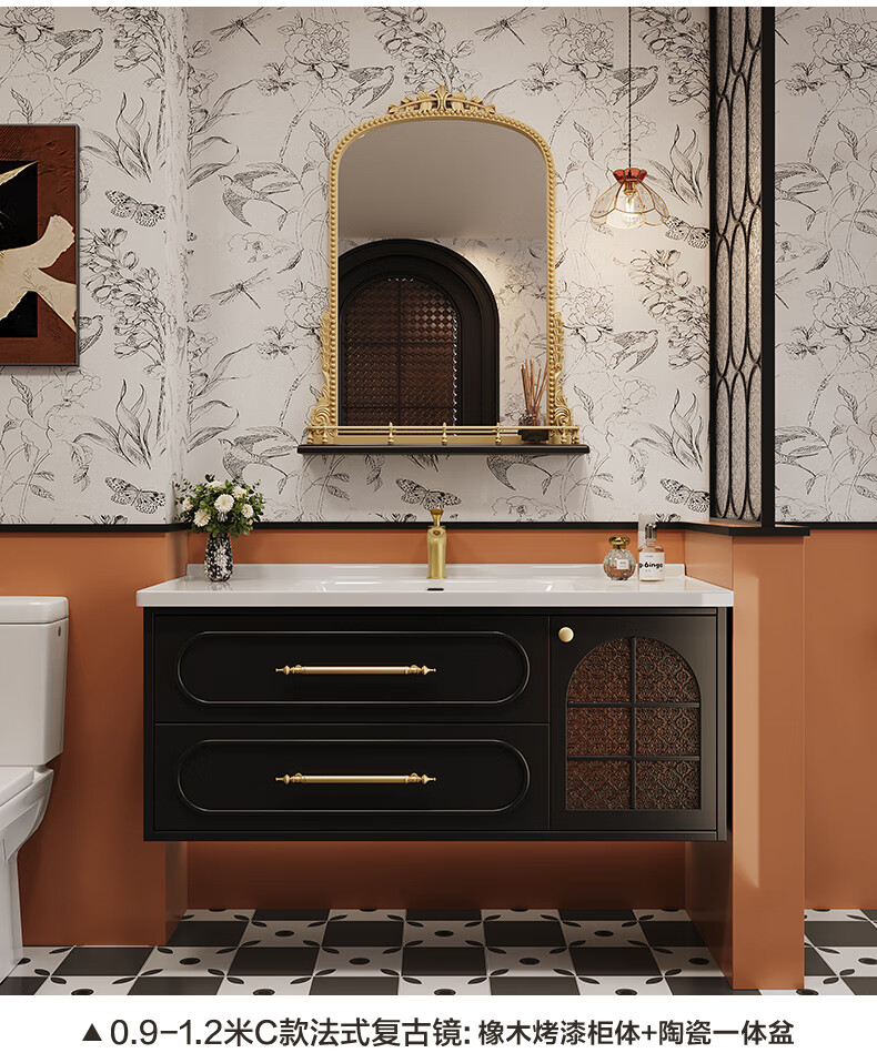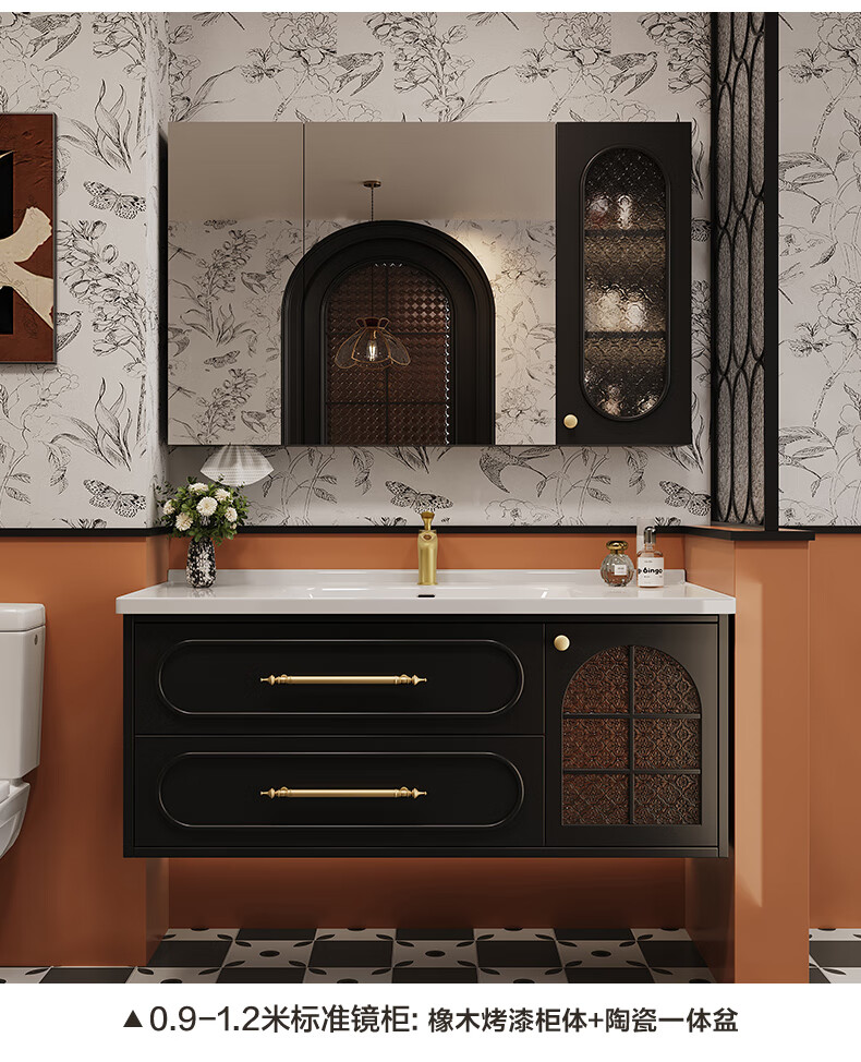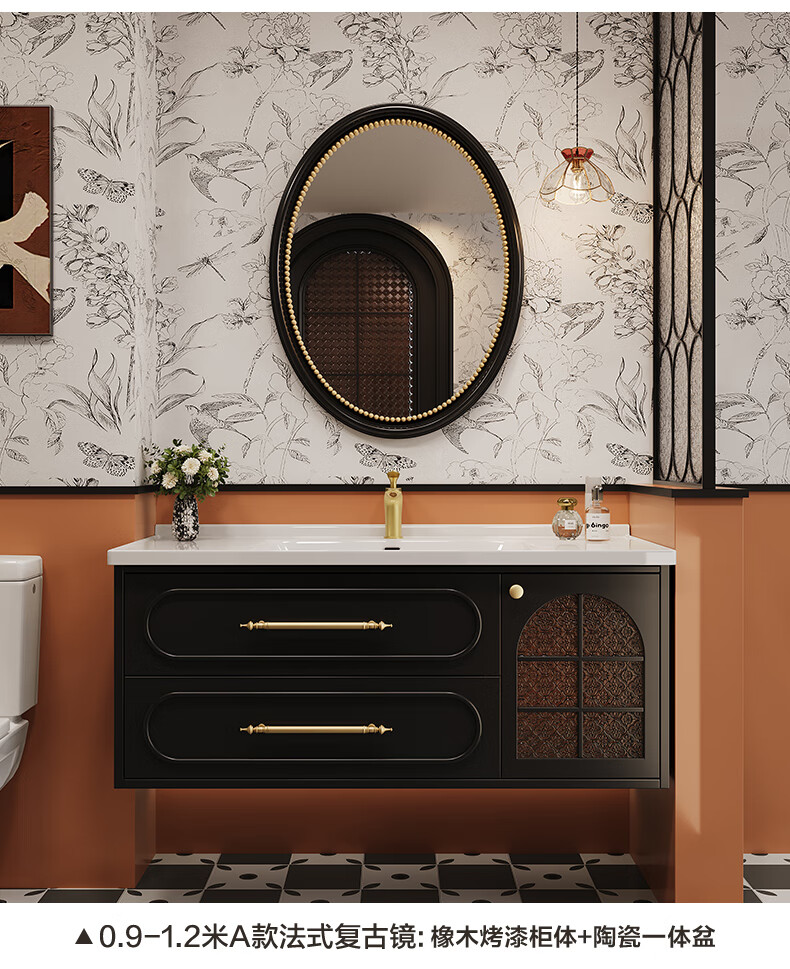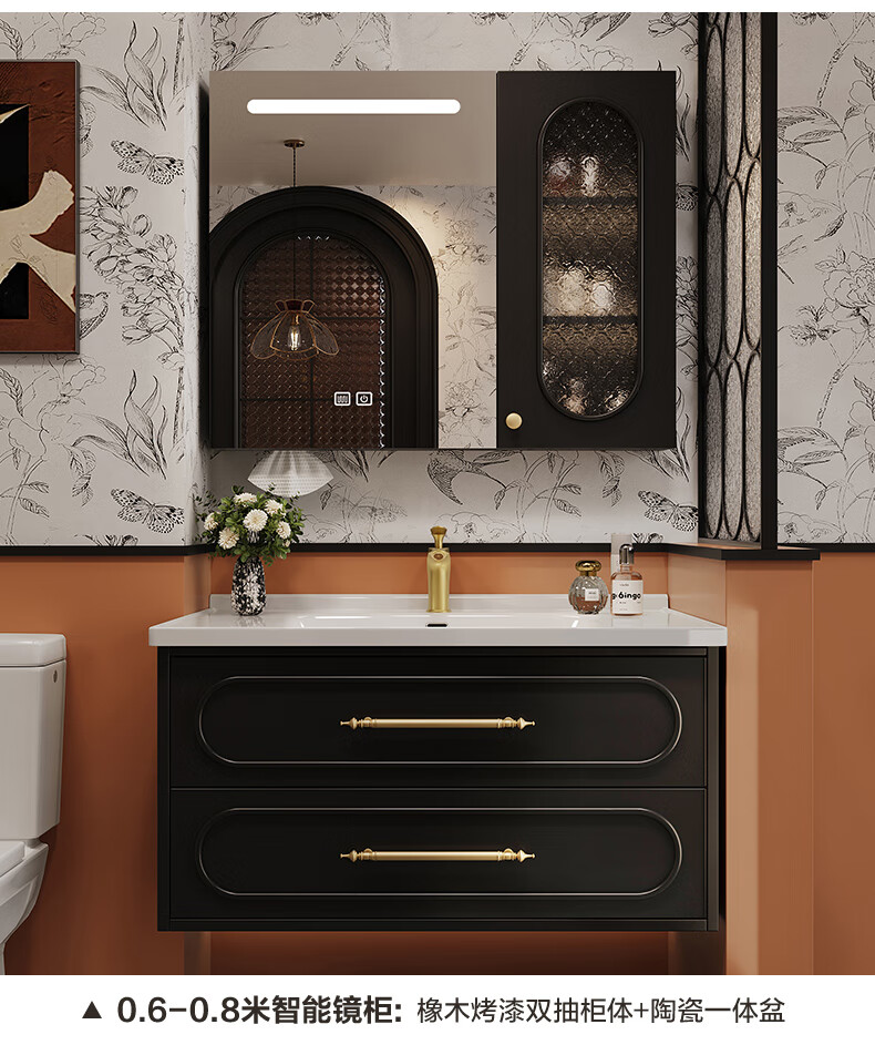 Sibai French Retro Bathroom Cabinet 2025 New Middle Ages Bathroom Ceramic Integrated Washbasin Washbasin Oak Customized Smart Mirror Cabinet 0.9 Meter