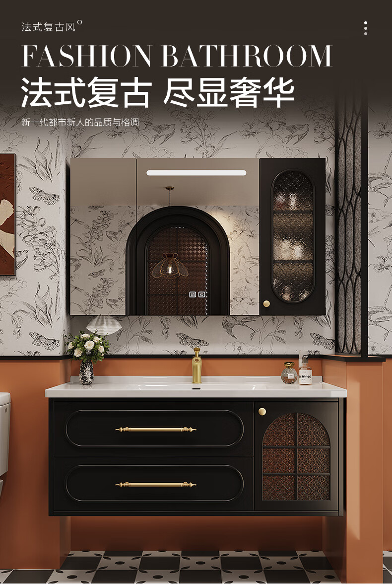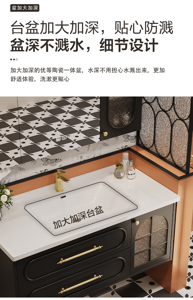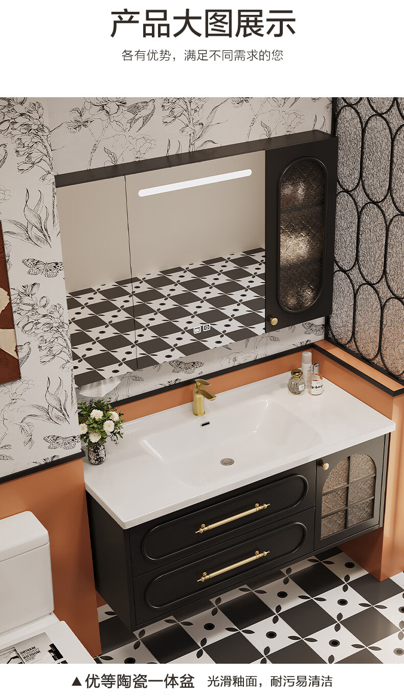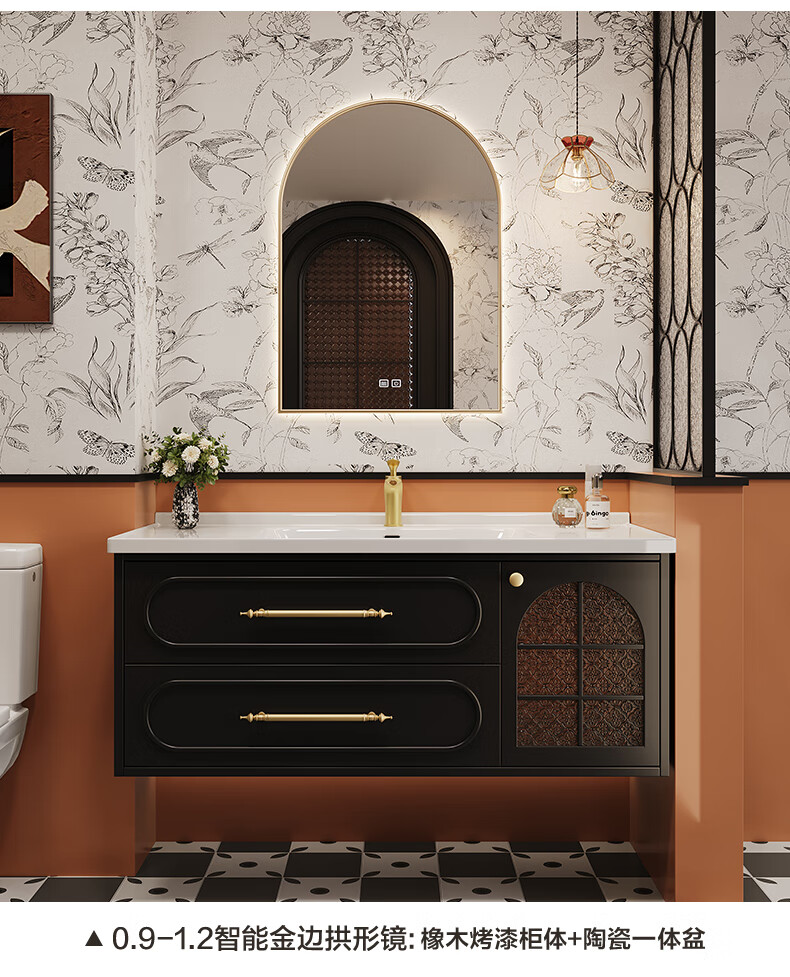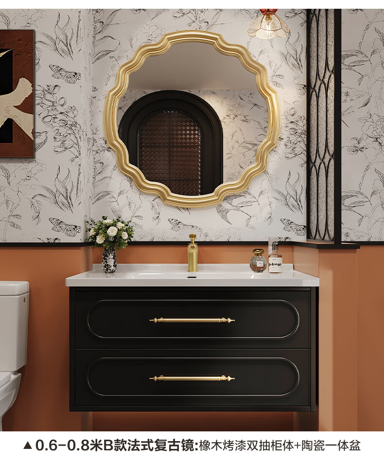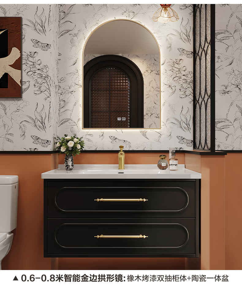 Sibai French Retro Bathroom Cabinet 2025 New Middle Ages Bathroom Ceramic Integrated Washbasin Washbasin Oak Customized Smart Mirror Cabinet 0.9 Meter