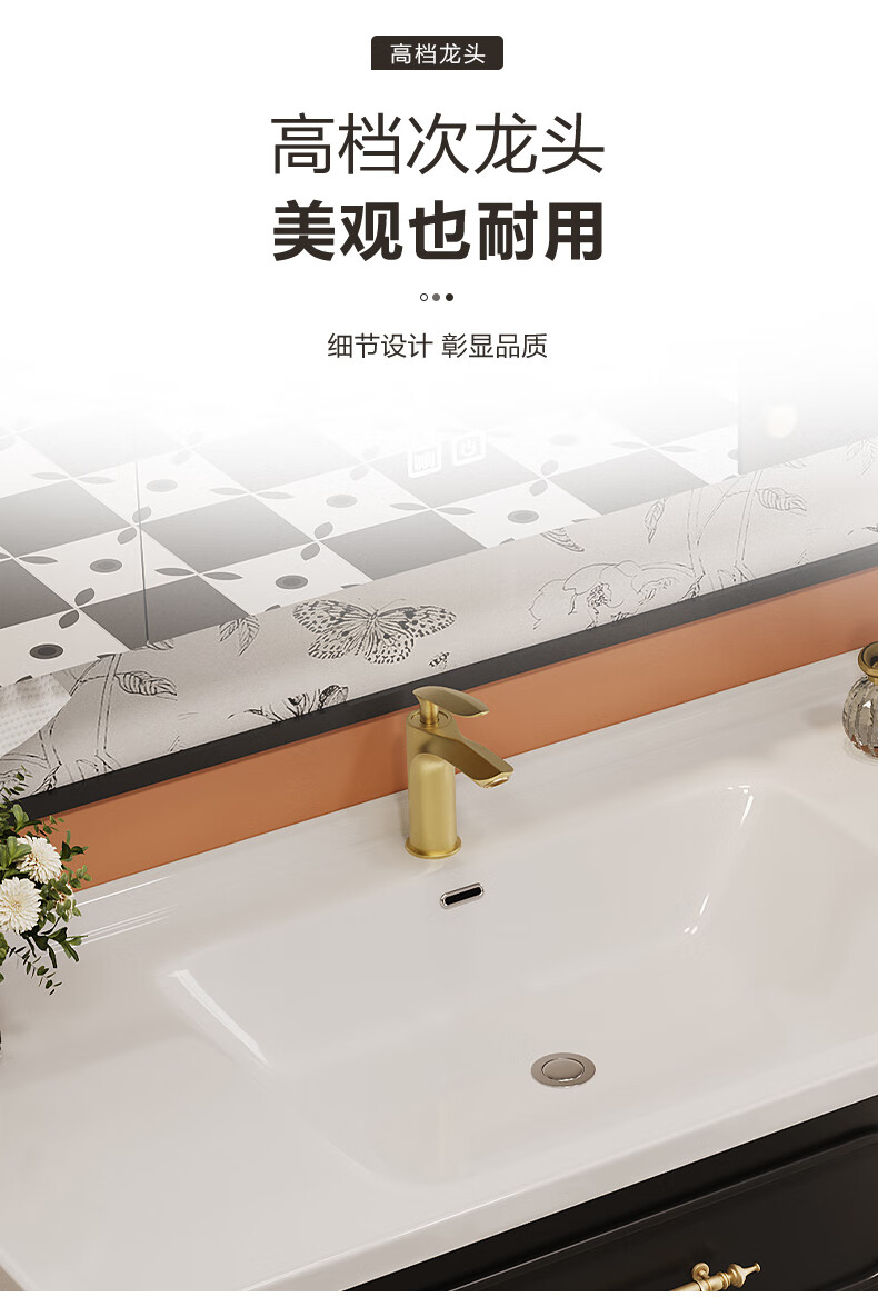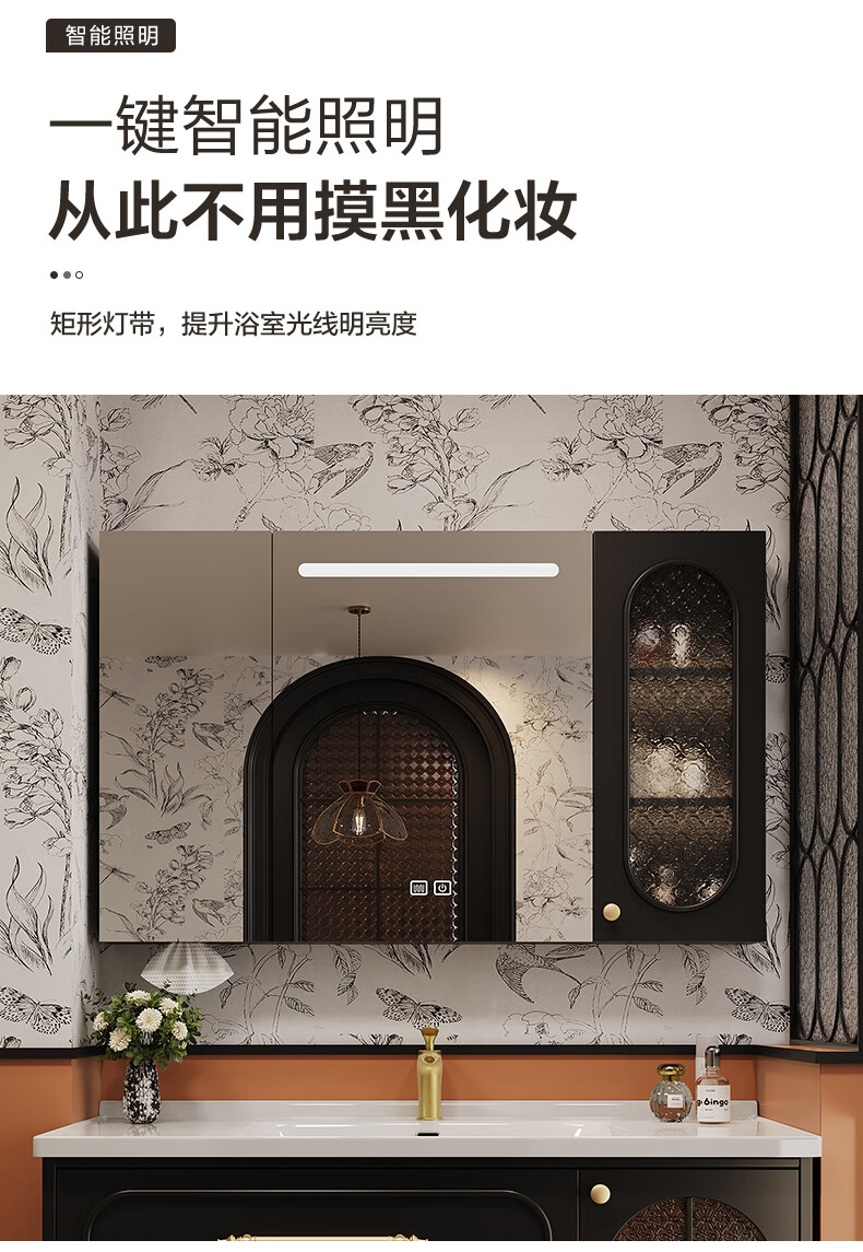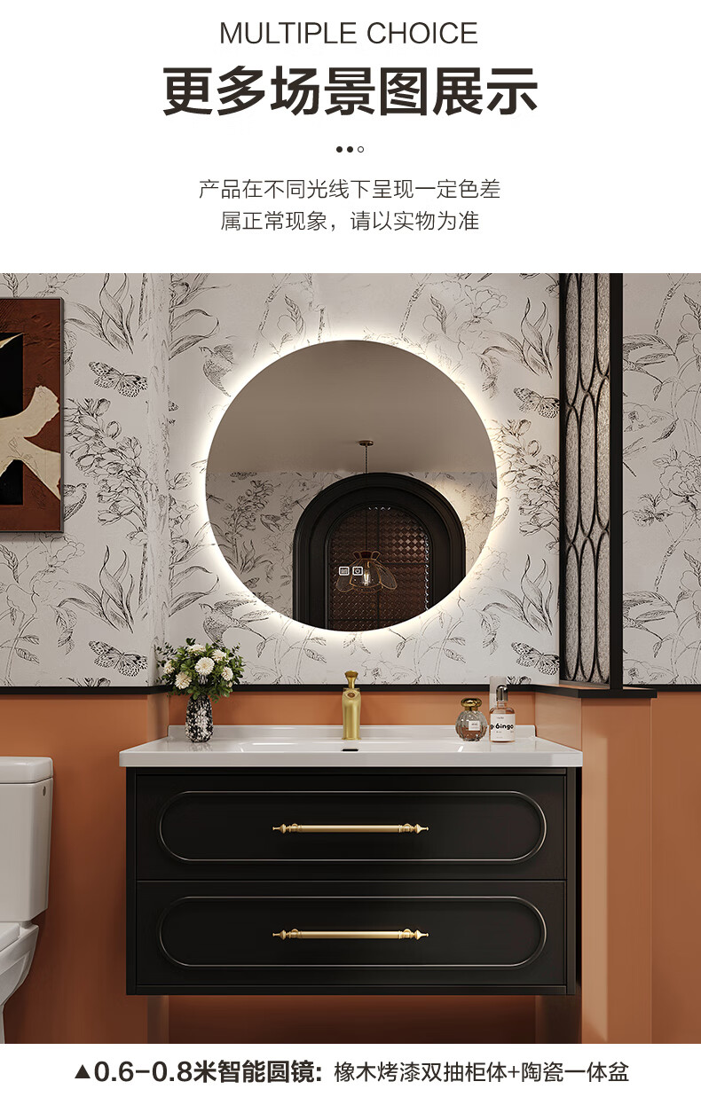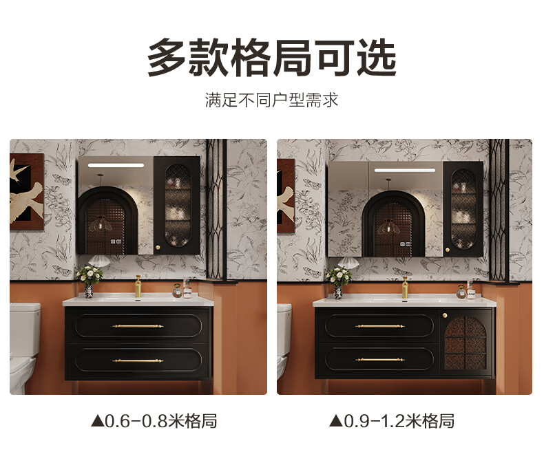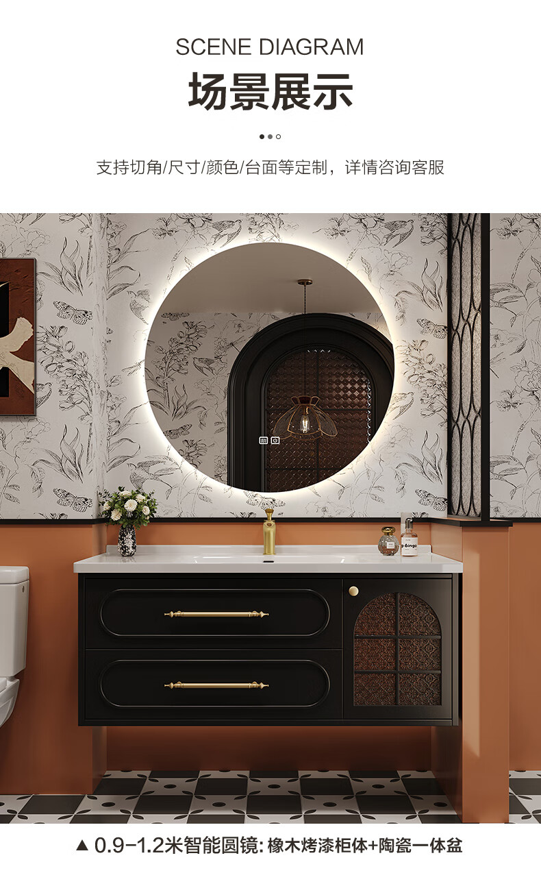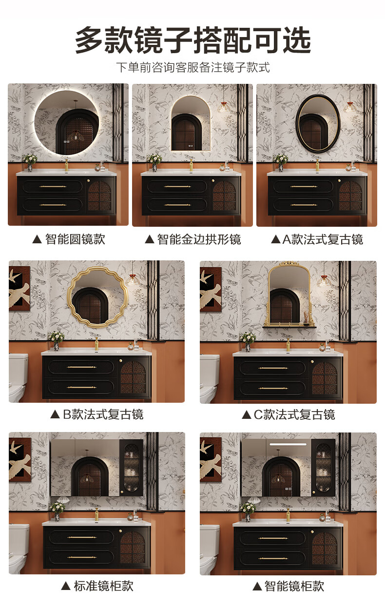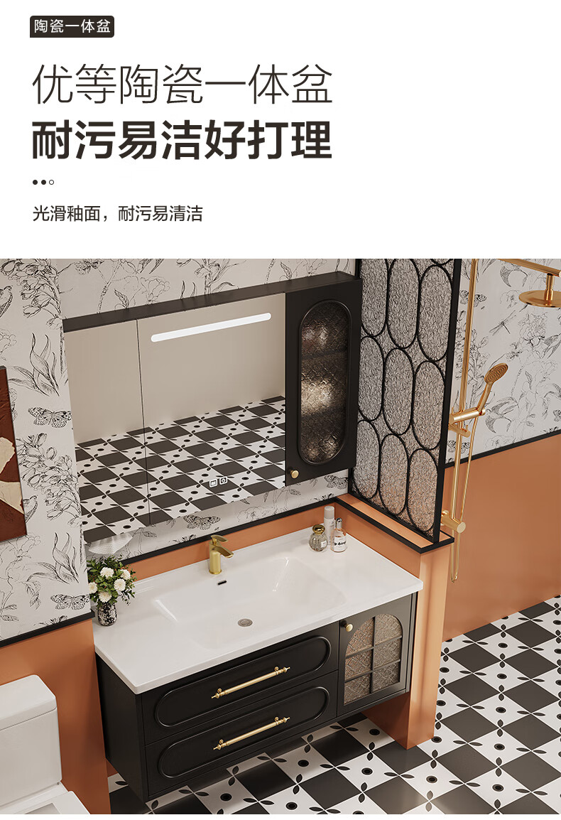 Sibai French Retro Bathroom Cabinet 2025 New Middle Ages Bathroom Ceramic Integrated Washbasin Washbasin Oak Customized Smart Mirror Cabinet 0.9 Meter