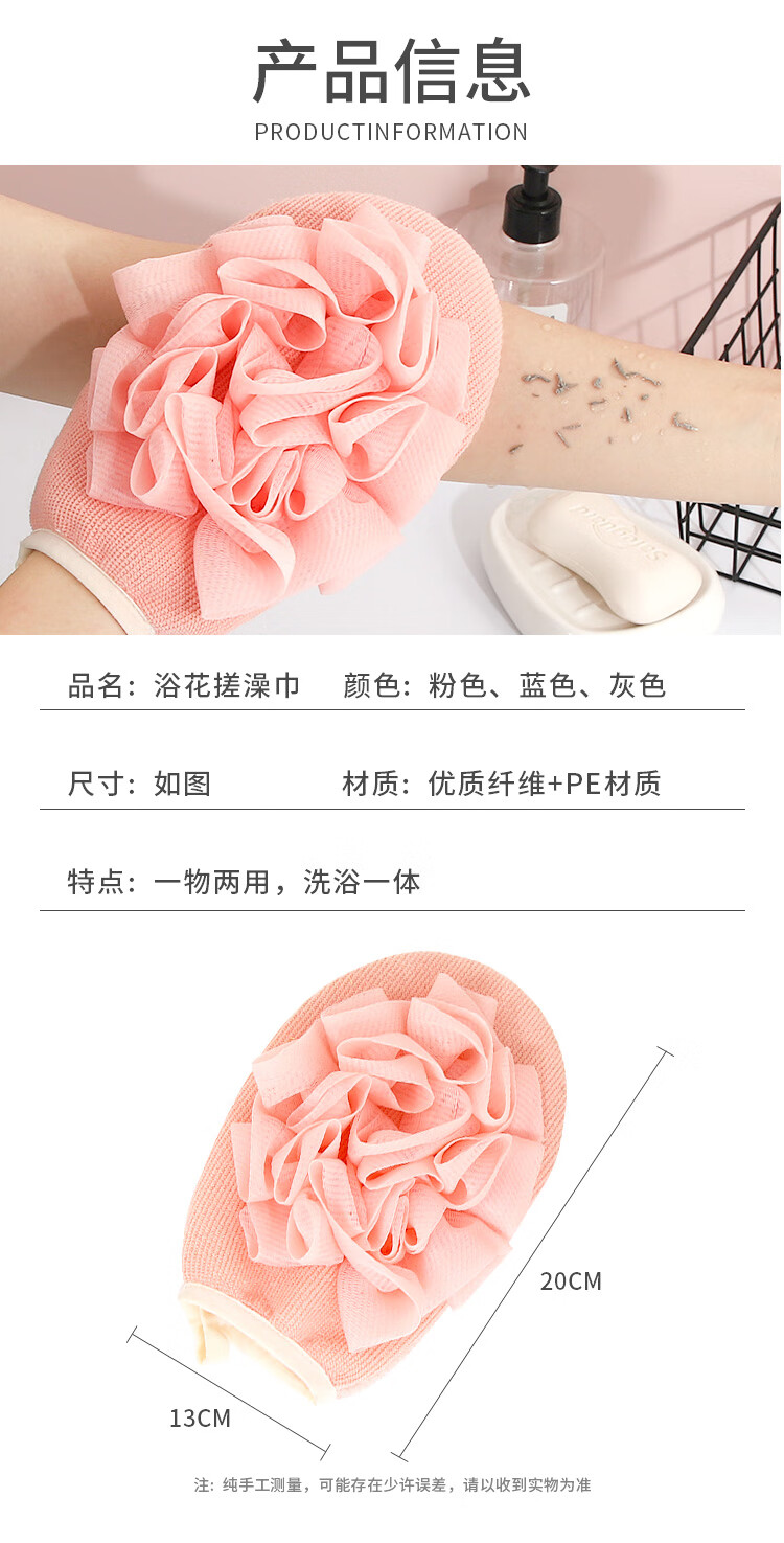 Fat Donglai's same style bath towel, bath towel, two-in-one women's special bath ball, double-sided bath towel, gloves for back rub, great value and thickened, three-color cost-effective package, pink + blue + gray
