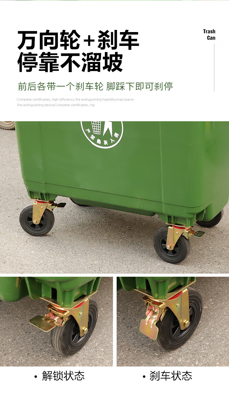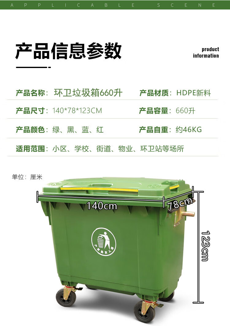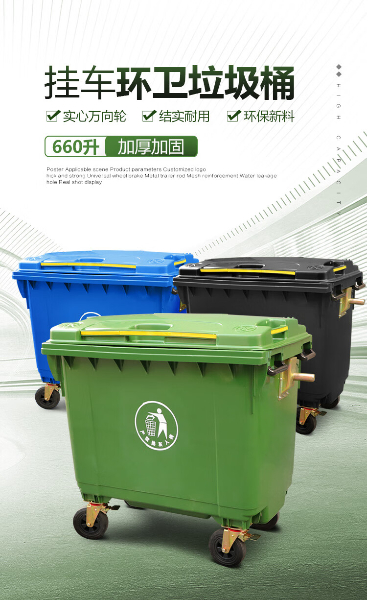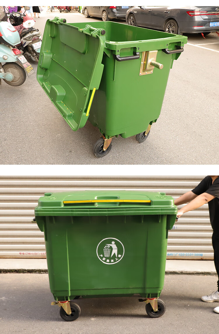 Senser trash can 660 liters large large capacity with cover wheeled commercial property hotel school community domestic trash can 660 liters green (little person mark)
