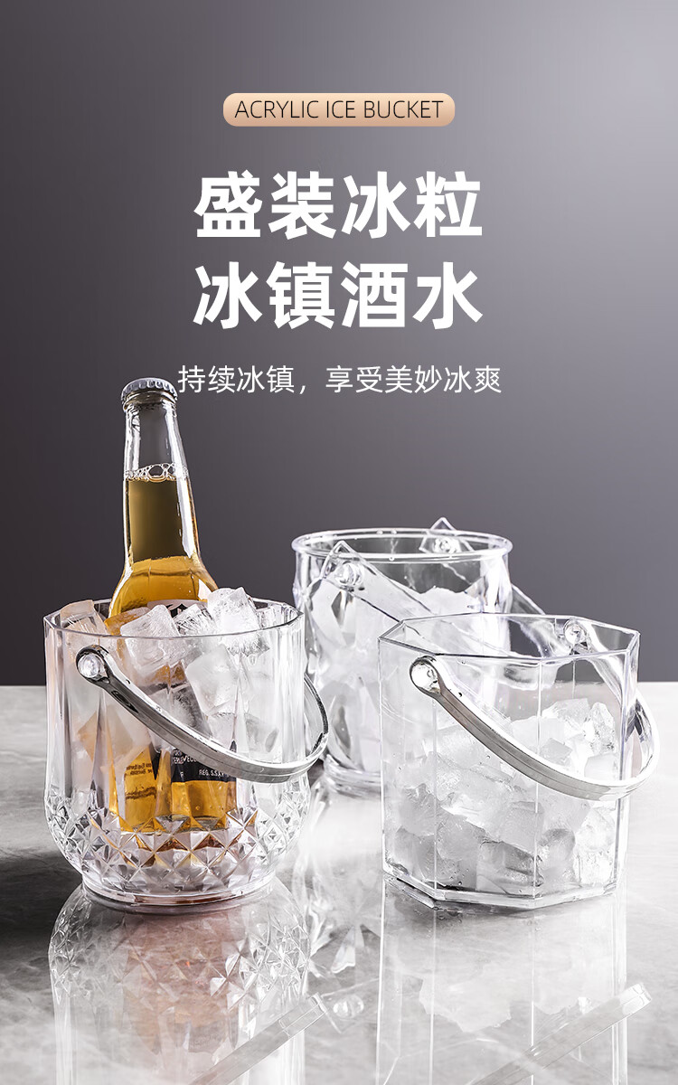 Yixinrong acrylic ice bucket high-value commercial champagne bucket plastic home bar ktv small ice bucket ice bucket ice bucket + ice clip