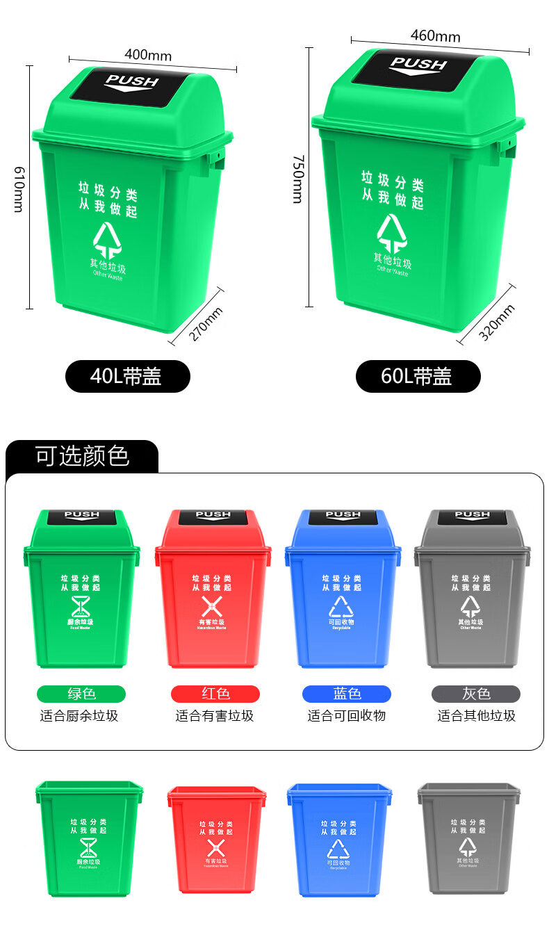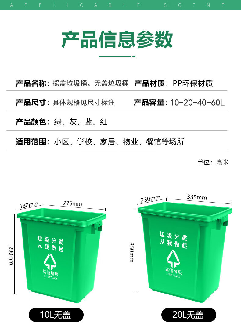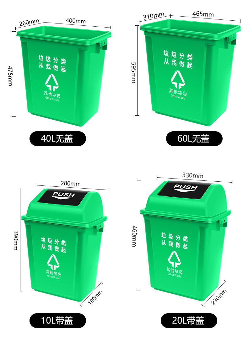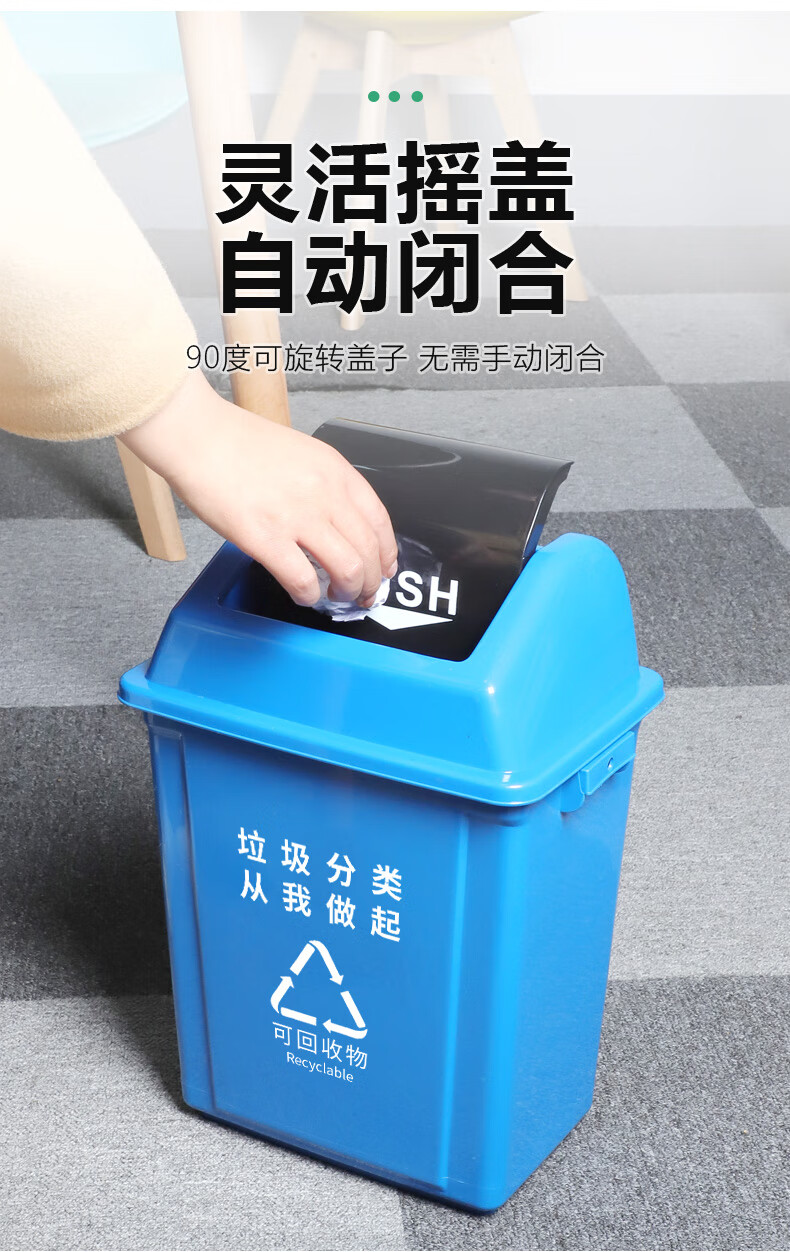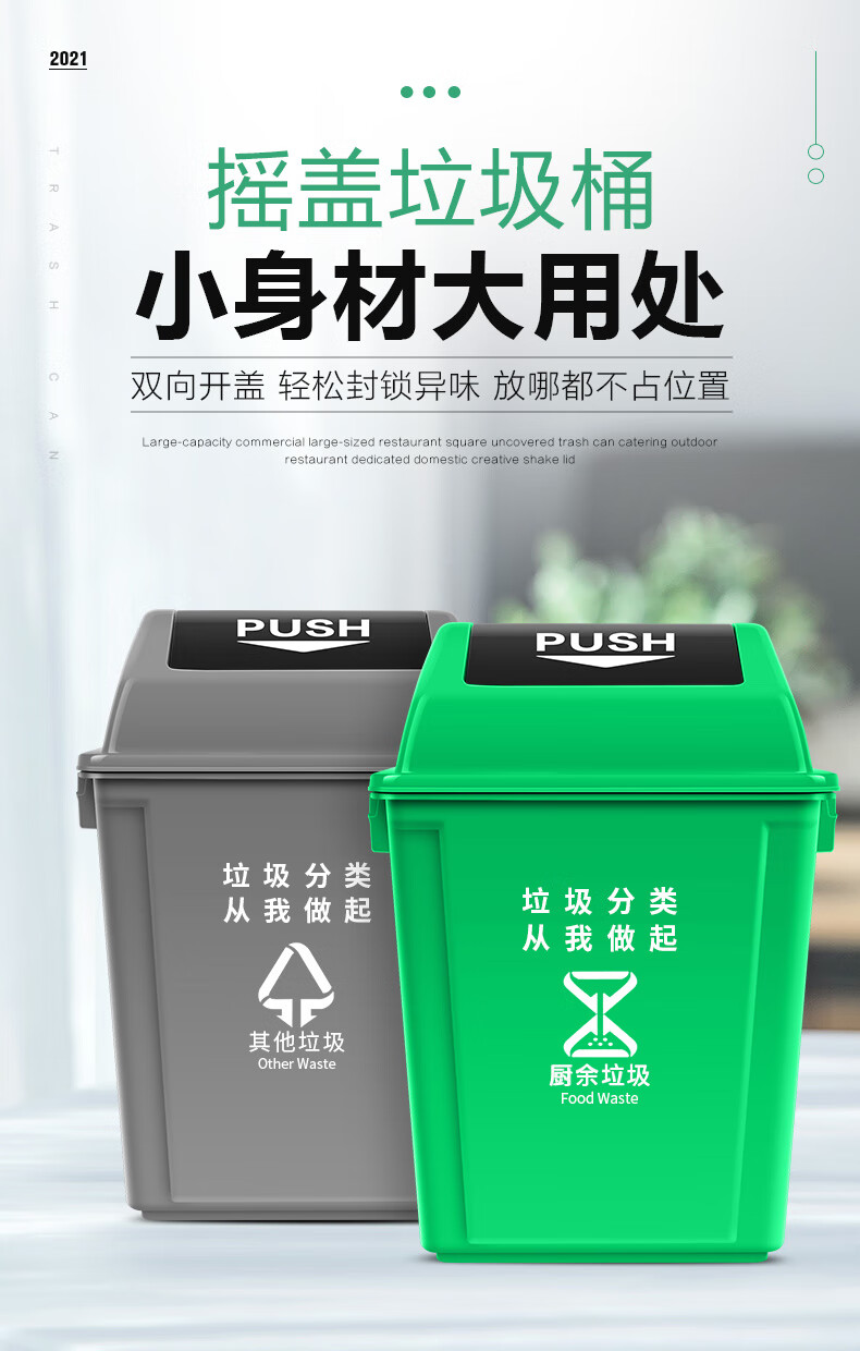 Senser large large capacity trash can with lid commercial property hotel community school office building universal trash can black without lid (little man mark) 10 liters