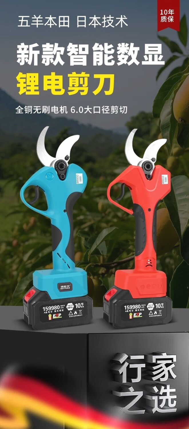 Wuyang Honda electric pruning scissors for fruit trees lithium battery rechargeable gardening garden pruning radio shears thick branch shears 6.0 imported top version 2 electric + 3 blades