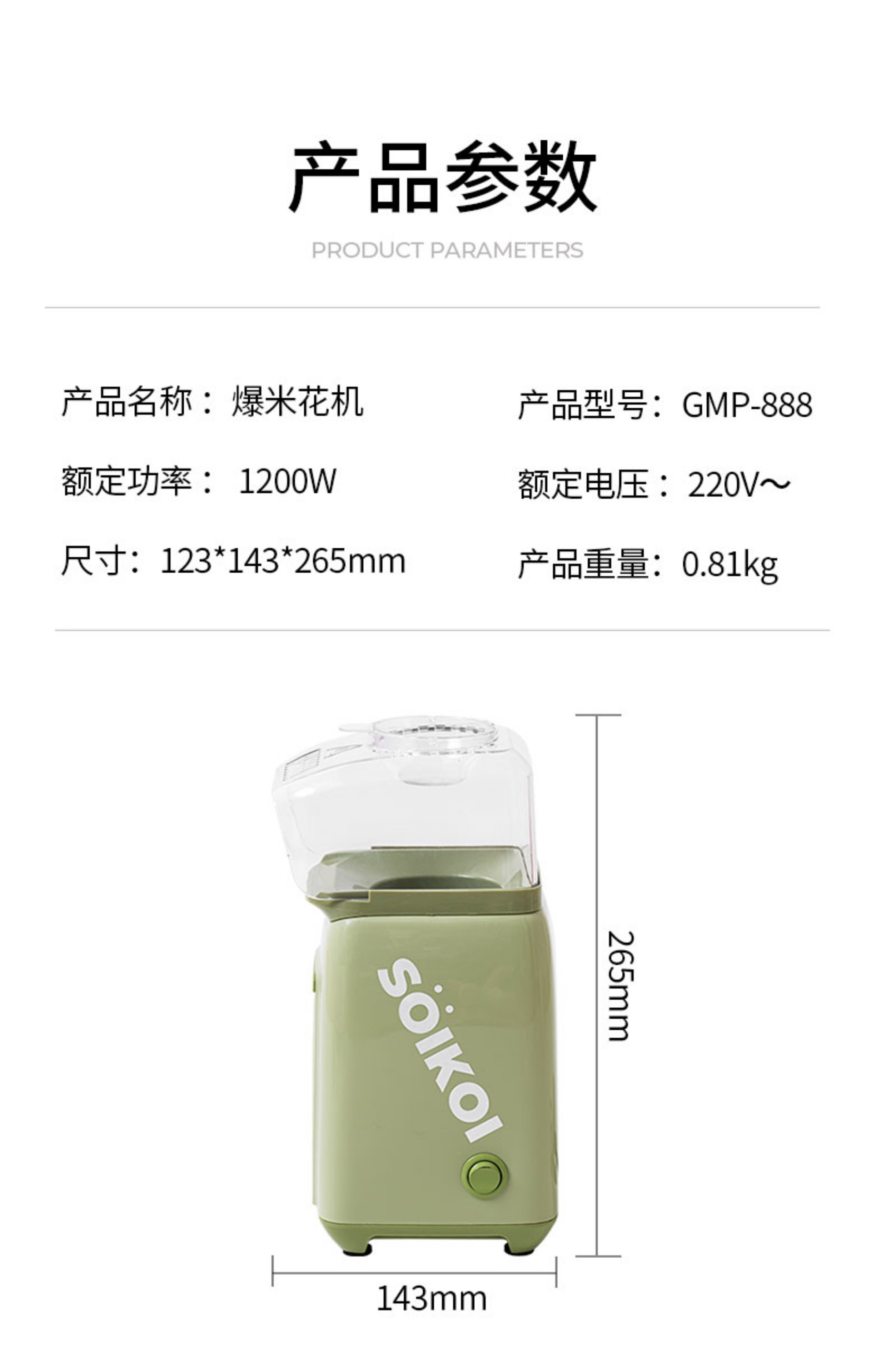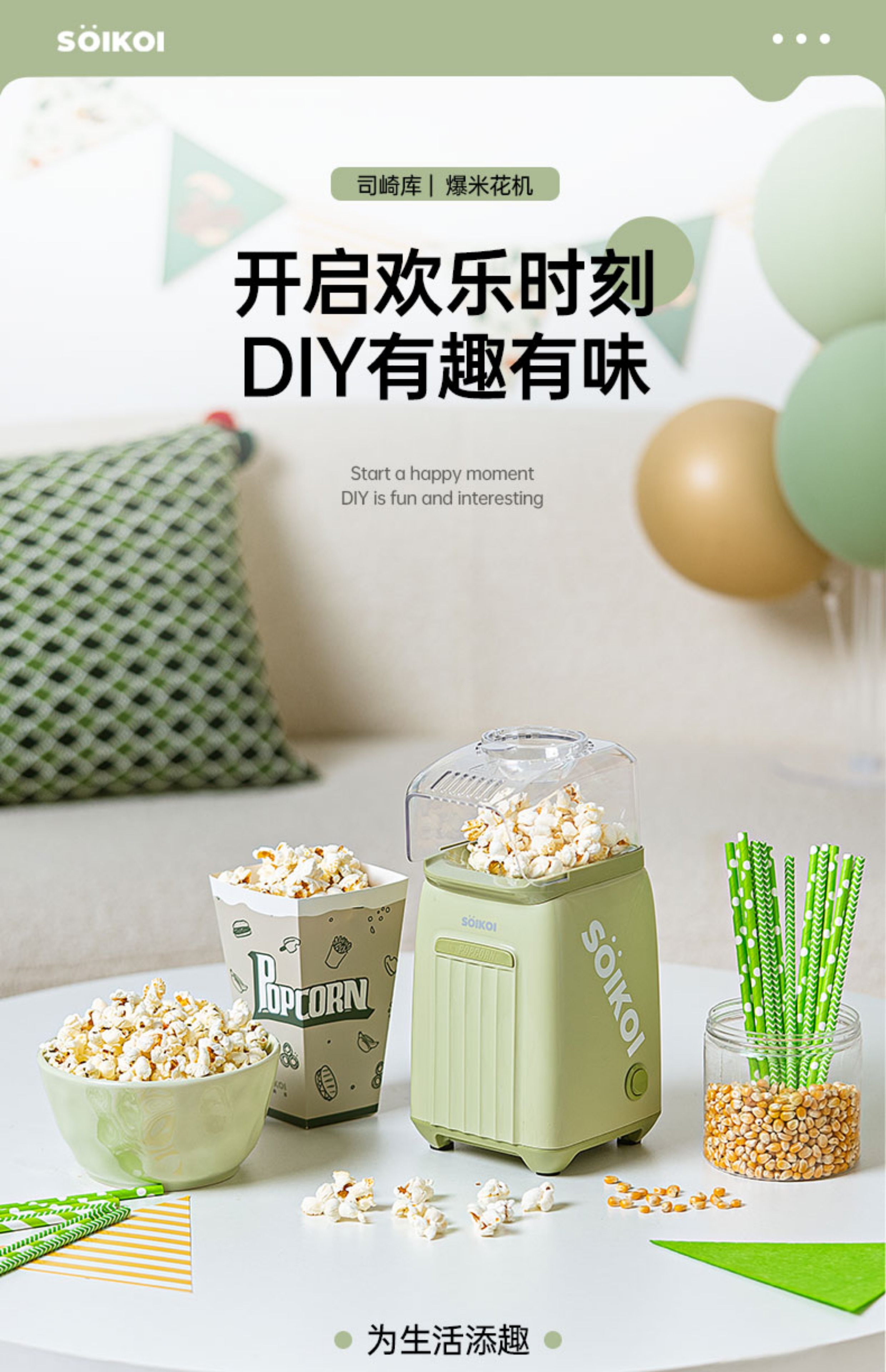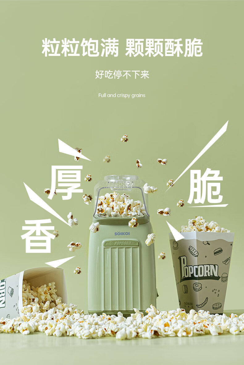 SoiKoi Siqiko popcorn machine children's home small fully automatic mini special corn popcorn machine avocado green