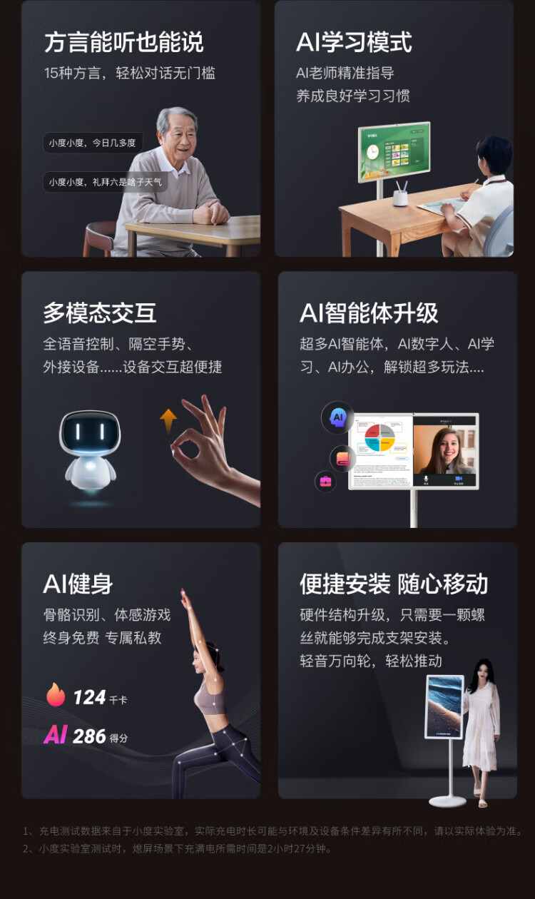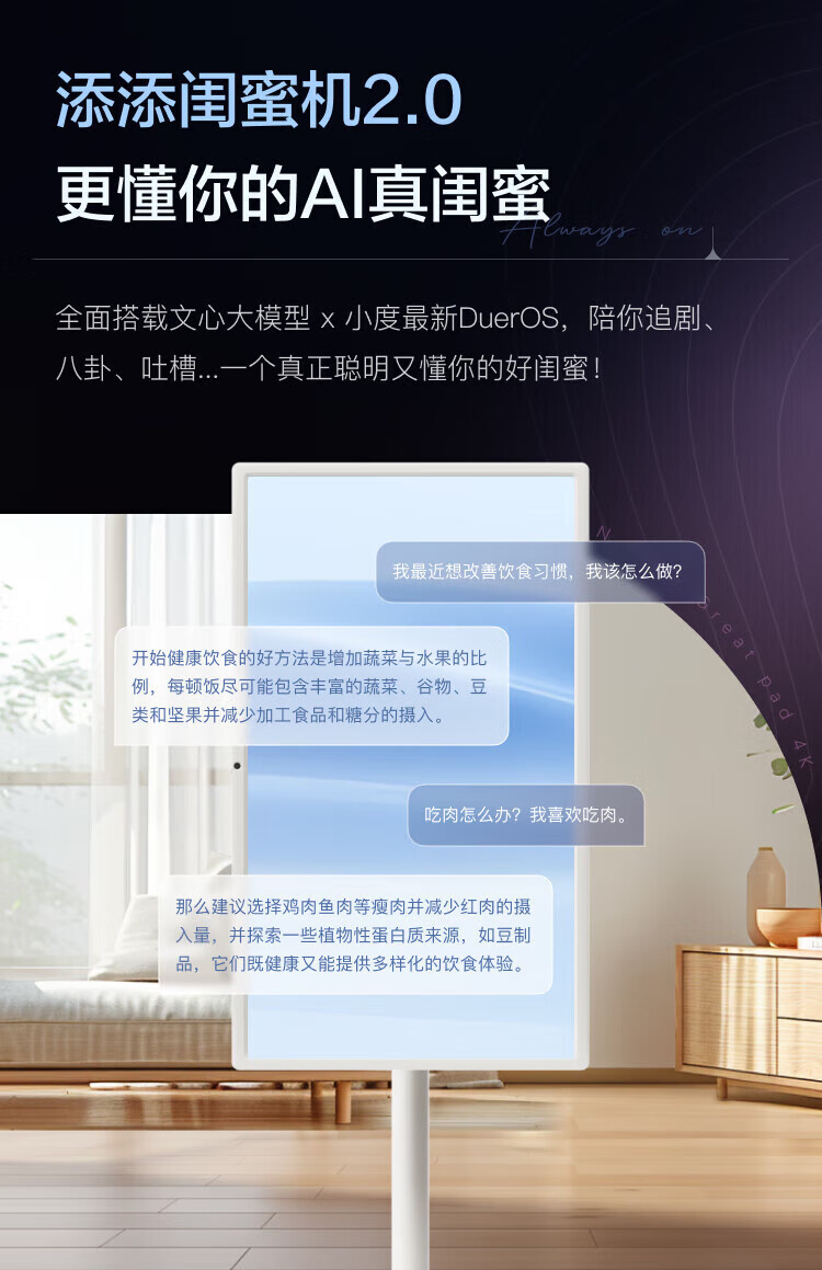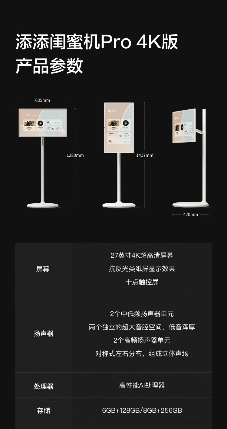 Xiaodu Tiantian Best Friend Phone Pro 4K Version Mobile Xpress Screen Smart Flat-panel TV 27-inch Large Screen Touch Monitor New Year Gift TV Drama and Fitness Karaoke Best Friend Phone Pro 4K8+256G