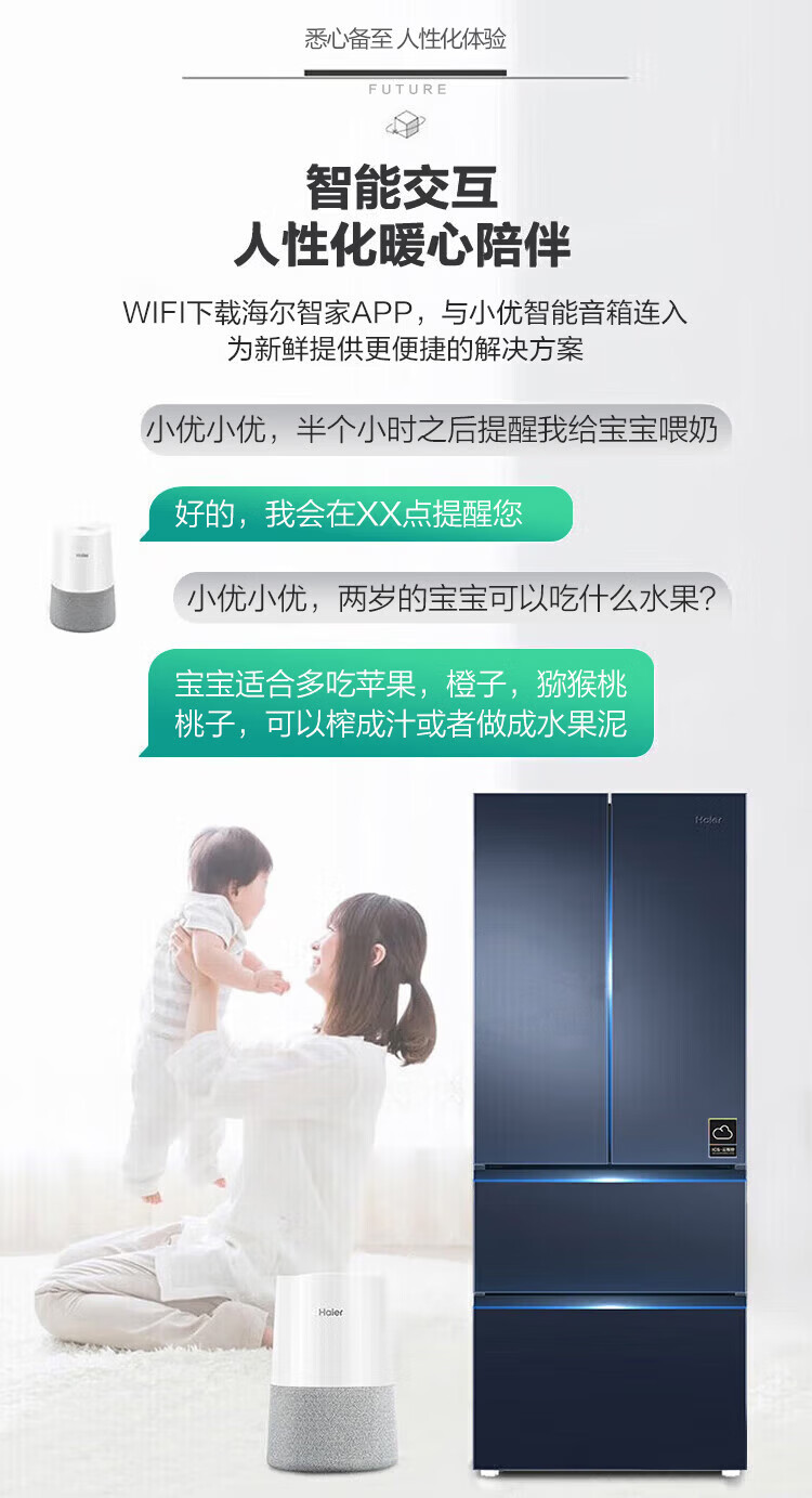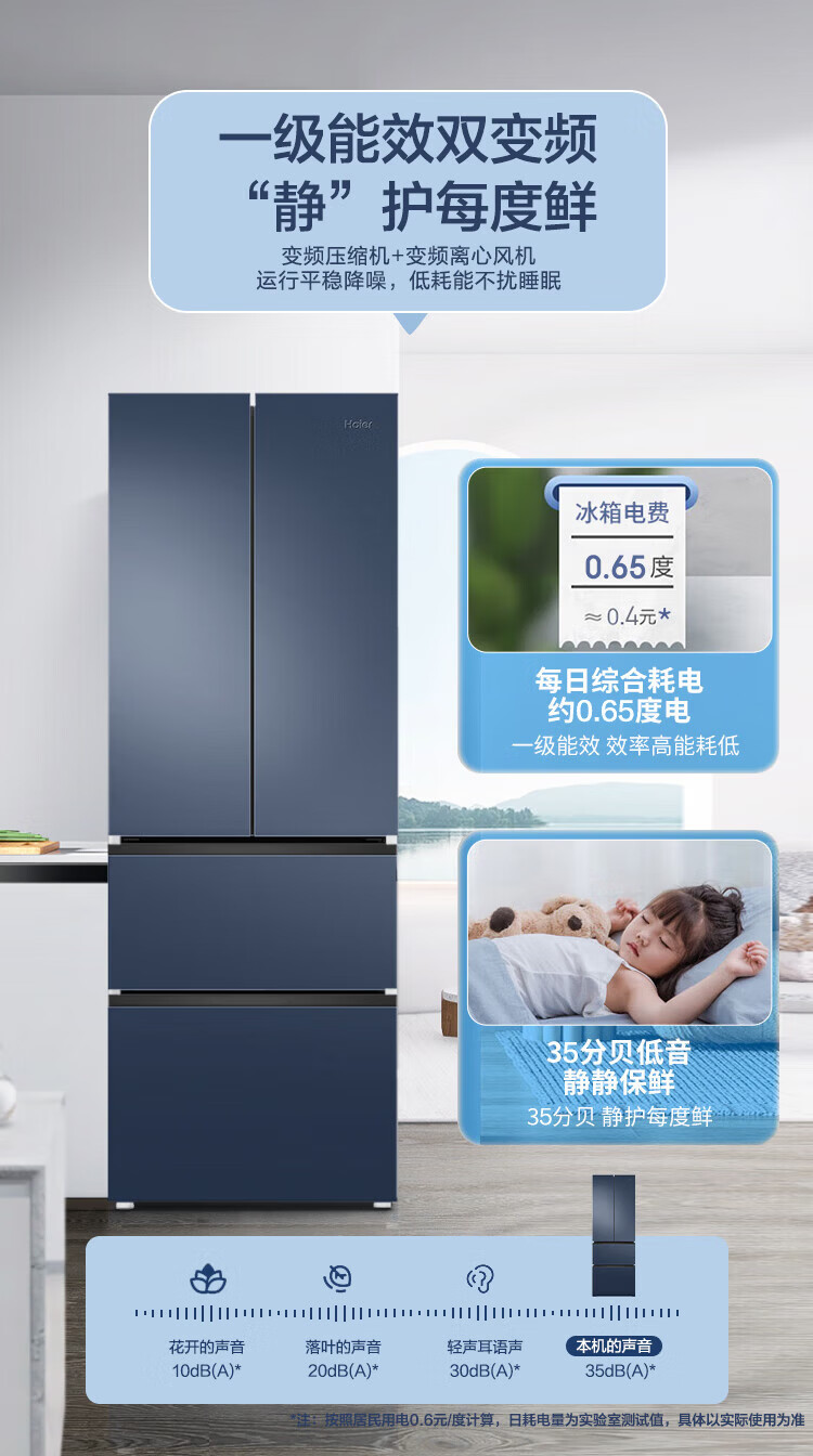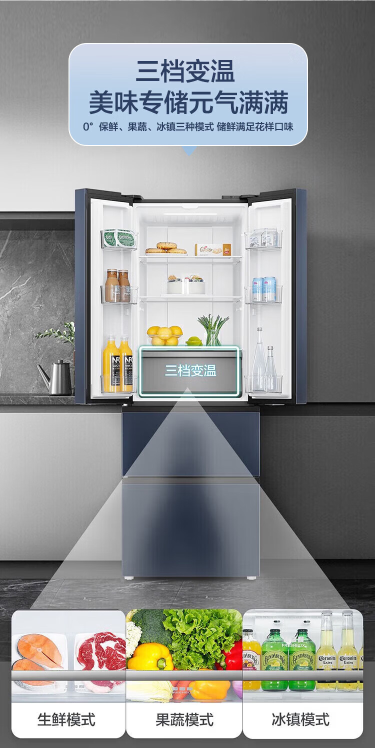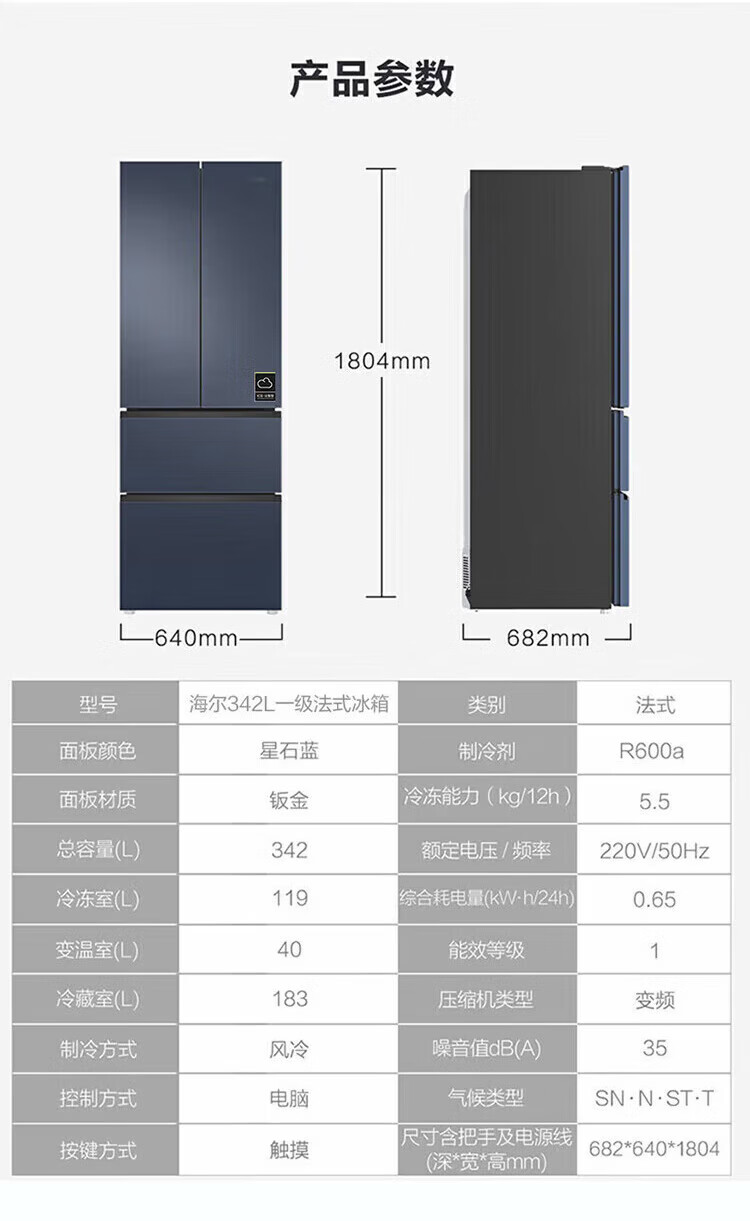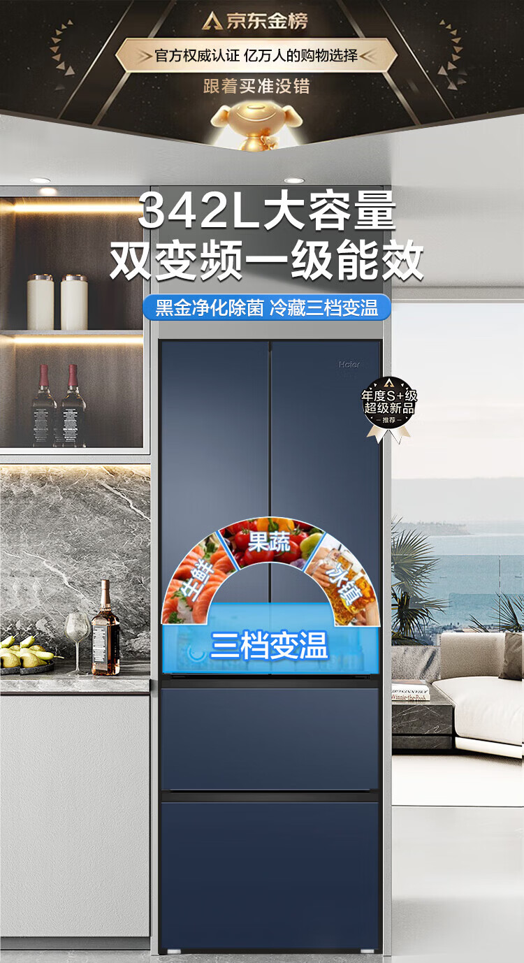 Haier refrigerator 342 liters French multi-door four-door first-class energy efficiency dual frequency conversion air-cooled frost-free black gold purification, sterilization, odor-free silent household refrigerator national subsidy 15% 342 liters + first-class energy efficiency + black gold purification
