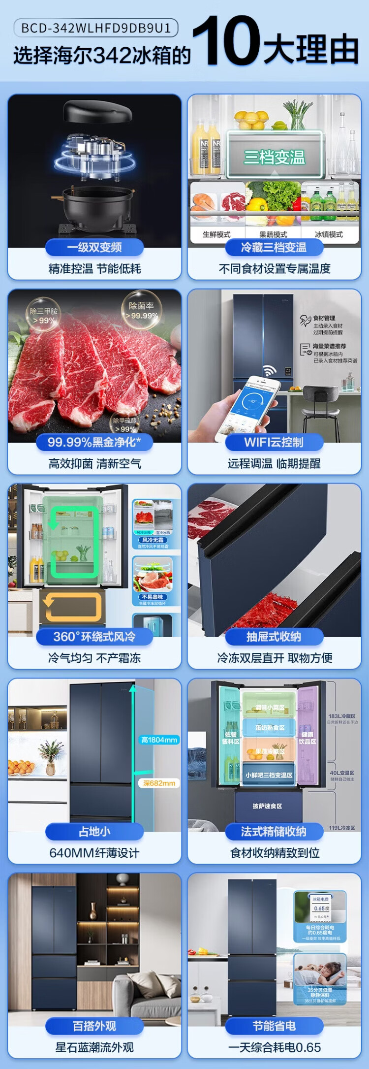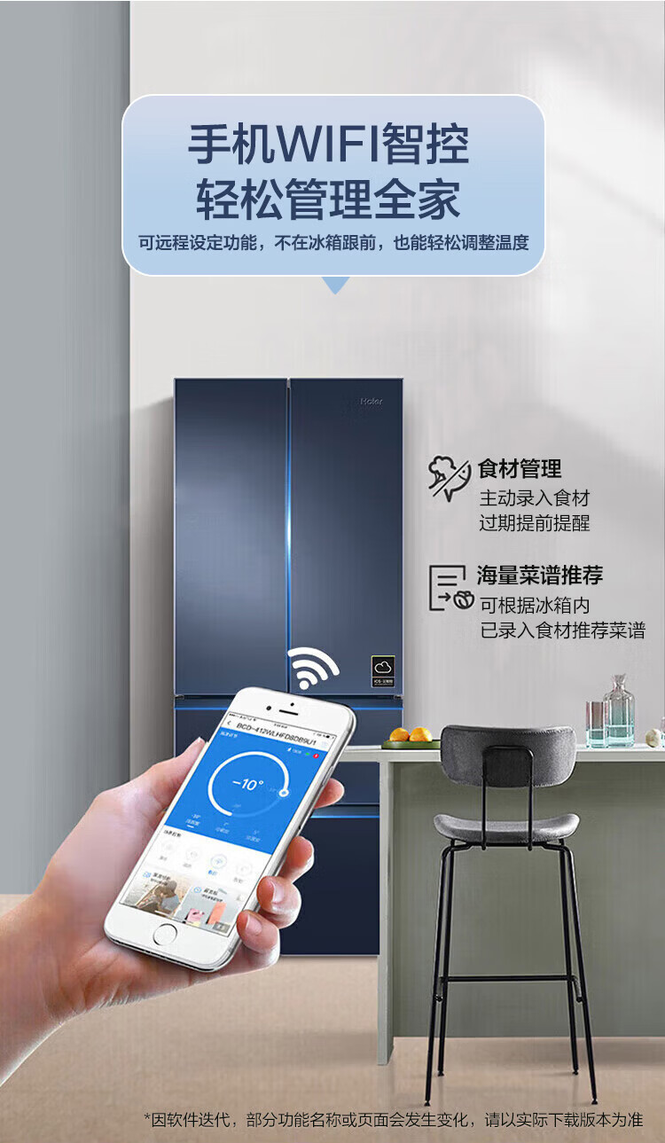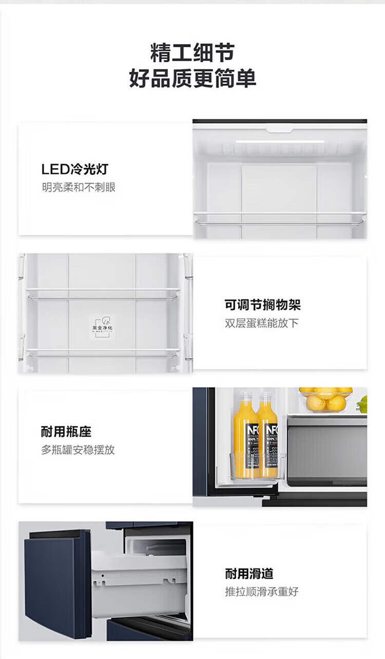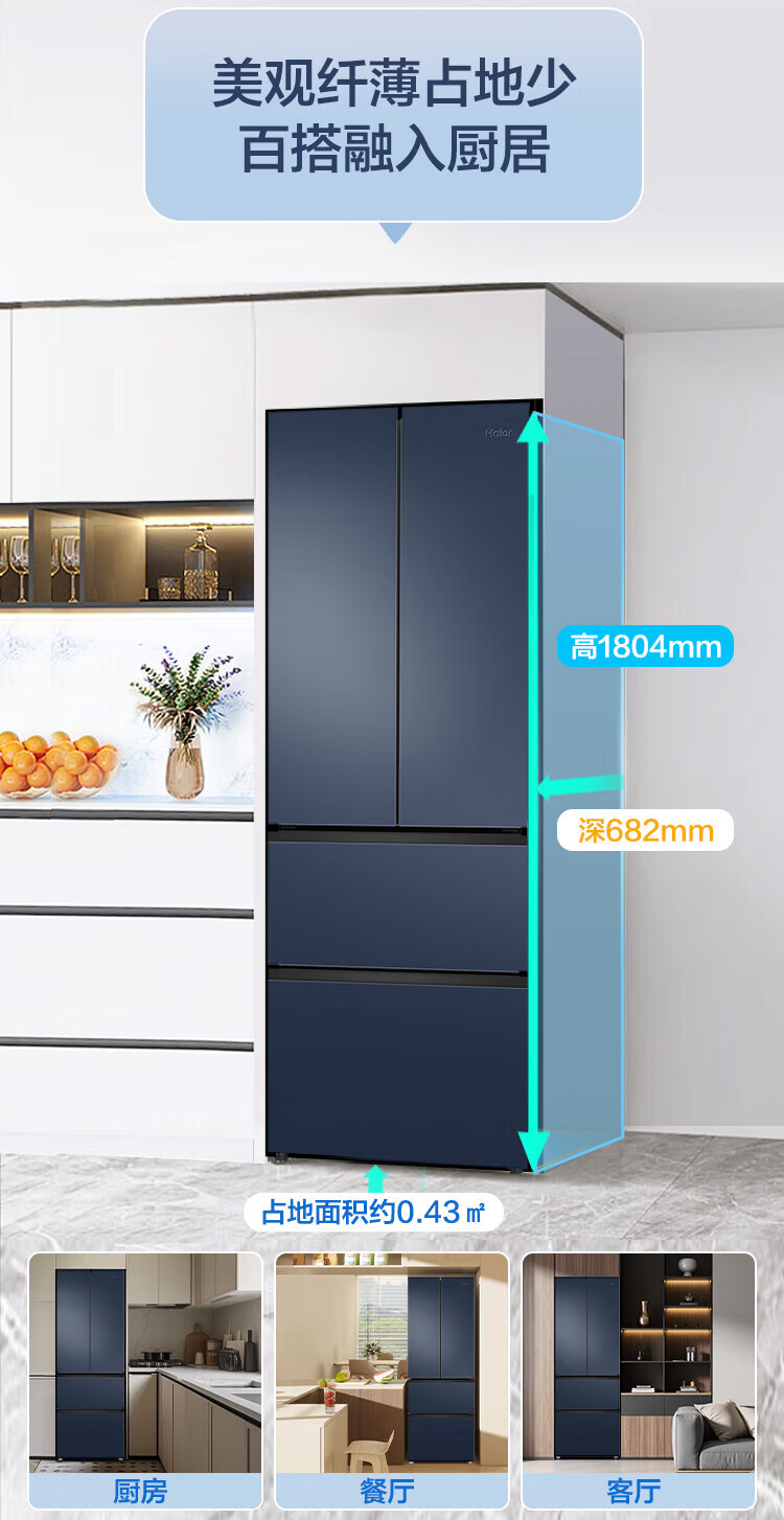 Haier refrigerator 342 liters French multi-door four-door first-class energy efficiency dual frequency conversion air-cooled frost-free black gold purification, sterilization, odor-free silent household refrigerator national subsidy 15% 342 liters + first-class energy efficiency + black gold purification