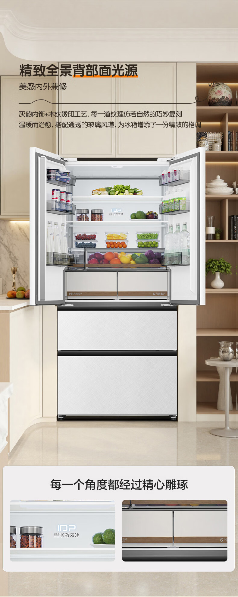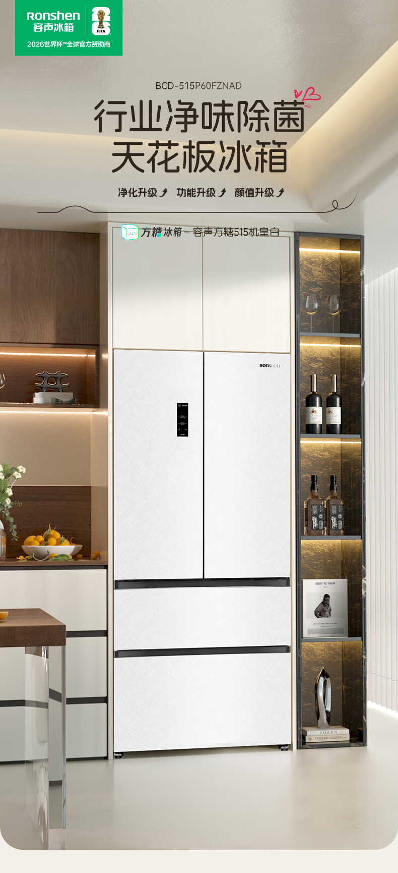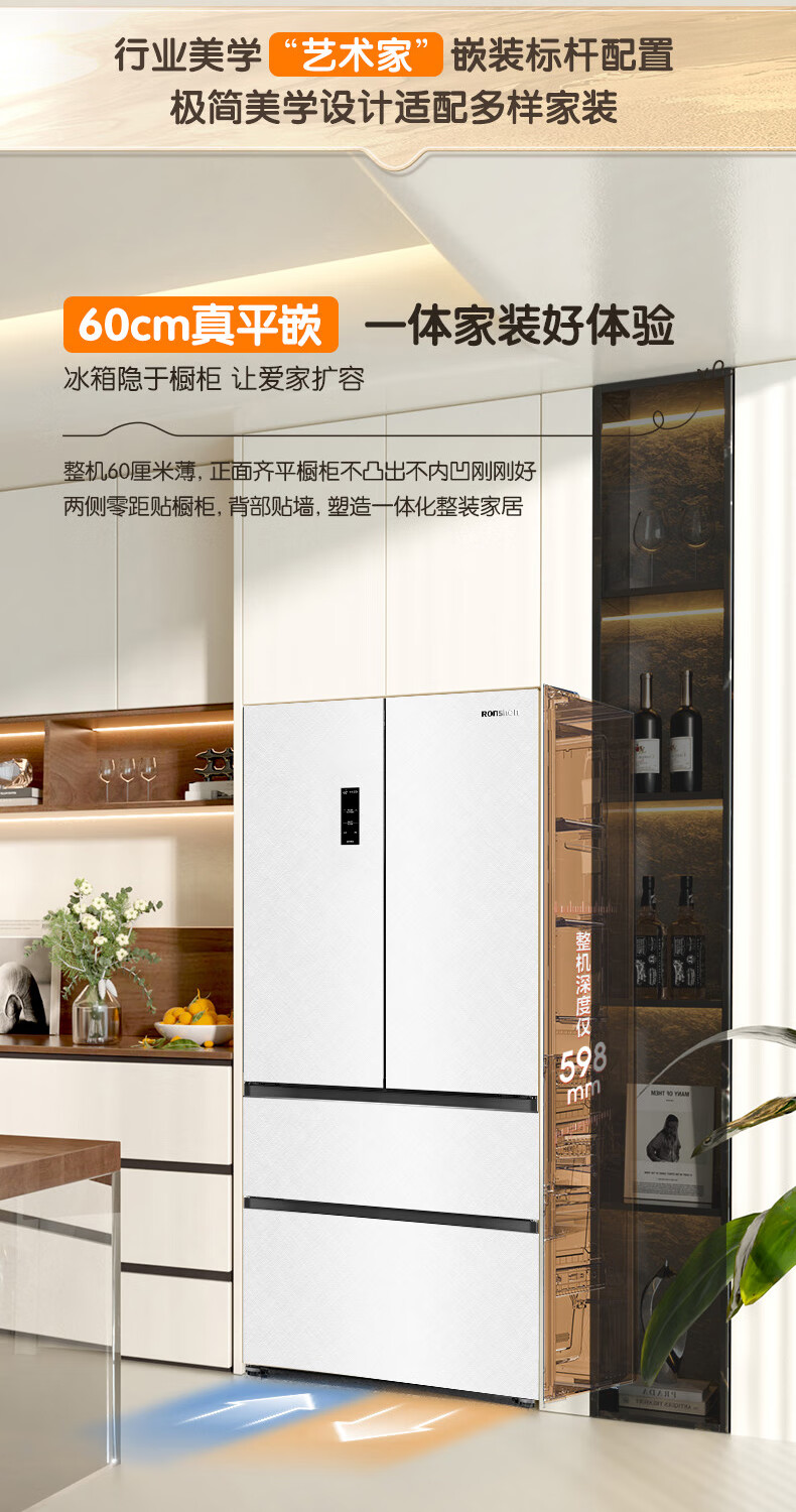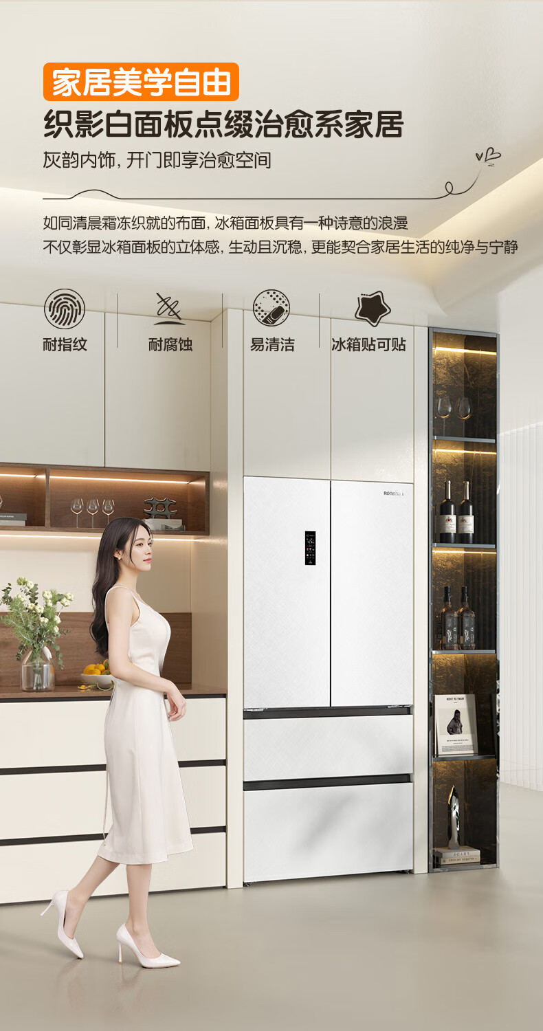 Rongsheng Cube Sugar 515 double system French multi-door four-door ultra-thin zero-embedded refrigerator home automatic ice making first-class energy efficiency national subsidy World Cup BCD-515P60FZNAD Weaver White