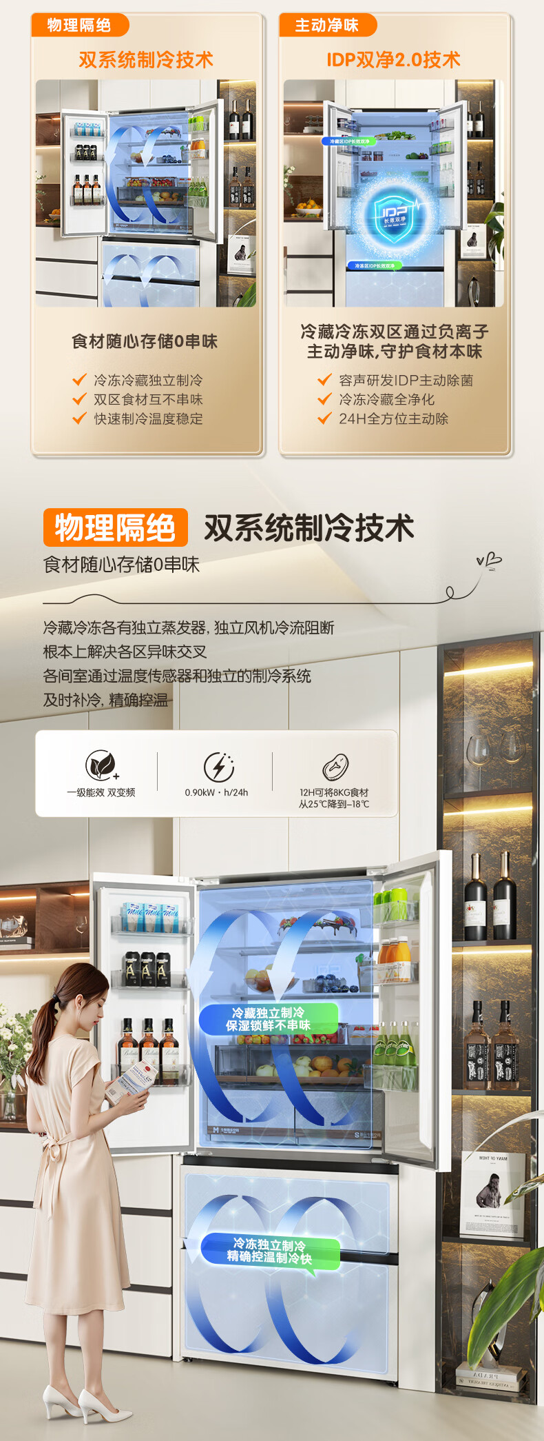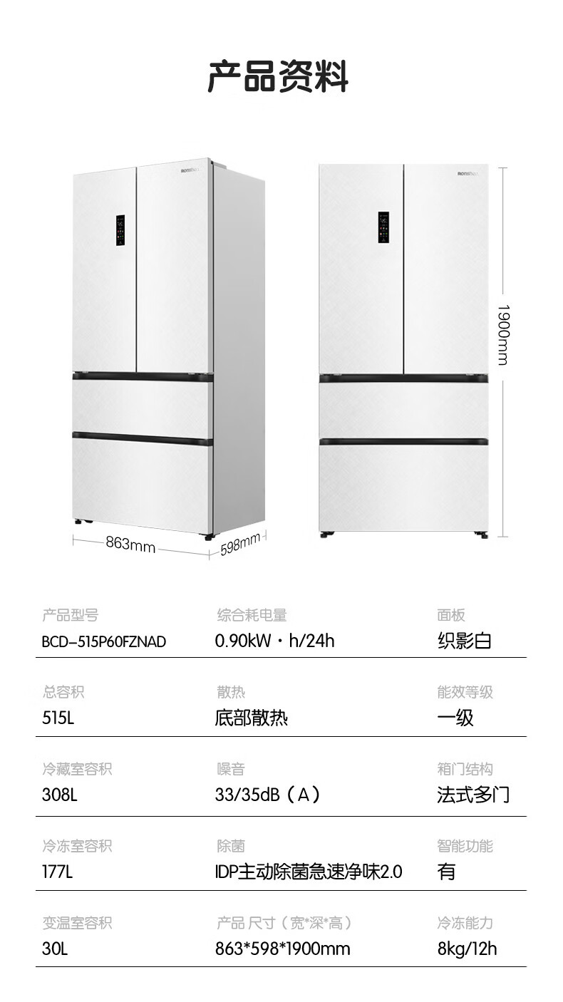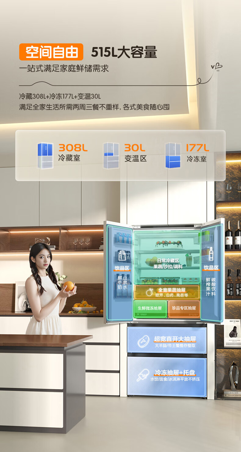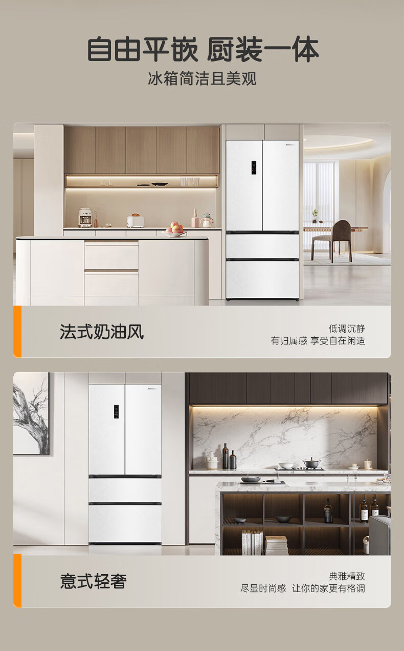 Rongsheng Cube Sugar 515 double system French multi-door four-door ultra-thin zero-embedded refrigerator home automatic ice making first-class energy efficiency national subsidy World Cup BCD-515P60FZNAD Weaver White