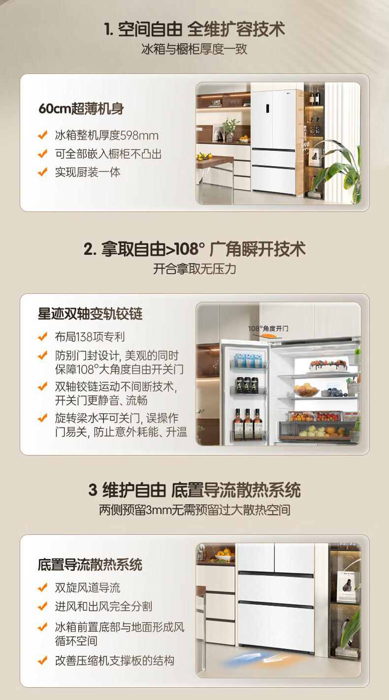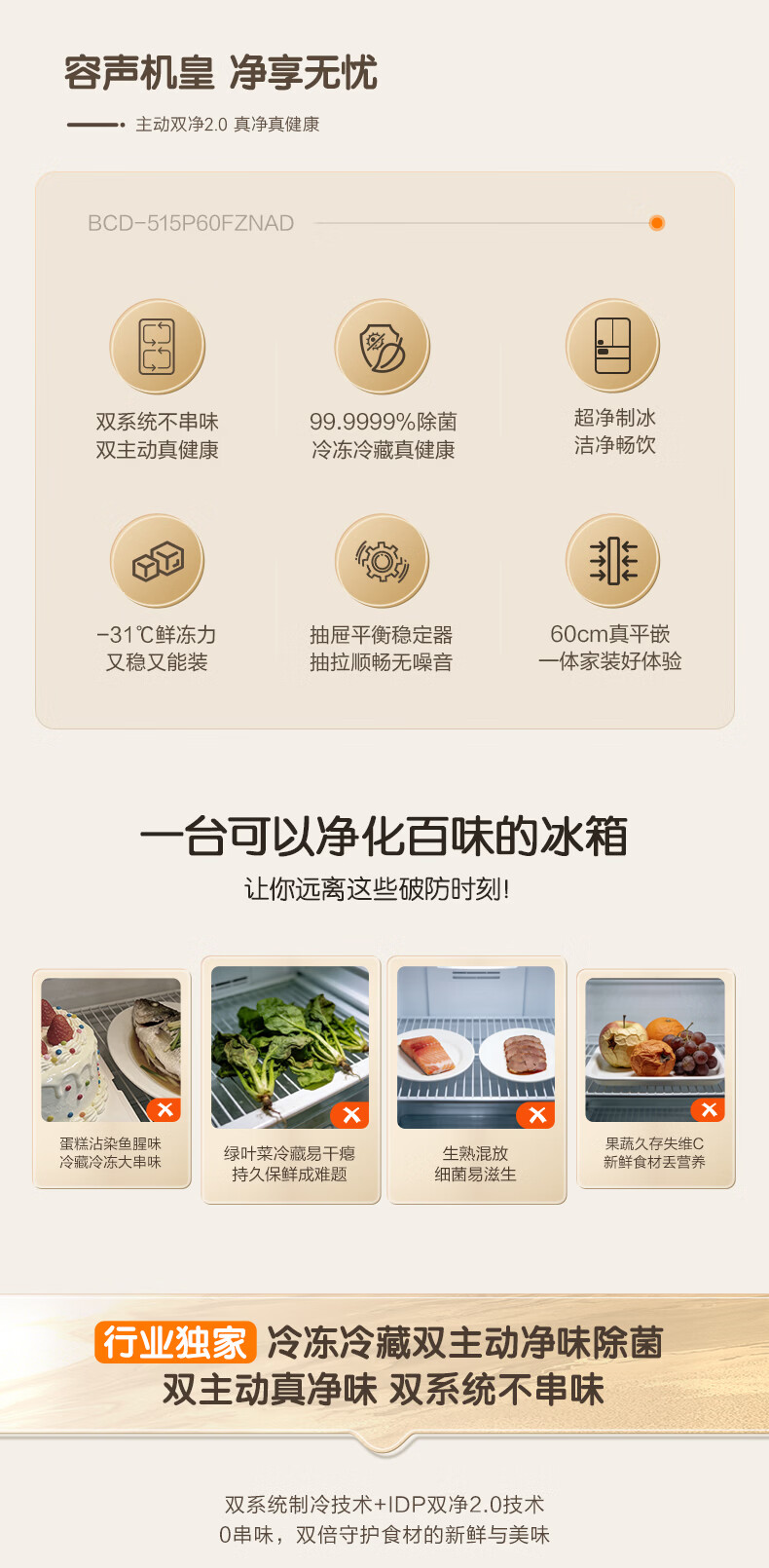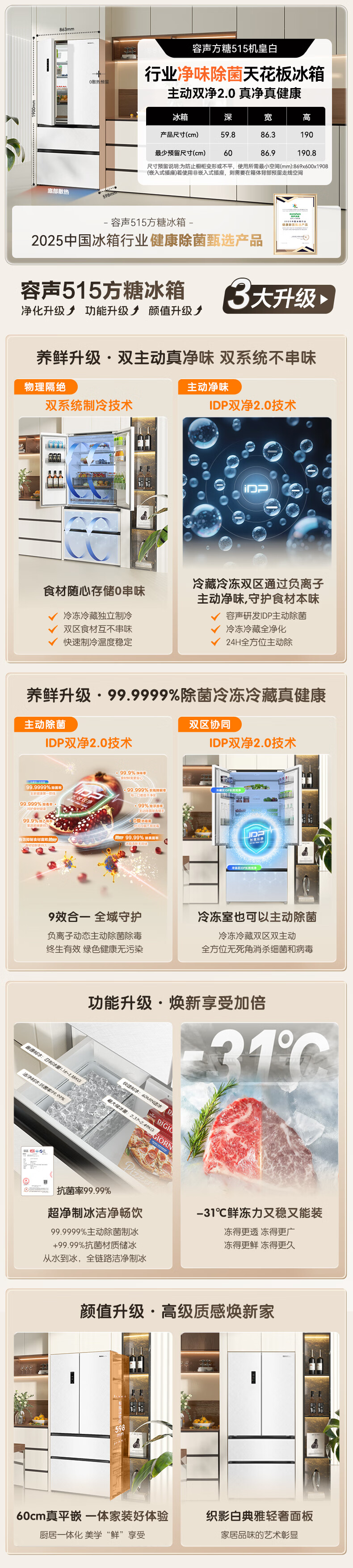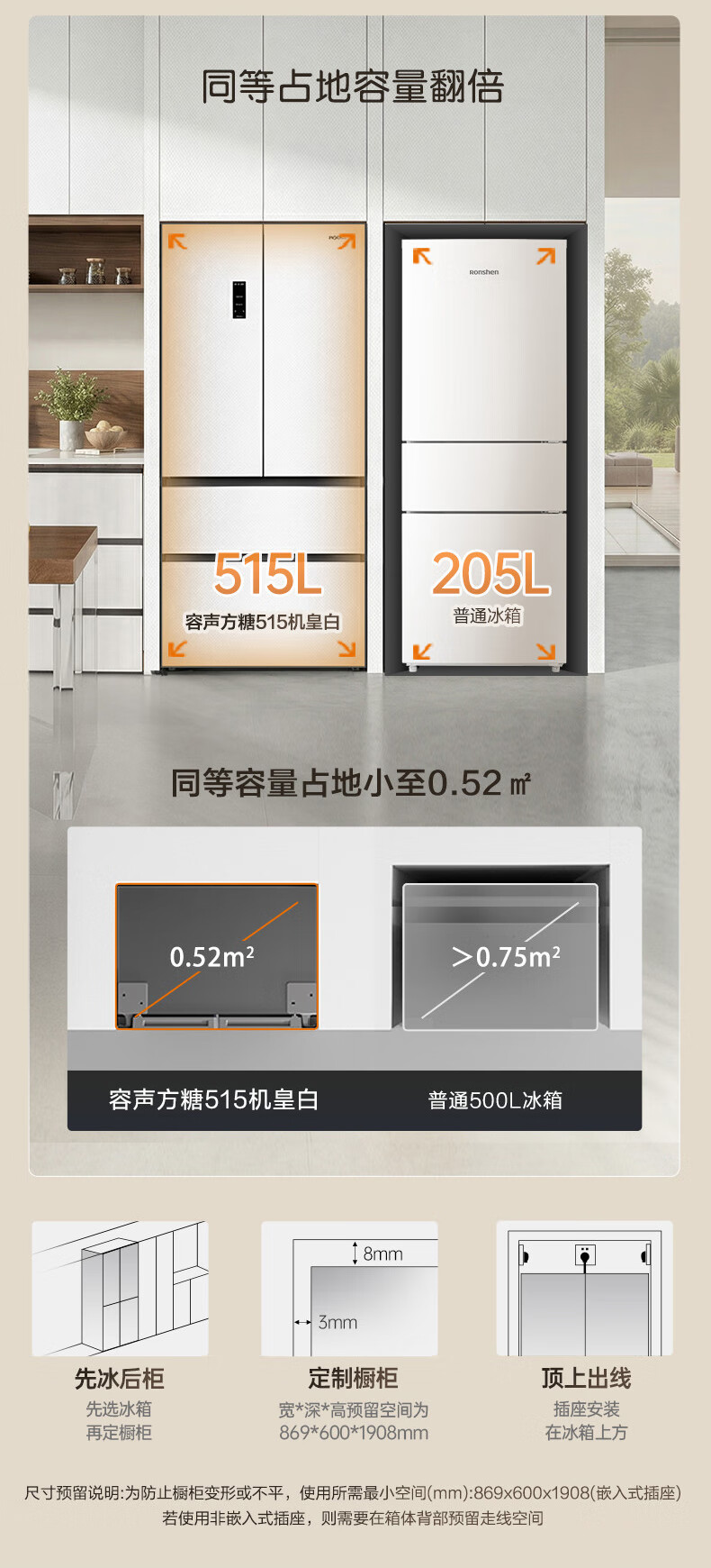 Rongsheng Cube Sugar 515 double system French multi-door four-door ultra-thin zero-embedded refrigerator home automatic ice making first-class energy efficiency national subsidy World Cup BCD-515P60FZNAD Weaver White