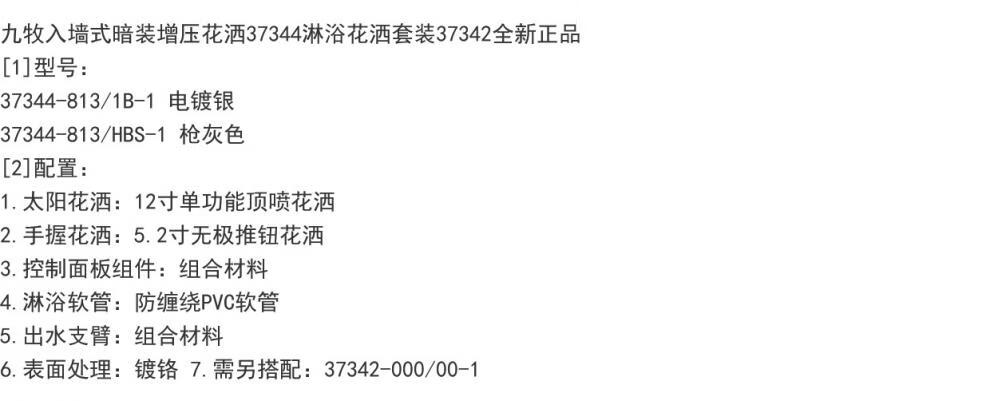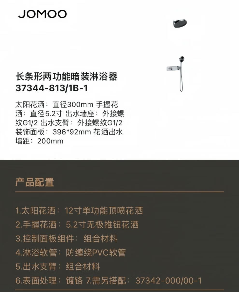 JOMOO offline model 37344 long strip in-wall concealed pressurized constant temperature two-function shower shower gun gray set 37344 gun gray + embedded box