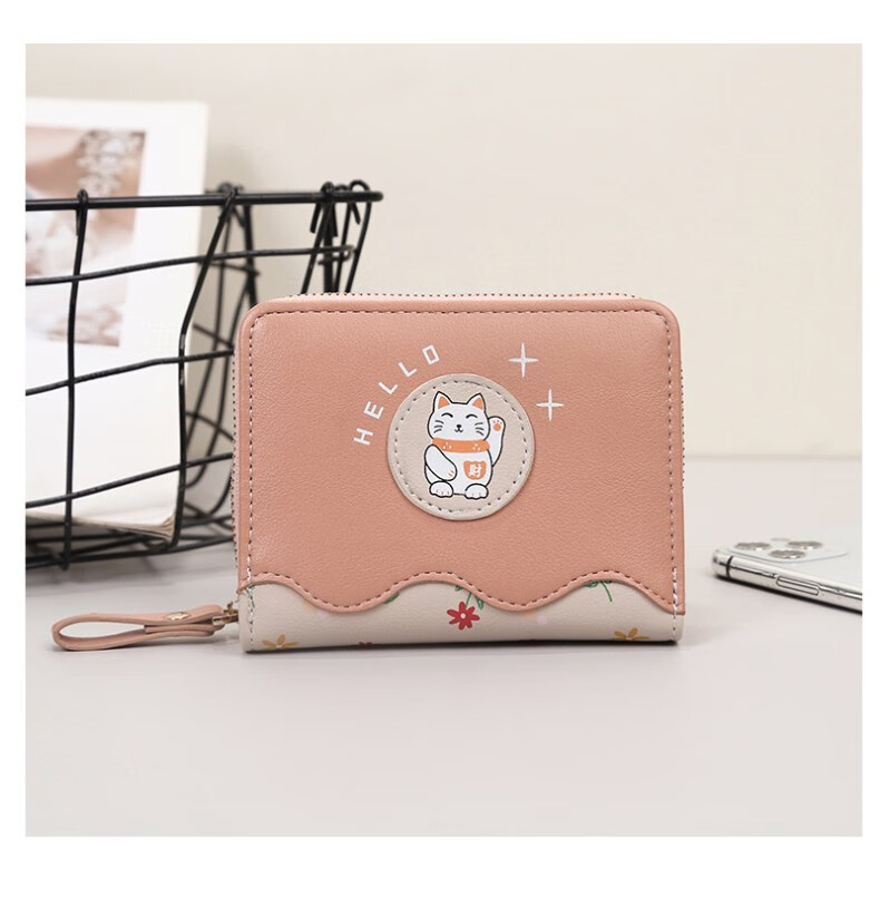 Woodpecker (TUCANO) Light Luxury 2025 New Small Wallet Women's Short Style Small and Cute Two-fold Coin Purse Japanese Contrast Color Cartoon Student Pink