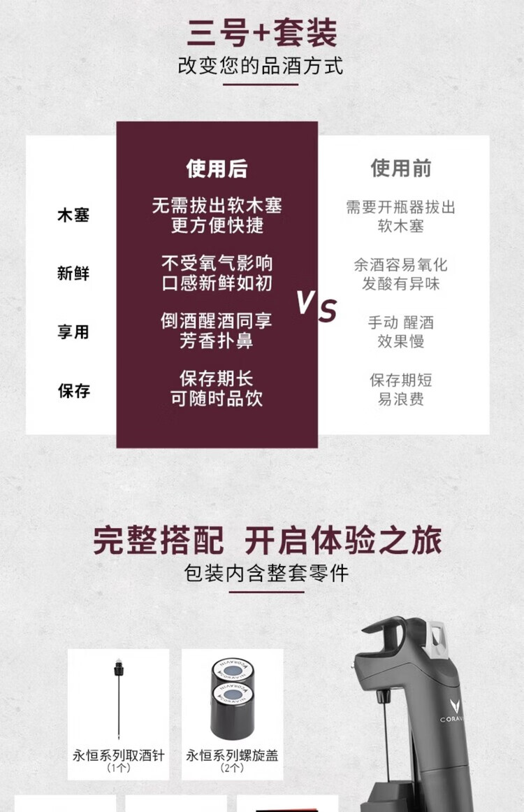 CORAVIN Coravin Red Wine Wine Dispenser Vacuum Bottle Opener Wine Stealing Artifact No. 3 Decanter Set Black
