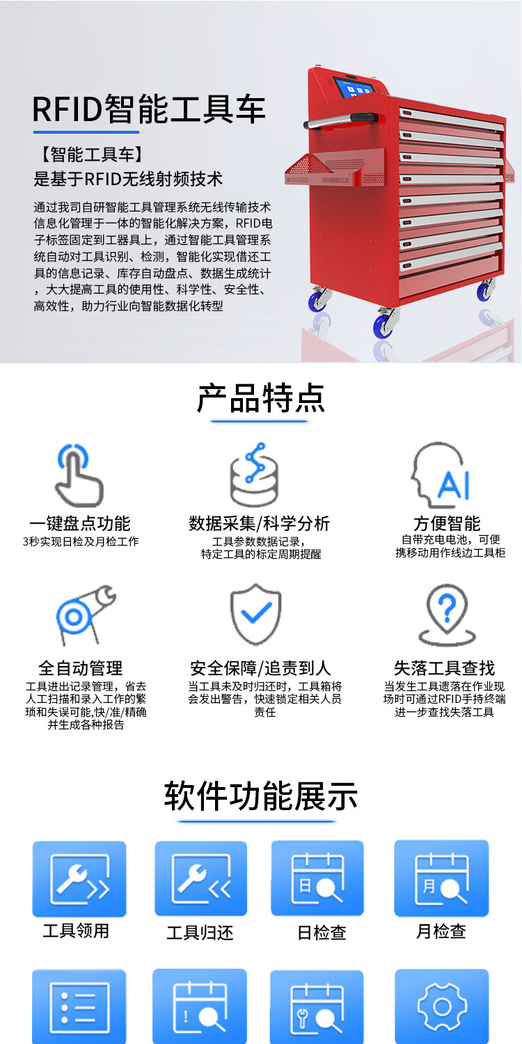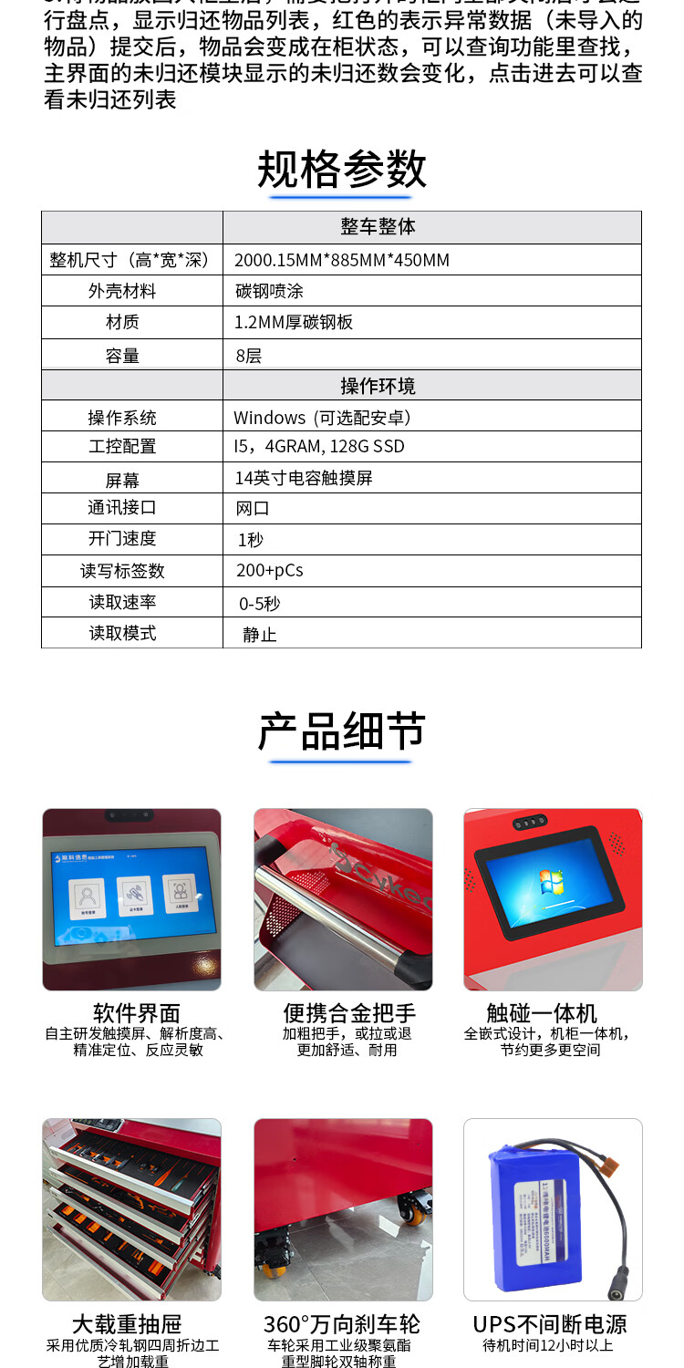 Cykeo Safety Tool Cart Intelligent UHF Intelligent Identification Tool Cart Tool Box Cart Self-service Access Borrowing and Return Inventory Automatic Tool Cart Smart Tool Cart