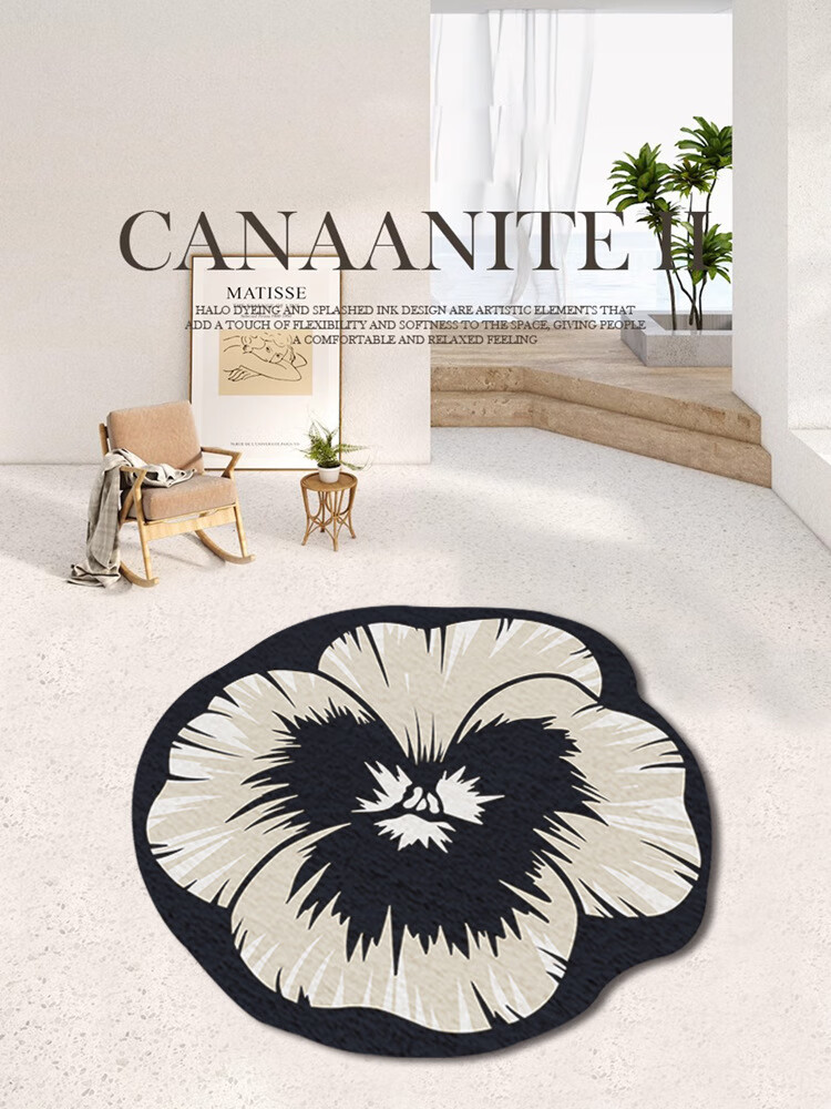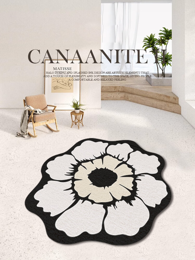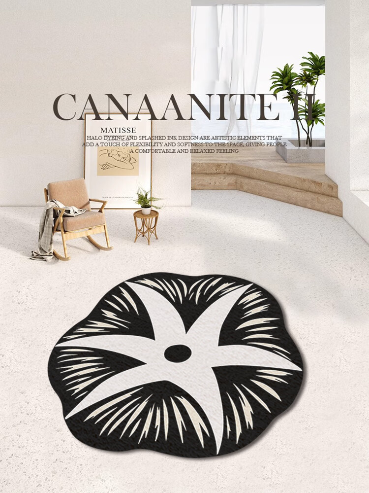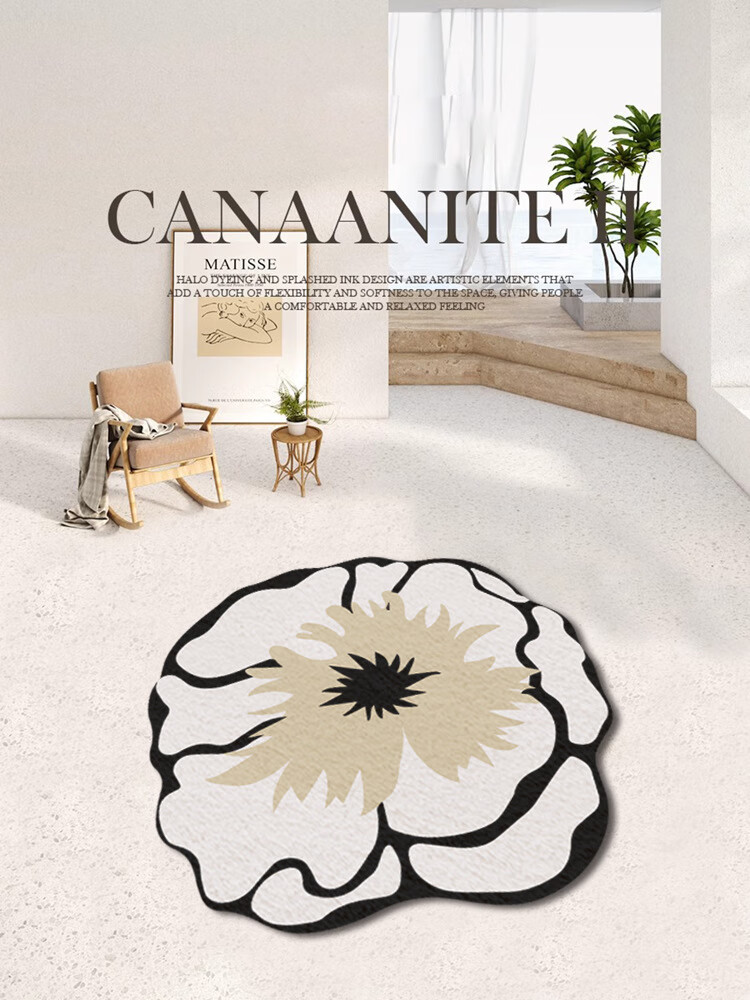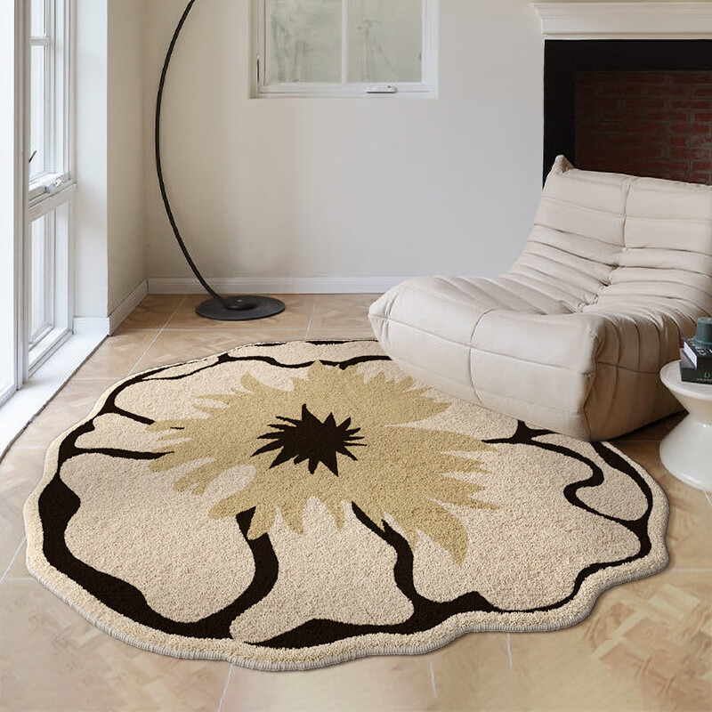 Round American cream style home living room carpet bedroom light luxury style irregular plush coffee table blanket Chashi Leila diameter 80 cm upgraded bottom imitation cashmere