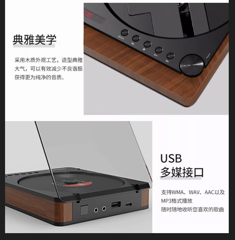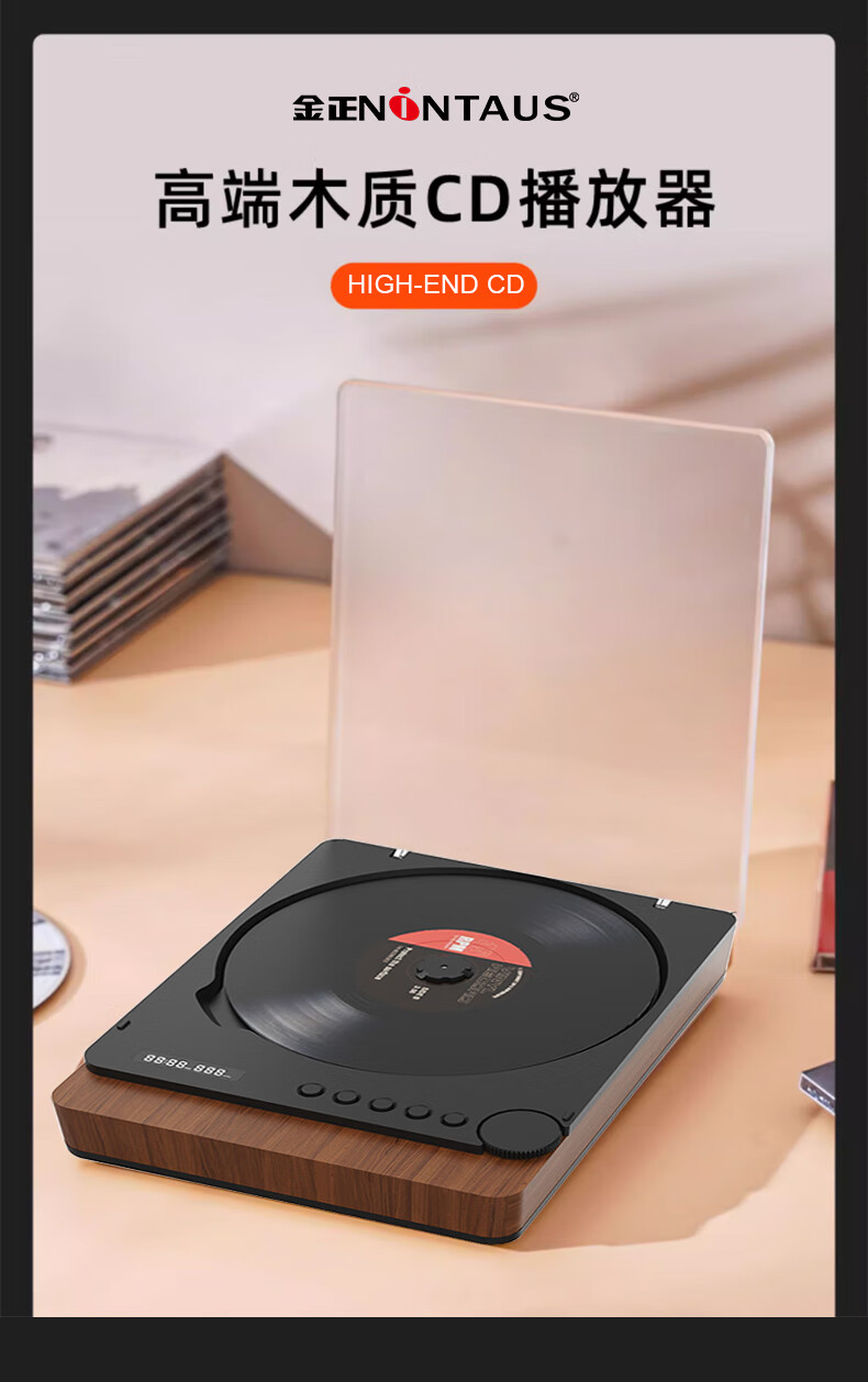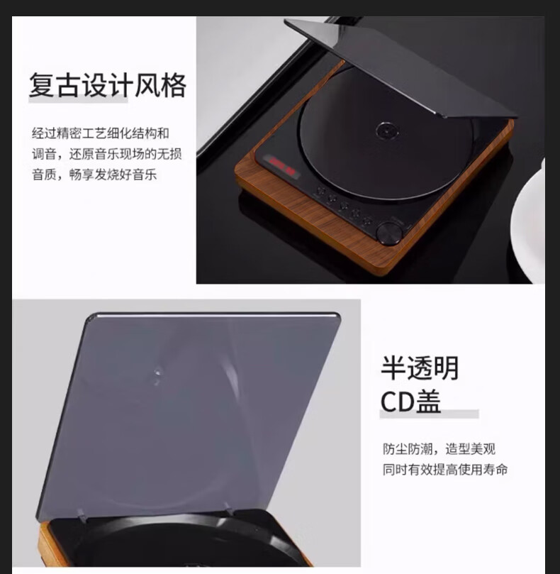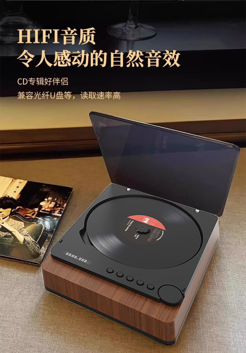 Jinzheng fever-grade CD player portable music album player nostalgic retro style fiber optic output non-distortion lossless sound retro vinyl CD birthday gift wood grain color CD player super compatible standard configuration