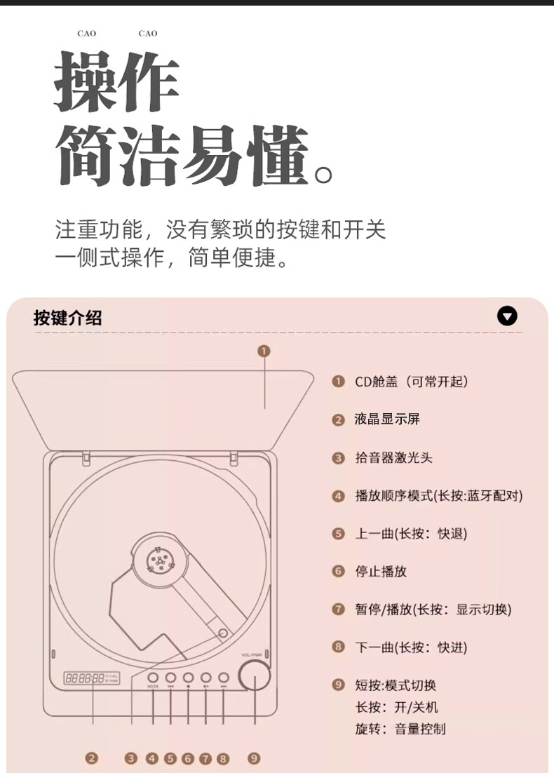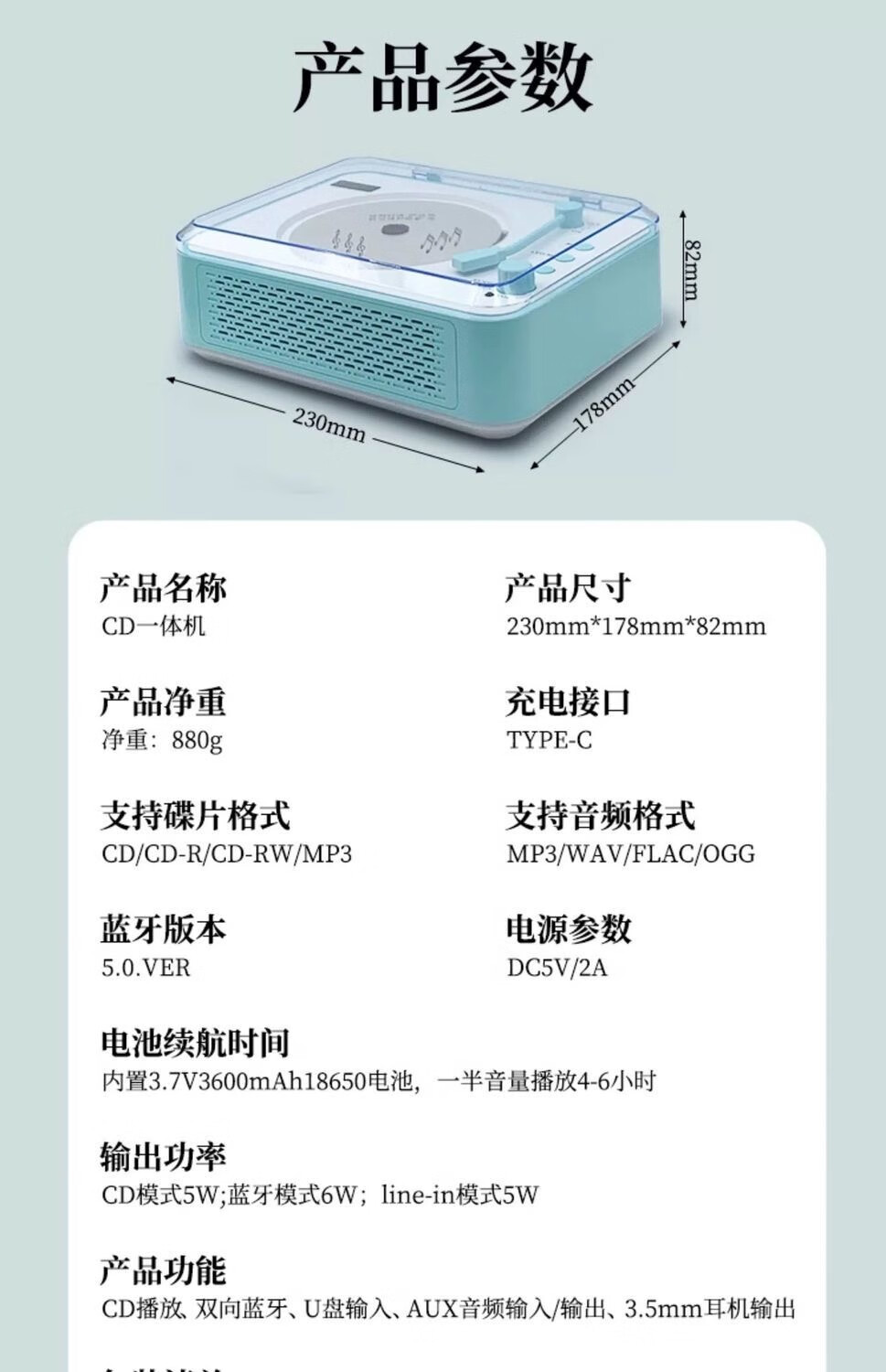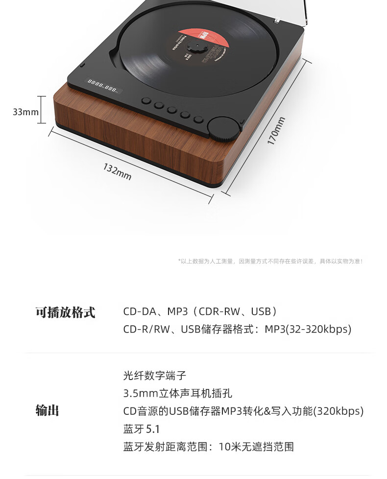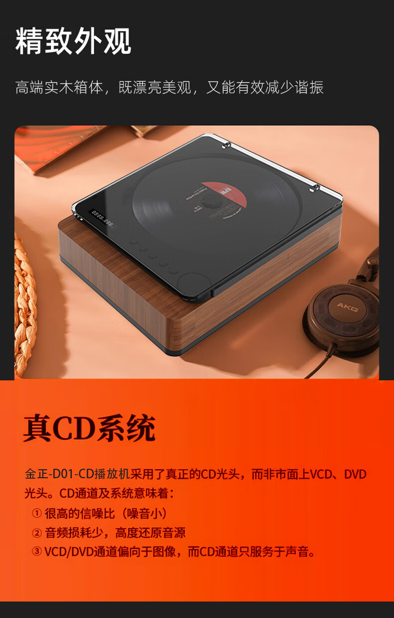 Jinzheng fever-grade CD player portable music album player nostalgic retro style fiber optic output non-distortion lossless sound retro vinyl CD birthday gift wood grain color CD player super compatible standard configuration