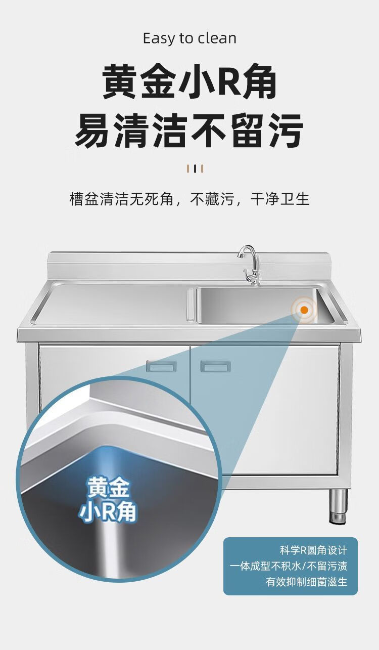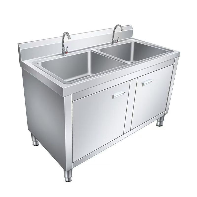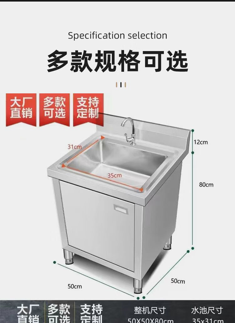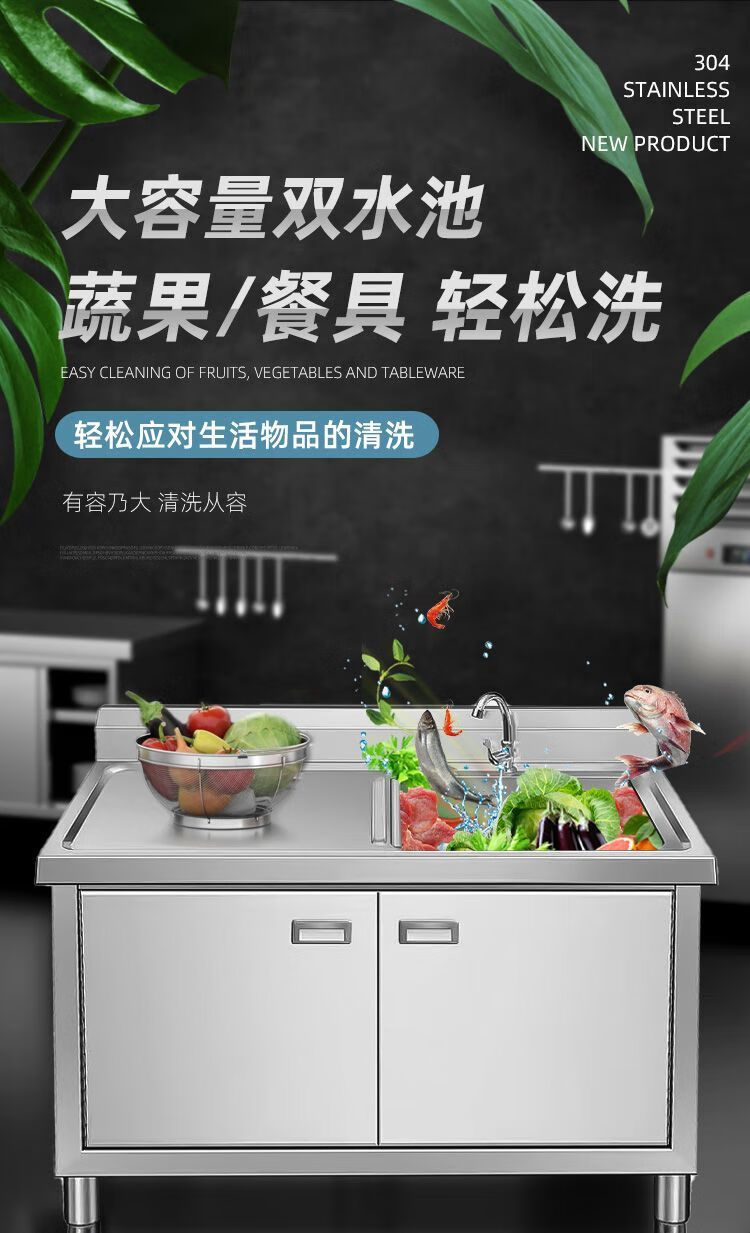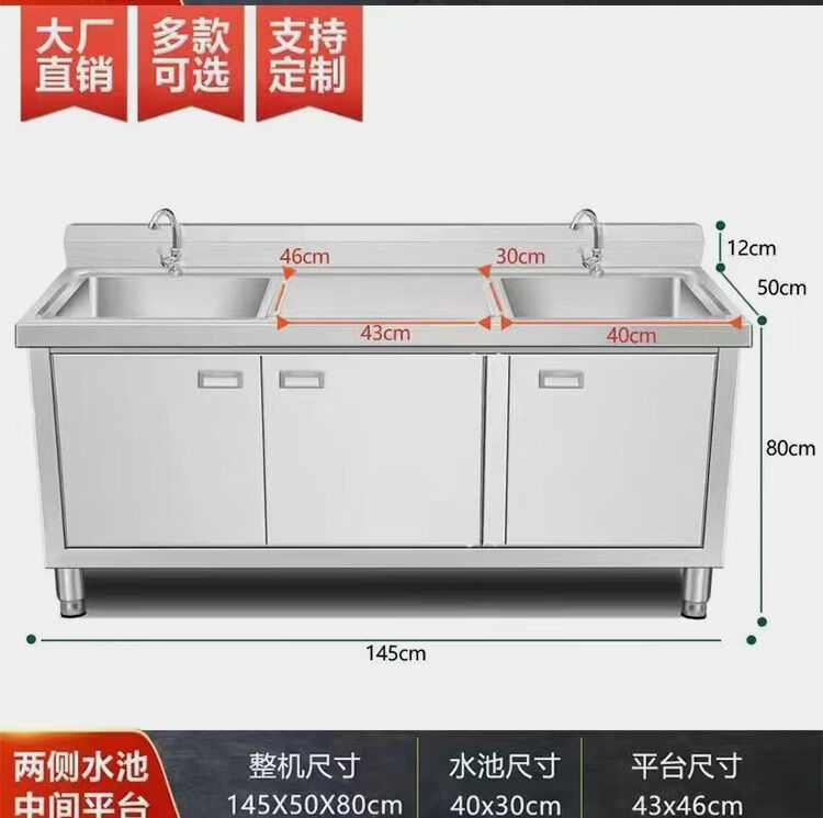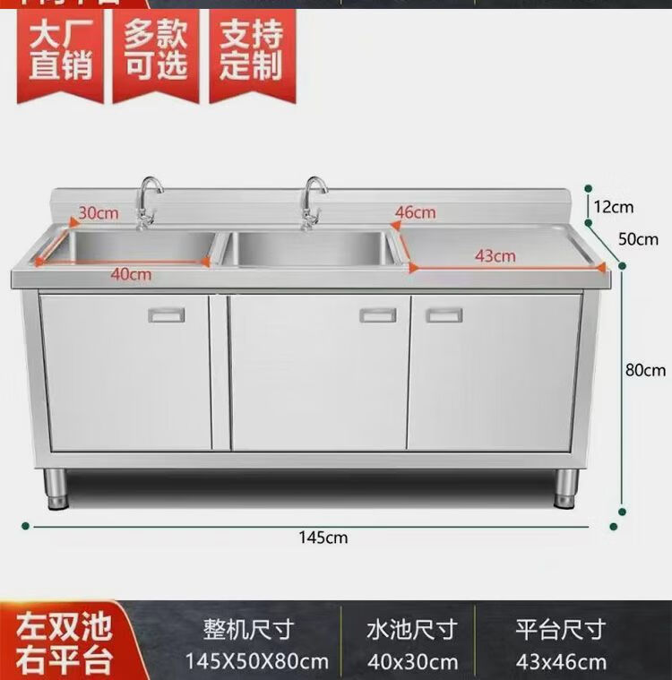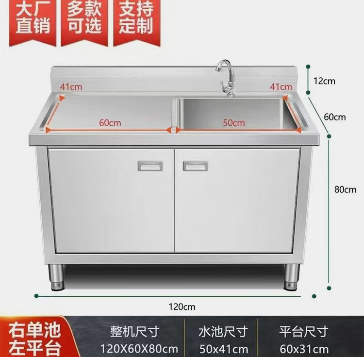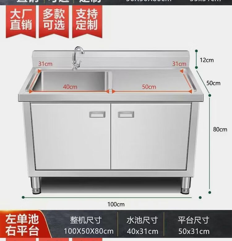 NAOISKEY Naoski sink workbench sink cabinet, vegetable sink integrated cabinet, stainless steel outdoor sink, commercial kitchen wash basin cabinet (80*50*80) CM left platform right sink thickened version