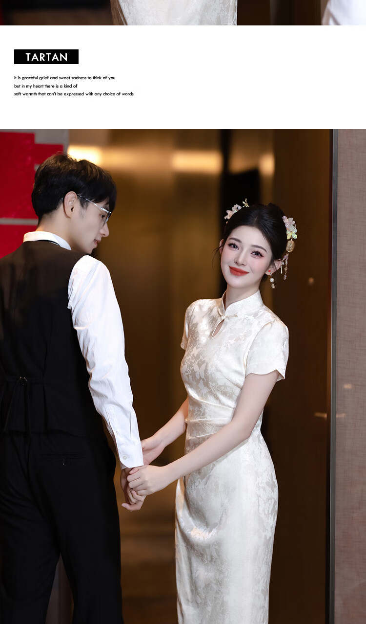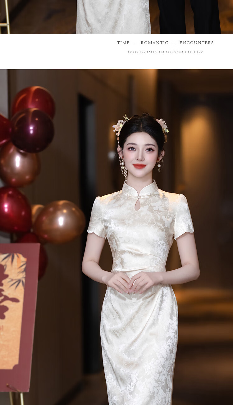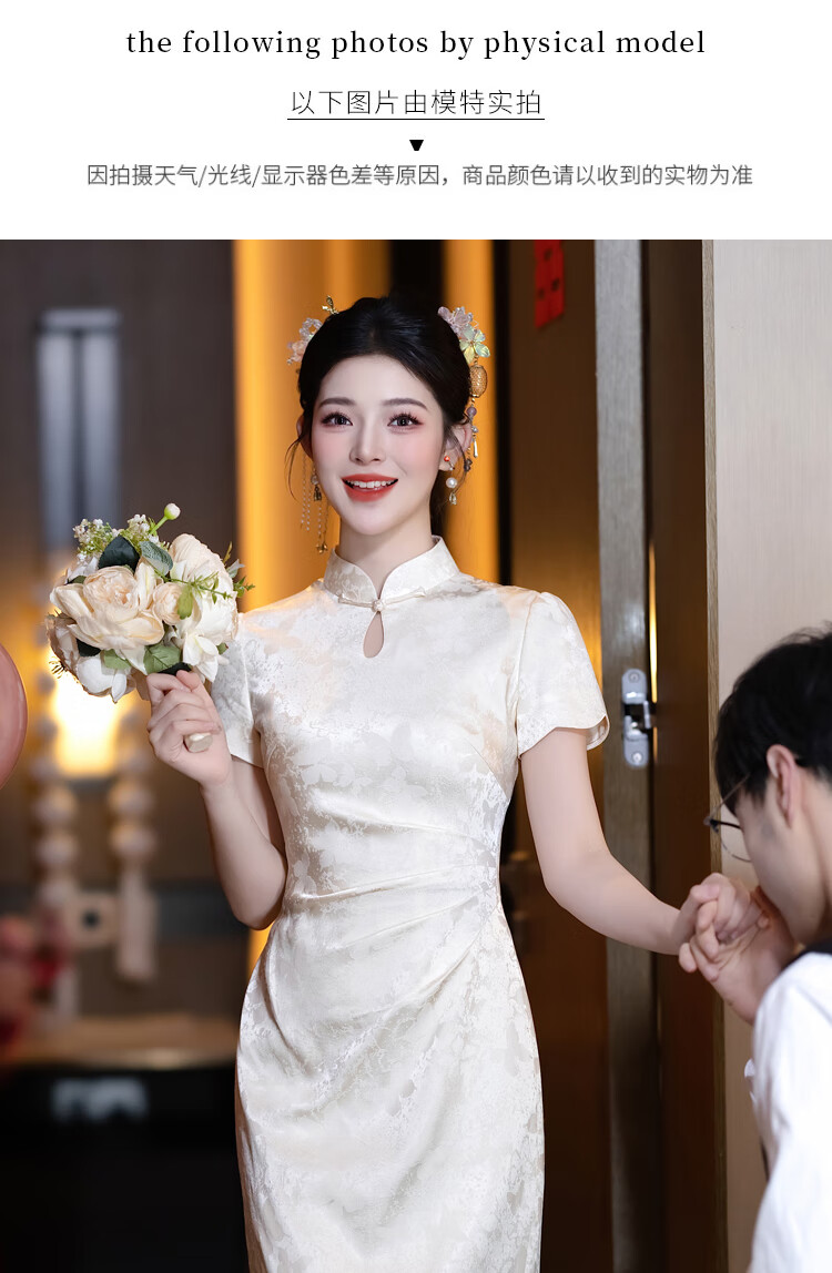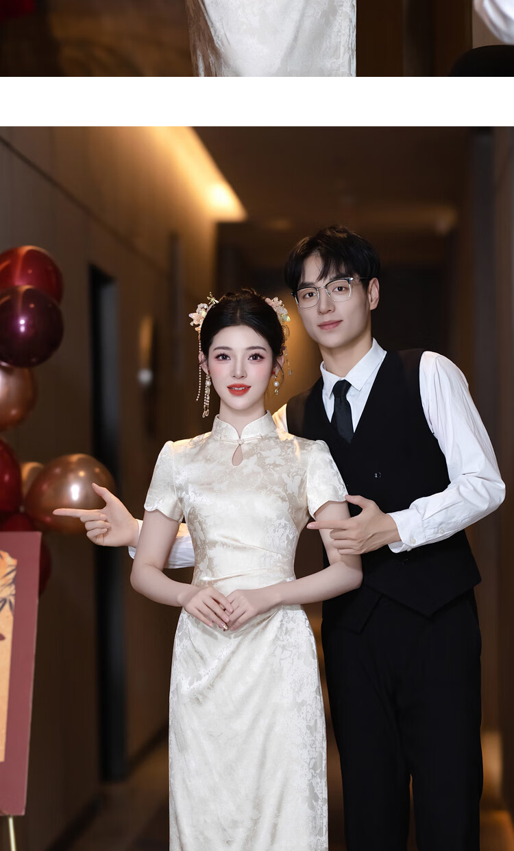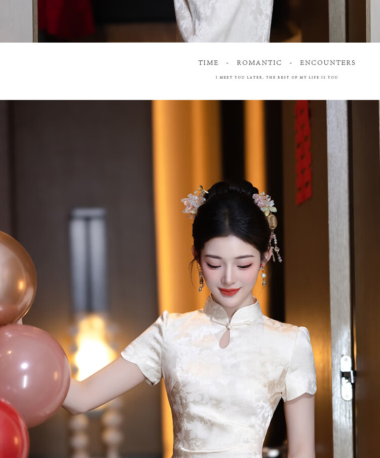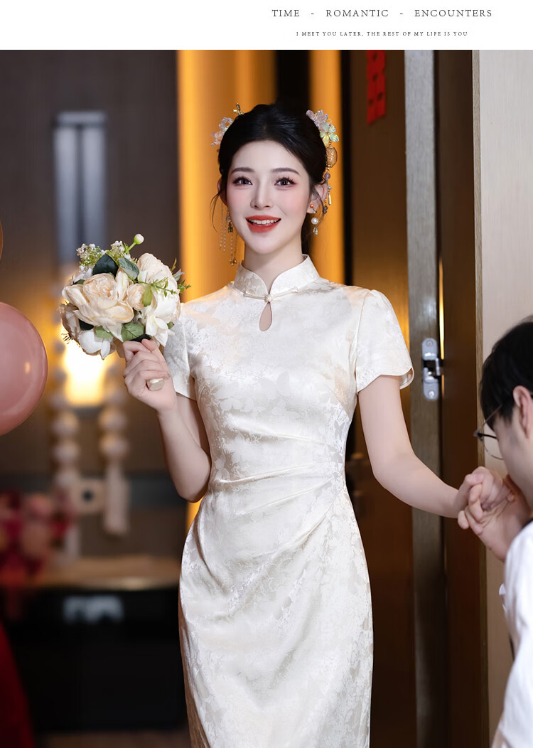She plays the new Chinese style champagne color daily all-inclusive cheongsam toast dress bridal dress certificate registration female engagement dress champagne color M