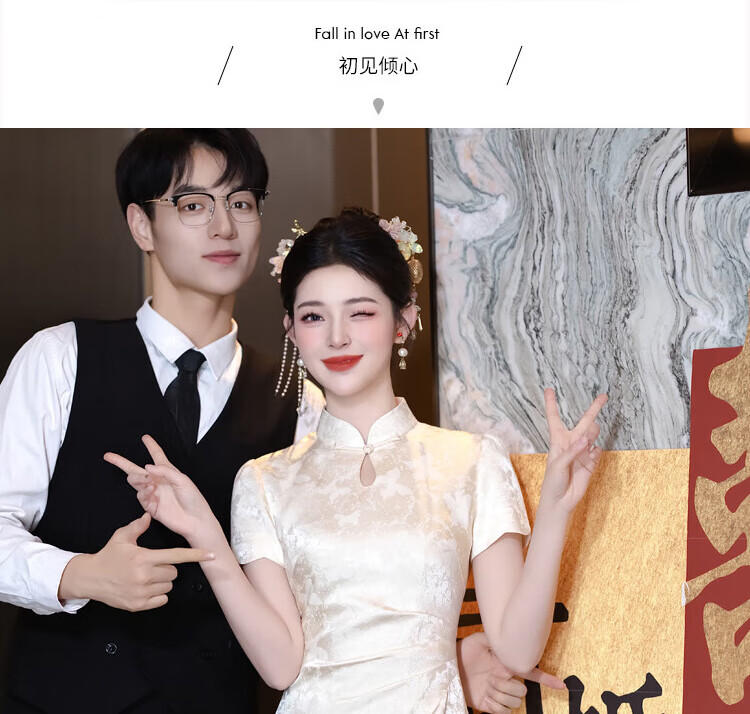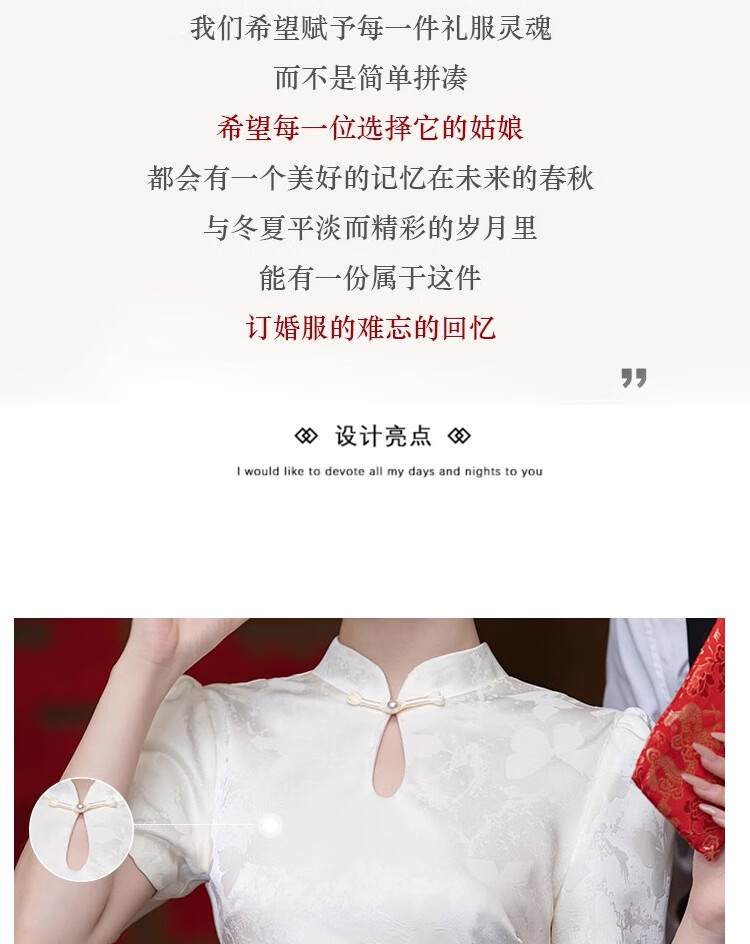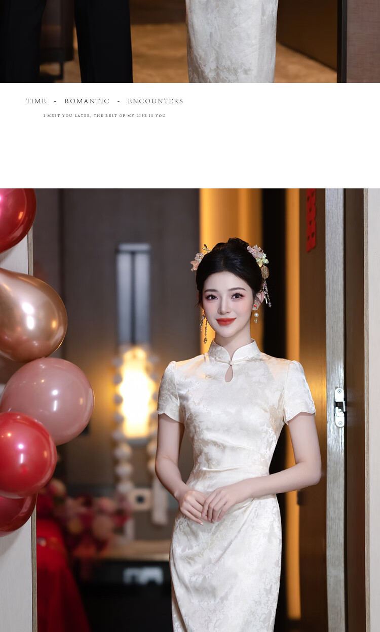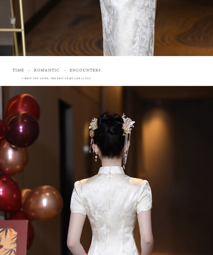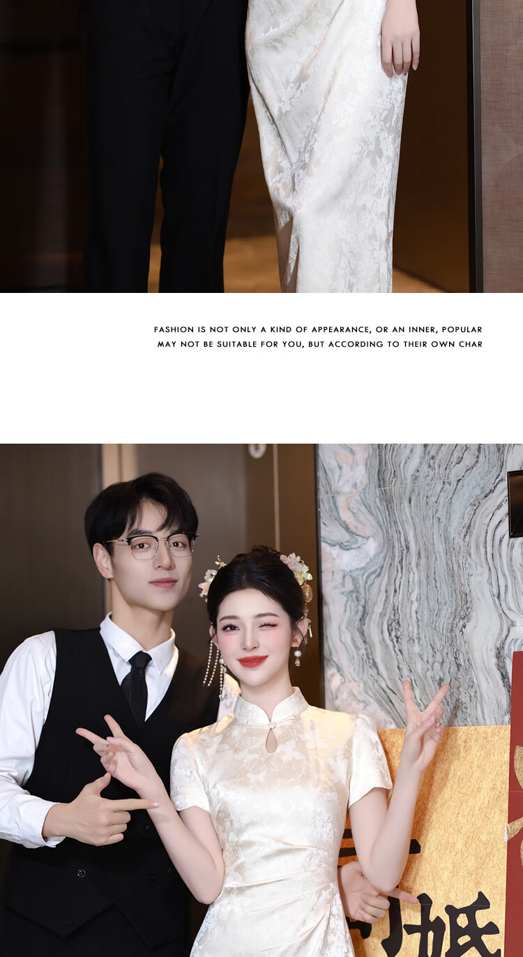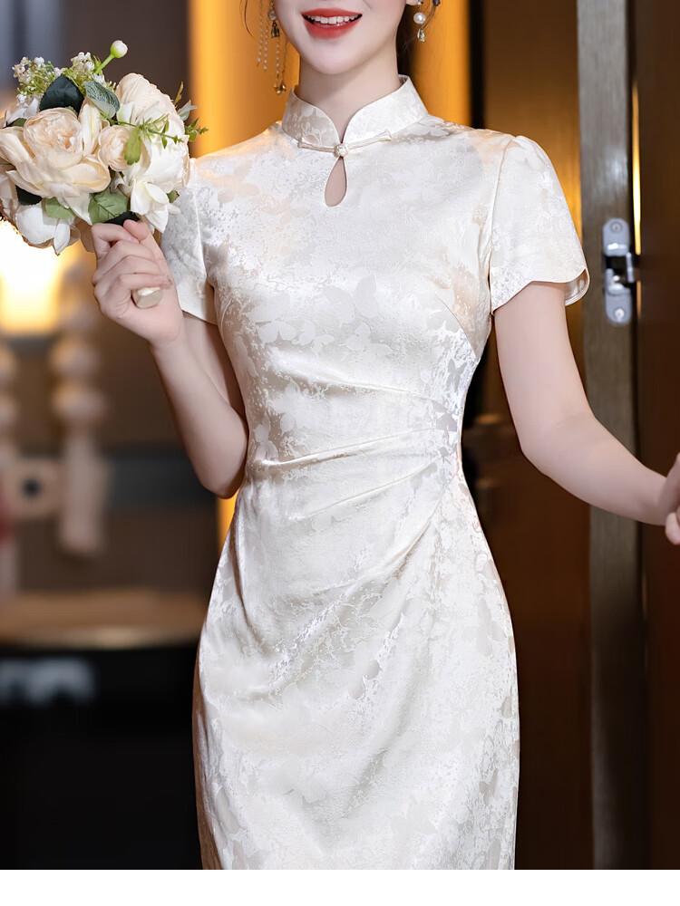 She plays the new Chinese style champagne color daily all-inclusive cheongsam toast dress bridal dress certificate registration female engagement dress champagne color M