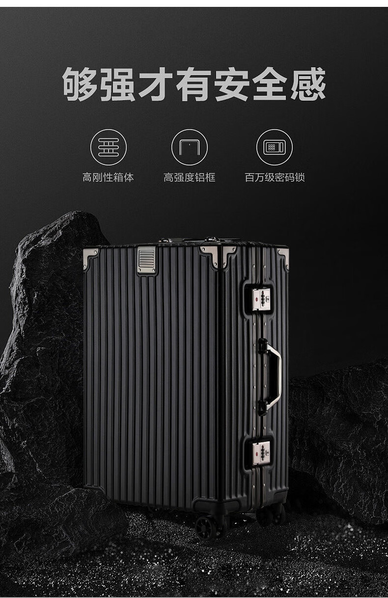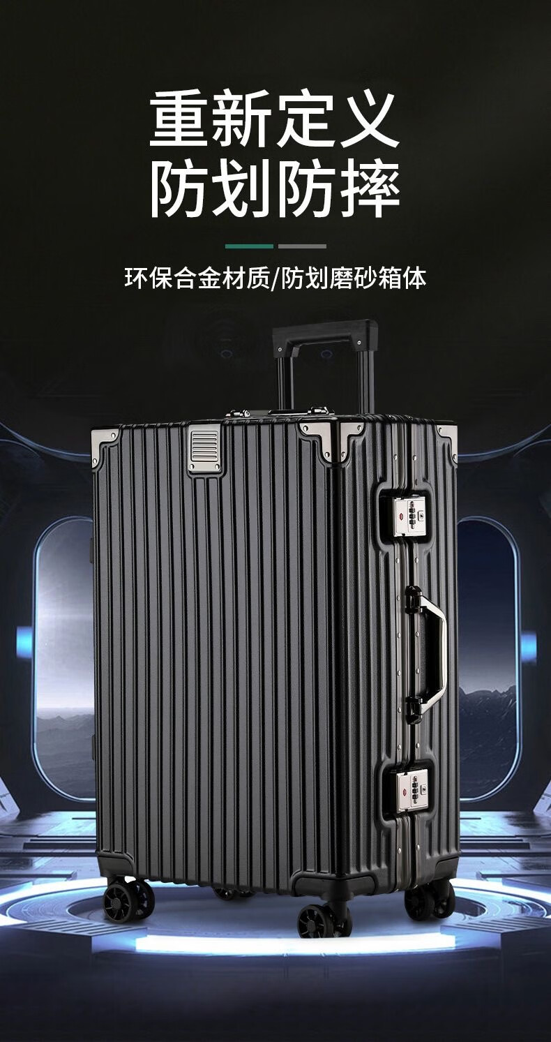 Aluminum frame suitcase password box 20 inches male and female students business trip boarding trolley case Jing Tokyo Hi self-operated black 24 inches